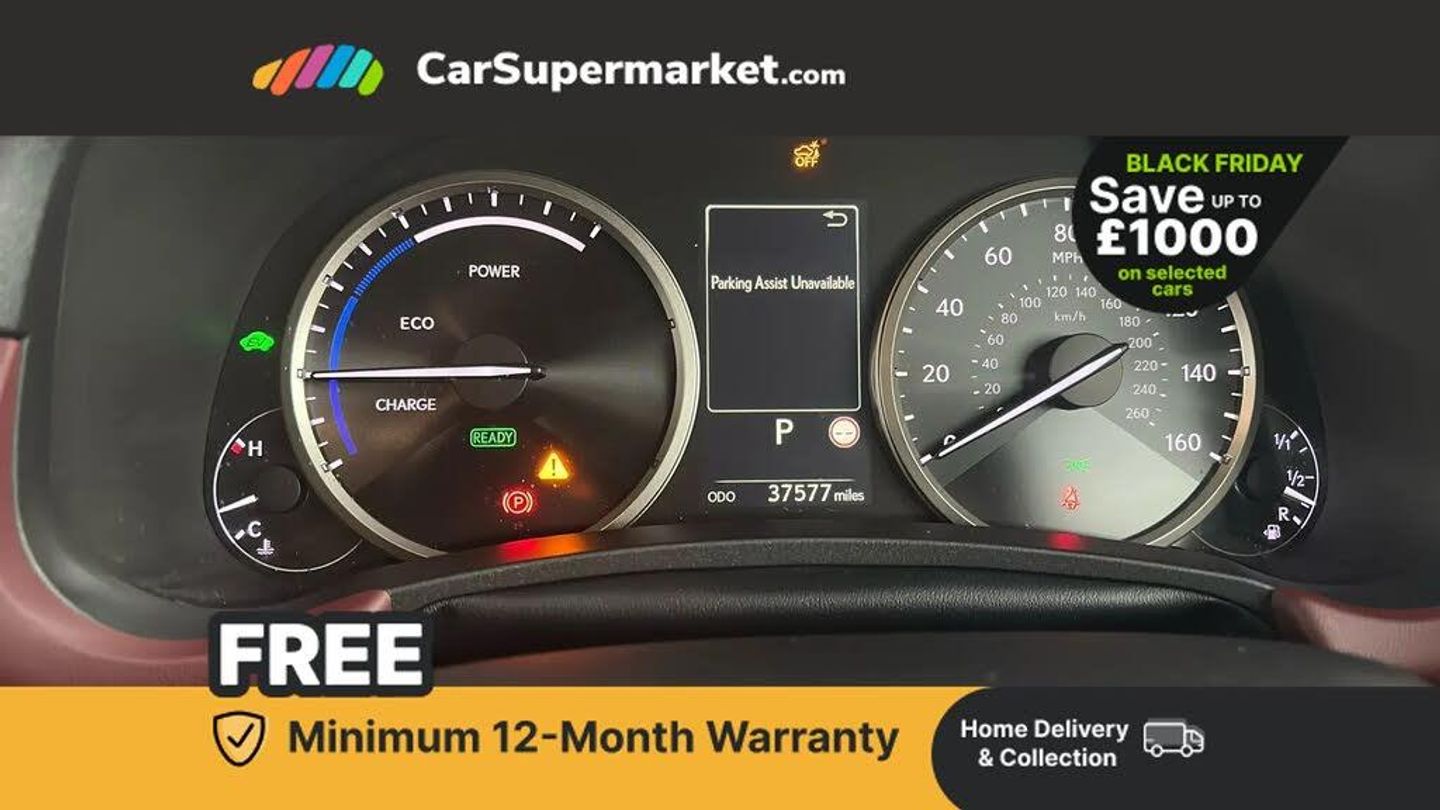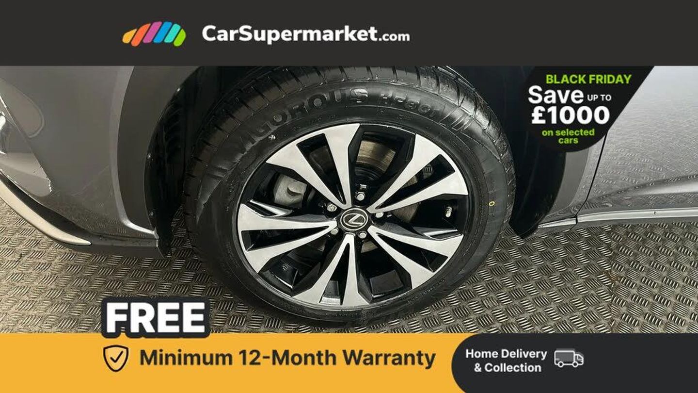 4 driving modes EV/Eco/Normal/Sport,8" display screen with remote touch interface,Analogue clock,Apple car play/Android Auto,Bluetooth telephone connectivity,Electric speed sensitive power steering,Intelligent parking sensors - 4 front and 4 rear,Lane change flasher function,Lexus link connected services with available optional wifi,Lexus navigation system,Push button starter,Reversing camera,All wheel drive system,Vehicle Dynamics Integrated Management (VDIM),Vehicle Stability Control (VSC),2 USB ports,8 Speakers,AUX socket with VTR compatibility,CD player,DAB Digital radio,Auto dimming interior rear view mirror,Bi LED headlight with Auto high beam,Body adhesive, laser screw welding and laser brazed roof structure,Front and rear one touch power windows, with anti-jam protection,Heated and auto folding door mirrors with turn indicators,Hidden exhaust pipe,LED brake lights and rear lights with emergency brake signal,LED daytime running lights,LED front and rear sequential indicators,Rain sensor windscreen wipers,Roof rails,12V accessory port centre console and luggage compartment,2 cupholders in front centre console,2 map pockets in the rear,2 x fixed shopping bag hooks in boot,2 x sun visors with vanity mirror and lamp,6 tie down hooks in boot,60/40 split folding rear seat,8 way driver/passenger electrically adjustable front seats,Adjustable rear seat backrest,Card holder installed in driver and passengers sun visors,Centre armrest with storage box,Dual climate control air conditioning system,Front and rear head restraints,Heated front seats,Leather gear lever,Leather steering wheel with paddle shifts,LED interior illumination,Rear air vents,Rear centre armrest with 2 cupholders,Self charging hybrid,Tahara leather upholstery,Whiplash Injury Lessening (WIL) feature (active headrest) for seats,2 x Isofix child rear seat restraints,3 point ELR front seatbelts with pretensioners,3x3 point rear seat belts,ABS,Adjustable seat belt anchor points,Driver and front passenger 2 stage airbag,Driver/front passenger side airbags,Drivers knee airbag,EBD + Brake Assist,ECB (Electronically Controlled Brake System),Electronic parking brake,Front and rear curtain shield airbags,Front passenger seat cushion airbag,Hill start assist,Hybrid automatic with 6 stage sequential shift and kick down switch,Lexus safety system - dynamic radar cruise control, pre collision system day and night, lane tracing assist, road sign, automatic high beam, OTA,Passenger airbag cut-off device,Traction control,Tyre pressure warning,2 x remote key fobs,Anti-theft system with siren, alarm, intrusion sensor, glass breakage sensor, tilt sensor and engine immobiliser,Locking wheel nuts,Speed sensitive auto door locking,Two motion door lock with double lock,VIN Window etching,Silver inlays,Space saver spare wheel