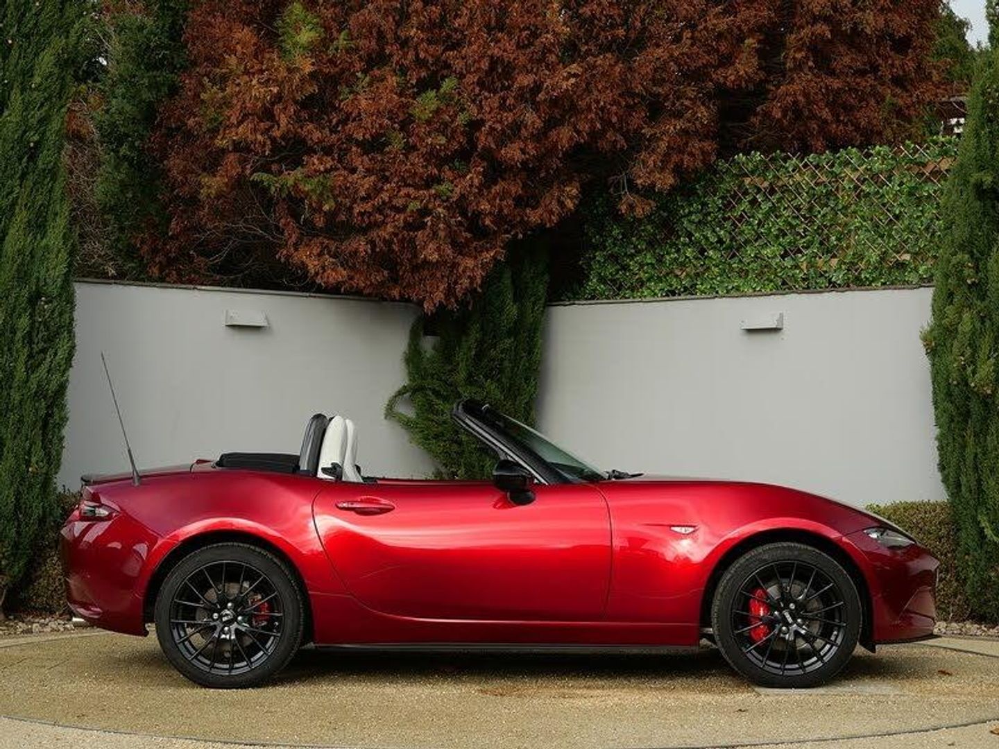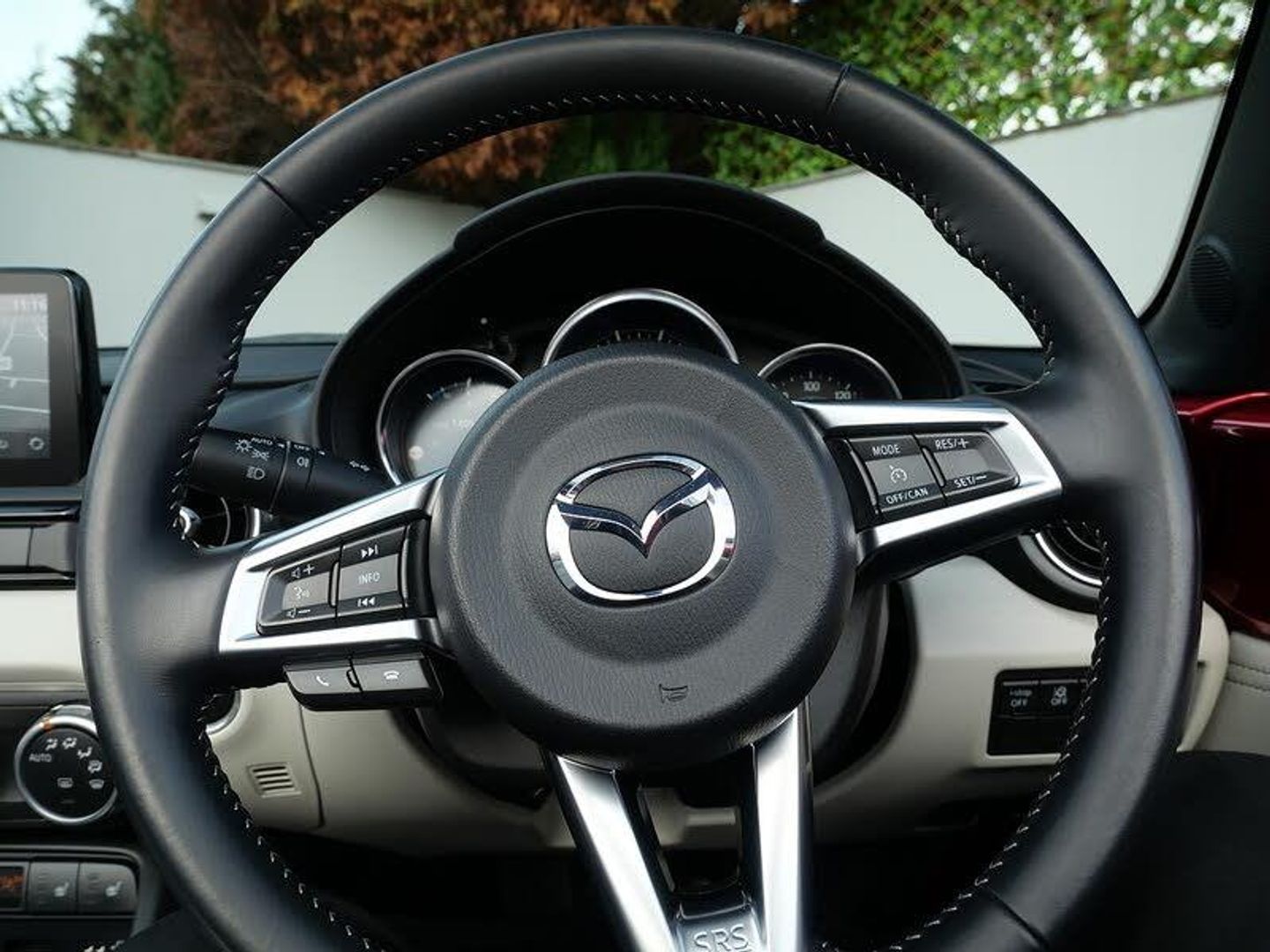 Perforated Nappa Leather - Light Stone with Light Stitching,Soul Red, 7in Colour Touch Screen Display, AM-FM-DAB Radio, Auxiliary - AUX - and Two USB Input, Integrated Bluetooth System, Integrated Mazda Navigation System with 3-Years Free European Map Updates, Premium BOSE Sound System, Wireless Apple CarPlay and Wired Android Auto, Cruise Control with Adjustable Speed Limiter, Driver Attention Alert - DAA, Gear Shift Indicator, Lane Departure Warning System, Multi-Dot Display Tachometer and Electric Odometer, Multimedia Commander, Rear Parking Sensors, Reversing Camera, Service Indicator, Traffic Sign Recognition, Trip Computer, Tyre Pressure Monitoring System, 17in Alloy Wheels - BBS Gun Metallic, Black Cloth Soft-Top, Door Mirrors - Power Operated and Heated, Electric Windows - One Touch Auto Down, Emergency Tyre Repair Kit, Piano Black Door Mirrors, Piano Black Fashion Bars, Red Brembo Brake Calipers, Tailpipes - Twin, Windblocker, Dusk Sensing Automatic Headlights, Headlights - Adaptive LED, Headlights - Coming-Leaving Home, LED Daytime Running Lights, LED Rear Lights, LED Third Brake Light, 3-Stage Seat Heaters, Air Conditioning - Climate Control, Air Vent Surrounds - Chrome, Auto Dimming Rear View Mirror, Coinbox Located on Centre Console, Dashboard Panel - Light Stone Vinyl Leather, Engine Start-Stop Button, Gear Shift - Leather-Wrapped, Interior Courtesy Light, Interior Upper Door Trim - Body Coloured Co-Ordinated, Kinematic Posture Control, Leather-Wrapped Handbrake Lever, Rain-Sensing Front Wipers with Adjustable Sensitivity and Speed, Scuff Plates - Stainless Steel - MX-5 Logo, Seats - Drivers Manual Slide-Recline and Tilt Adjustment, Seats - Front Passenger Manual Slide and Recline Adjustment, Seats - Sports, Side Door Trim - Light Stone Vinyl with Light Stitching, Steering Wheel - Leather, Steering Wheel - Mounted Audio and Bluetooth Controls, Steering Wheel - Tilt and Telescopic Adjustment, Storage - Rear Centre Box with Lockable Lid, Sun Visors - Drivers and Front Passengers with Covered Vanity Mirror and Ticket Holder, Two Cupholders - Detachable, Double Pinion Electric Power Assisted Steering - DP-EPAS, Front Strut Brace, Sports Suspension, ABS - Anti Lock Braking System, Airbags - Front Dual Stage Driver and Single Stage Front Passenger, Automatic Passenger Airbag Deactivation System, DHS - Deployable Hood System, DSC - Dynamic Stability Control, Emergency Stop Signalling System - ESS, Hill Launch Assist - HLA, ISOFIX Child Seat Anchorage - Passenger Seat, LED Indicator Lights, LSD - Limited Slip Differential, Pre-Crash Safety - Smart City Brake Support - SCBS, Remote Central Locking with Deadlocking and Remote Boot Release, Side Airbags, Smart Keyless Entry, TCS - Traction Control System, Thatcham Accredited Alarm and Immobiliser