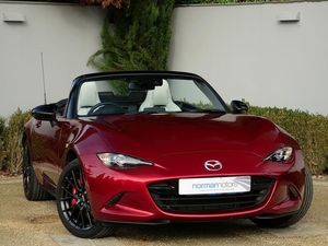 Norman Motors are excited to showcase this sporty Mazda MX-5 SKYACTIV-G Homura Convertible which is equipped with Apple CarPlay & Reversing Camera. Two owners from new with Full Mazda Service History (last serviced 12/05/2025 @ 16,423 miles). Presented here in Soul Red Metallic with Light Stone Perforated Nappa Leather Upholstery. Upgrades and features include: 17" BBS Gun Metallic Alloy Wheels, Wireless Apple CarPlay and Wired Android Auto, Reversing Camera, Heated Front Seats, Rear Parking Sensors, Leather Multifunction Steering Wheel, LED Daytime Running Lights, Cruise Control with Adjustable Speed Limiter, Lane Departure Warning System, Premium BOSE Sound System, Integrated Mazda Navigation System, 7" Colour Touch Screen Display, Hill Launch Assist, Auto Dimming Rear View Mirror, Integrated Bluetooth System.If you have any questions regarding history, condition, or specification of this vehicle, please get in touch with a member of the sales team