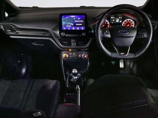 Ford Navigation System with Ford SYNC 3 - Apple CarPlay and Android Auto and FordPass Connect - Embedded Modem, USB Connection x2, 17in Alloy Wheels - ST 5 Spoke - Matt Black - Machined Finish, Body Colour Bumpers, Door Handles - Body Colour, Door Mirrors - Electrically-Operated and Heated - Power-Foldable with Integrated Side Indicators - Body Colour Housings and Puddle Lights, Electric Windows - Front, Exhaust - Dual Chrome Finish, Large Body Coloured Rear Spoiler, Quickclear Heated Windscreen, Rear Privacy Glass, ST Badge - Front and Rear, ST Side Skirt Body Mouldings - Body Colour, Tyre Repair Kit, Ultra Low Rolling Resistance Tyres, Unique ST Front Grille, Unique ST Scuff Plates, Air Conditioning - Manual, Automatic Rain Sensing Wipers and Auto-Dimming Rear View Mirror, Black Interior Headlining, Centre Console with Armrest and Illuminated Cupholders, Courtesy Light - Front Map Light and Rear - Overhead LED, Door Lever - Chrome Finish, Driver Seat with Manual Height Adjust, Floor Mats - Front and Rear with Blue Stitching, Glovebox - Illuminated, Keyless Start with Ford Power Start Button, Leather Handbrake Lever with Blue Stitching, MyKey, Overhead Console - Sunglasses Holder, Rear Fog Lamps, Rear Seat - 60-40 Split Back and Cushion, ST Flat Bottom Leather Steering Wheel with Blue Stitching, Seat Belts with Blue Detailing, Sports Pedals, Steering Column - Rake and Reach Adjustment, Unique ST Gear Knob with Blue Stitched Gaiter Bag, Warning Triangle Storage, Agate Black, EPAS - Electric Power Assisted Steering, LED Projector Headlights with Daytime Running Lights, Rear Lights - LED Night Signature, ST-Line Front Fog Lamps with Cornering Lights, Sports Tuned Suspension, Airbags - Driver and Front Passenger, Airbags - Front Side Impact, Airbags - Front and Rear Side Curtain, Anti-Lock Braking System - ABS with Electronic Brake Force Distribution - EBD, Cruise Control, Dual Tone Horn, Electronic Stability Programme - ESP with Hill Start Assist, Emergency Brake Warning - Automatic Hazard Warning Lights, Ford Easy-Fuel Capless Refuelling System, IPS - Intelligent Protection System, NCAP Pack, Parking Distance Sensors - Rear, Remote Central-Double Locking, Seats - ISOFIX Mounting Provision for Child Seats, Selectable Drive Modes, Tailgate Wash-Wipe, Thatcham Category 1 Alarm, Trip Computer, Tyre Pressure Monitoring System - TPMS