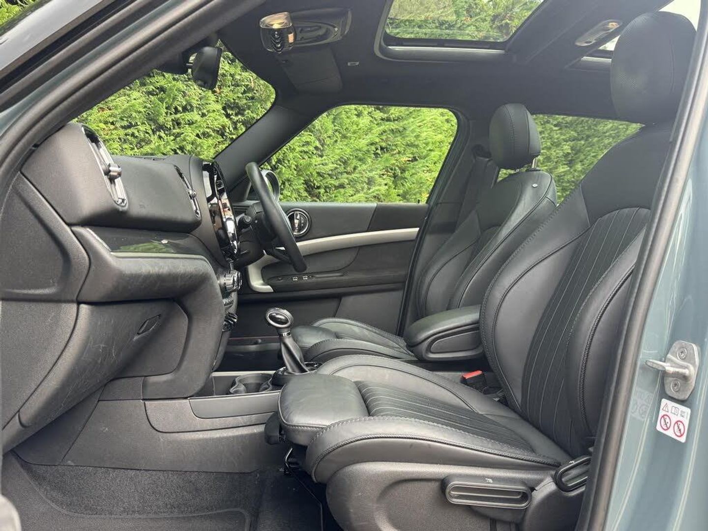 Green interior.Finished in a stunning Sage Green metallic, this impressive SUV is guaranteed to stand out from the crowd. With just 30,230 miles and a full dealership service history, its been exceptionally well cared for and is ready for its next adventure. At Position One Motor Company, all our vehicles undergo a comprehensive 93-point health check for your complete peace of mind. We also welcome part exchanges, provide flexible finance options, and offer nationwide delivery, ensuring a smooth and hassle-free buying experience from start to finish. This MINI Countryman Exclusive benefits from over £5,000 worth of optional extras, enhancing both its comfort and driving experience. Features include 19-inch Turnstile Spoke two-tone alloy wheels, black bonnet stripes, and a Piano Black Exterior Pack that together create a sporty, premium appearance. The interior continues the luxury theme with MINI Yours Lounge Leather in Carbon Black, heated front seats, and a panoramic glass sunroof that fills the cabin with natural light. Technology and convenience are at the forefront, with Apple CarPlay compatibility, the Navigation Pack, Comfort Pack, Comfort Access System, and a MINI Head-Up Display. Other highlights include Cruise Control with Brake Function, MINI Driving Modes, eDrive Button, Rear Parking Distance Control, Tyre Pressure Monitoring System, and both Home and Public Charging Cables. Powered by a 1.5-litre petrol plug-in hybrid engine producing 219 bhp, this MINI accelerates from 060 mph in just 6.8 seconds while achieving up to an impressive 156.9 mpg (combined). Its also fully ULEZ compliant, making it perfect for city driving as well as longer journeys. The MINI Countryman Cooper SE Exclusive delivers the ideal mix of practicality, performance, and premium comfort with its Sage Green finish and refined details ensuring it looks as good as it drives. We take your part exchanges, provide flexible finance options and offer nationwide delivery. Call us now to get booked in for your viewing and test drive.