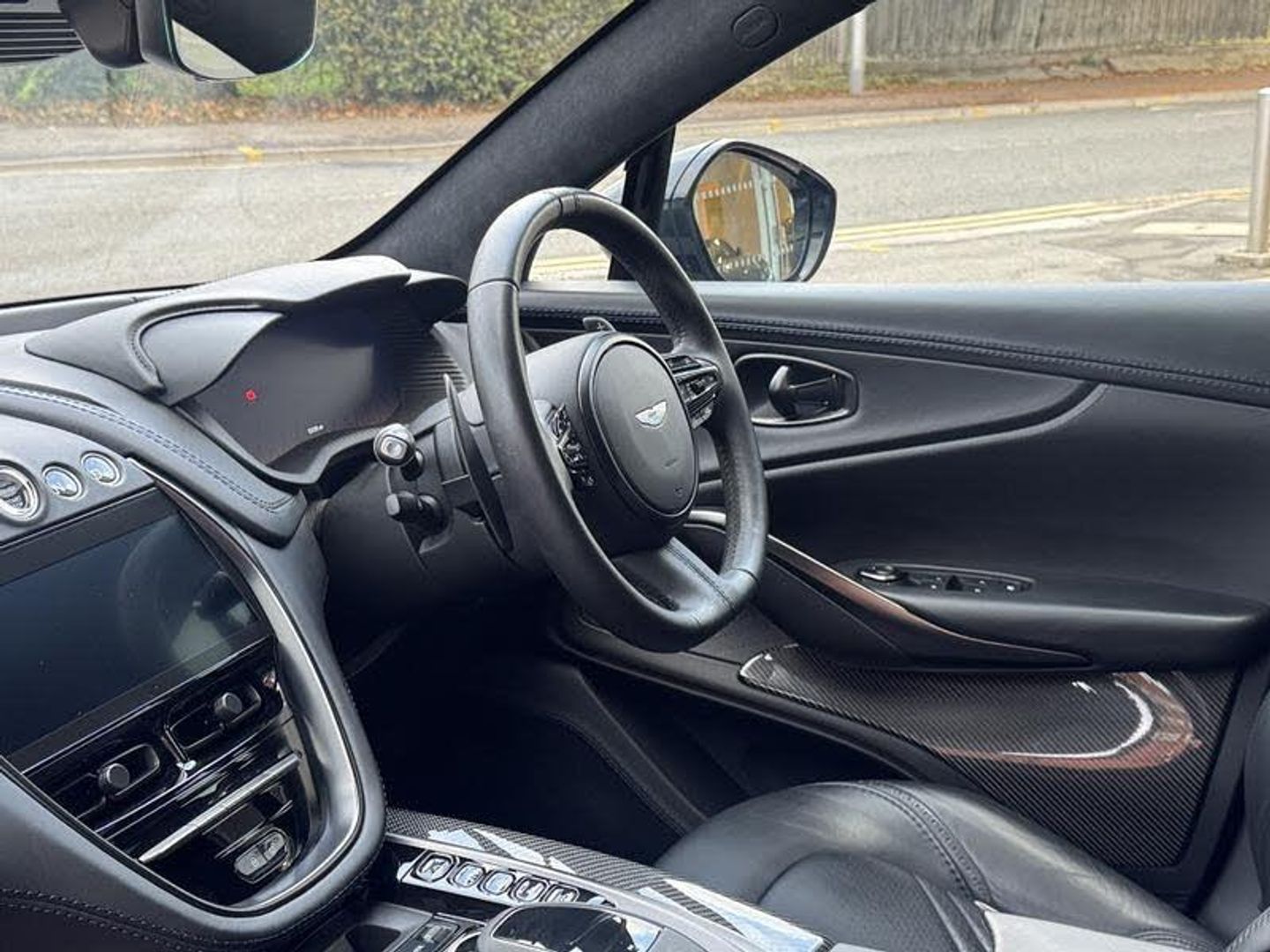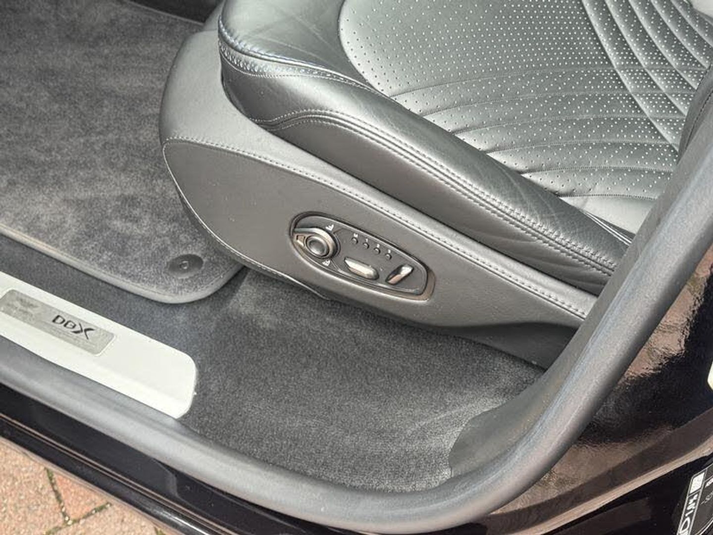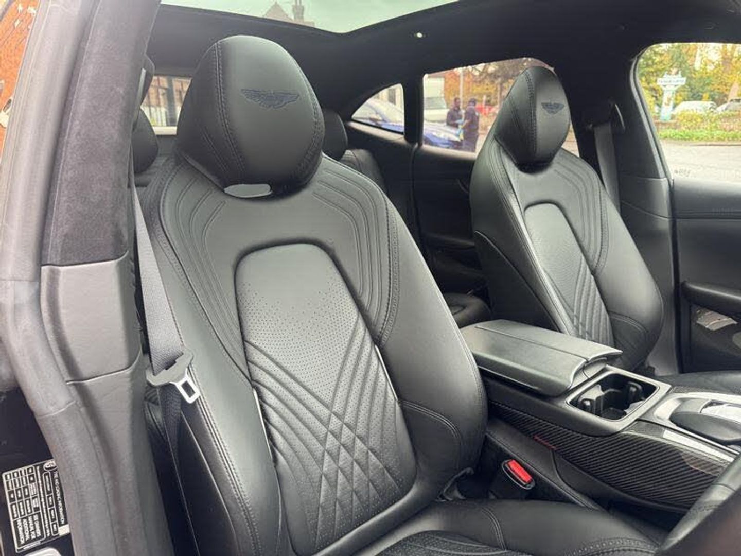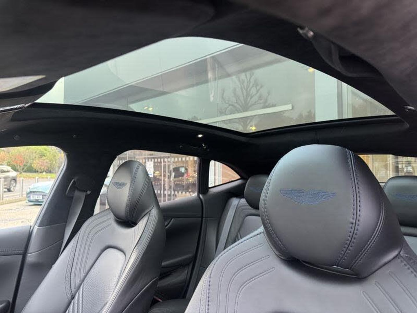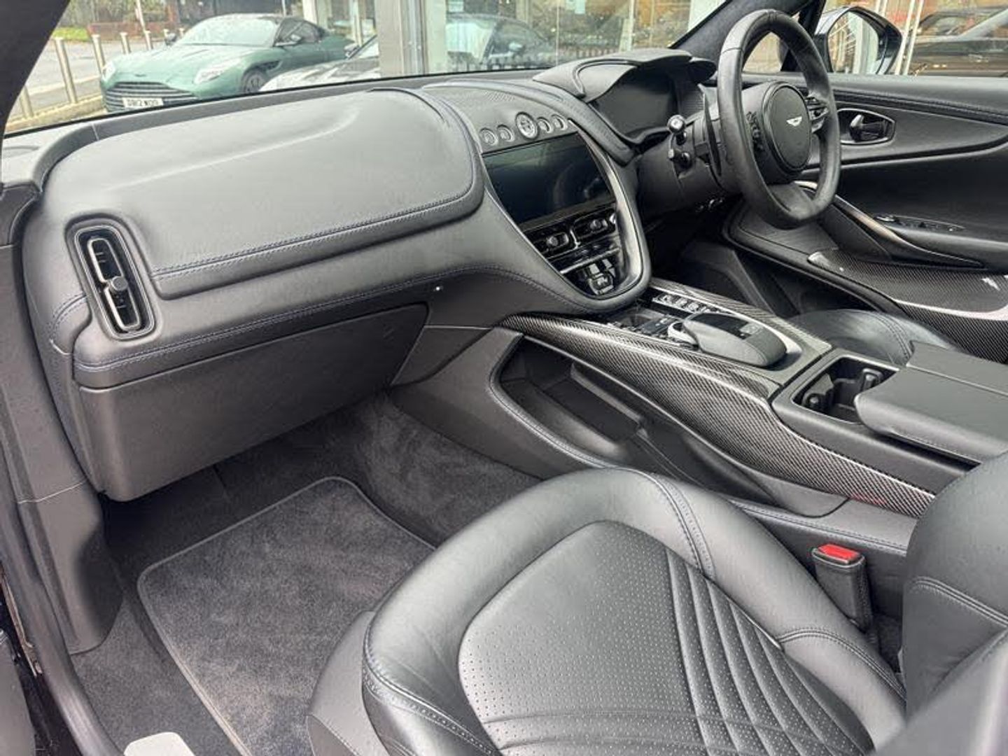 Onyx Black Exterior Paintwork, Obsidian Black Leather Interior, Aurora Blue Stitching, Sports Exhaust Upgrade, Aston Martin Premium Audio, Blind Spot Assistance, Vivid Blue Brake Calipers, Indulgence Pack, Convenience Pack, DB Elegance Pack, Metal/Composite Trim Inlay, Lower Black Pack, Upper Black Pack, Twill Carbon Veneer, Dark Chrome Jewellery Pack, Perimeter Camera System, Comfort Seats, Aston Martin Wings Headrest Embroidery, Ventilated Seats (Front And Rear), Heated Seats (Front and Rear), Black Seatbelts, Sports Steering Wheel, 22 Inch Ribbon Satin Black Diamond Turned Wheels