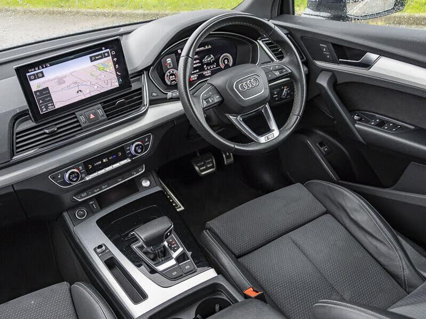 MMI navigation plus with 10.1" touch screen, Audi virtual cockpit plus with 12.3" screen and three different layout designs, Audi matrix LED headlights with dynamic front and rear indicators, Heated front seats, Android Auto, Apple CarPlay, Audi wireless smartphone interface, Power tailgate, Reversing camera, S line sports suspension, Quattro on demand, DAB Digital radio, Automatic headlights and windscreen wipers, Rear privacy glass and rear side windows, LED Headlights, High gloss pack - Q5, LED interior light pack - Q5