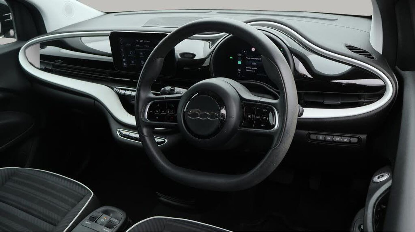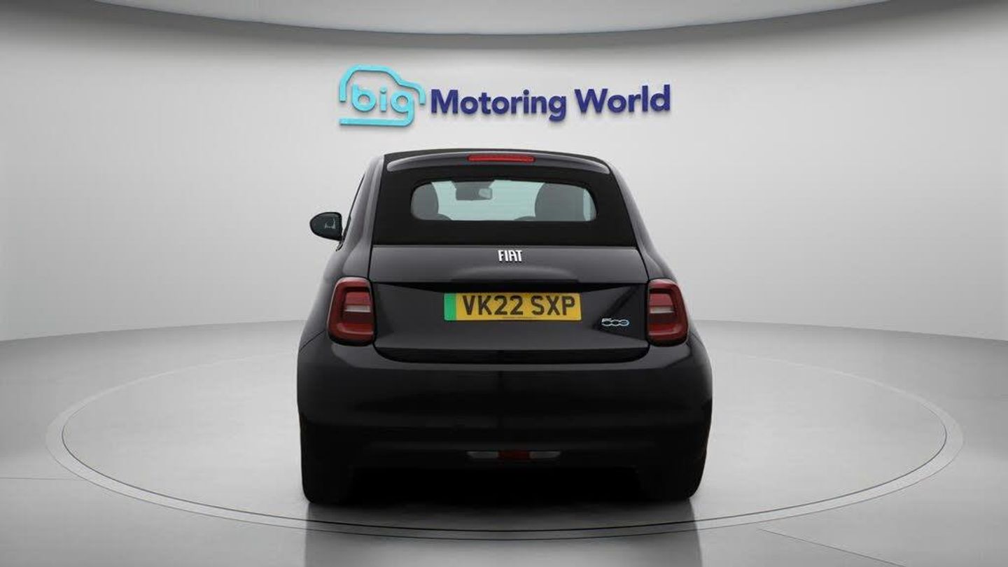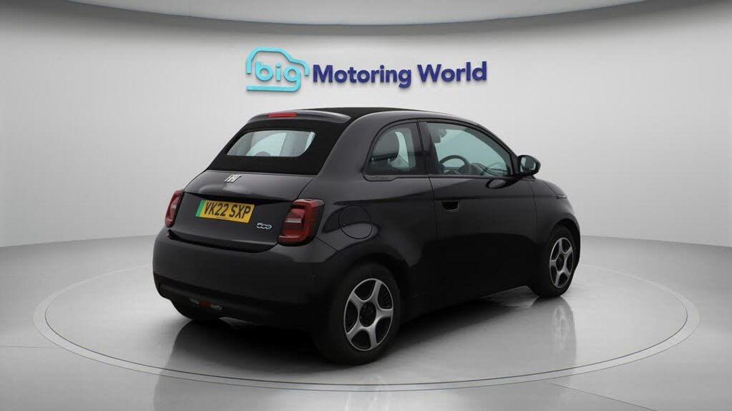 FREE £750 towards your finance-Our Fiat 500e C comes with optional extras worth £450. Specification includes a range of fantastic features including FREE £750 towards your finance Deposit, Rear View Camera, Internet, Bluetooth, Parking Sensors, Electric Roof, Cruise Control, Climate Control, Touch Screen Control, LED daytime running lights Specification information is supplied by CAPHPI and may vary to the actual car. This data does not form any part of a buying contact. Please check specification prior to purchase in-store. The MOT is valid until November 2026, visit bigmotoringworld.co.uk for more photos, a 360 tour, service history and a free HPI report.Were BIG on peace of mind and this Black Fiat 500e C has completed our comprehensive 200 point inspection and passed all checks. Its ready for you to drive away with immediate collection in-store. We include a 90-day warranty as standard plus an option to extend for up to 3 years.Reserve this car exclusively for you, safely and securely at bigmotoringworld.co.uk, with a fully refundable £99 deposit. Test drive before you buy, with no commitment, no hassle and a completely haggle free experience. Still searching and want to see thousands more cars? We are BIG on choice with over 8000 cars to choose from.Visit our award winning web site bigmotoringworld.co.uk.Were Big Motoring World and were BIG on what matters to you.