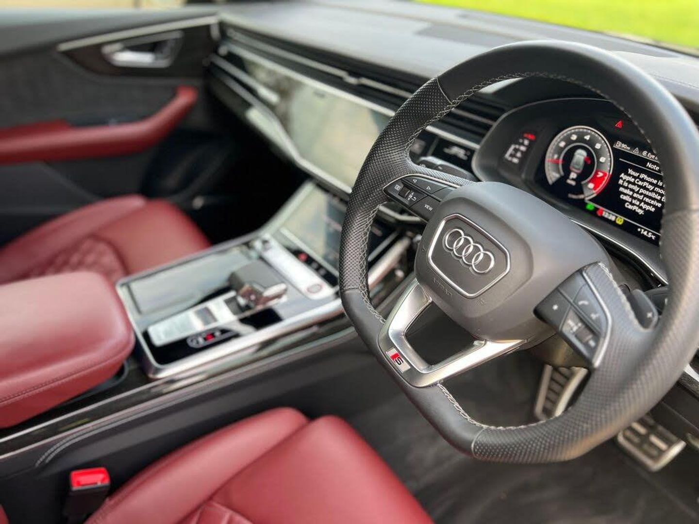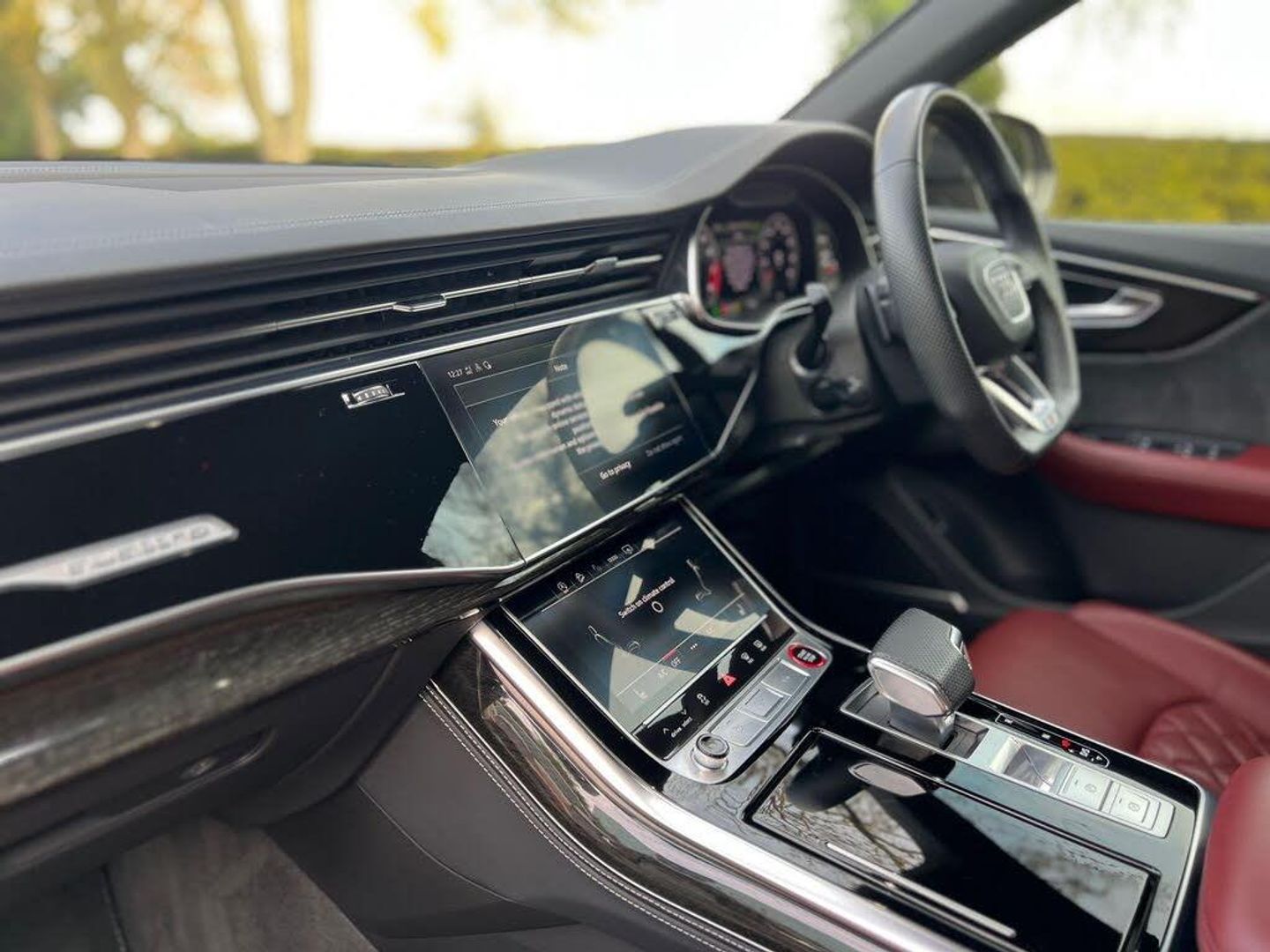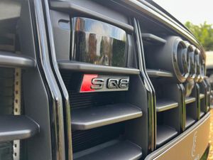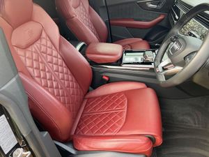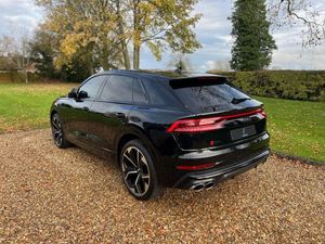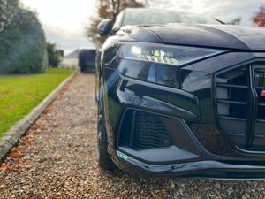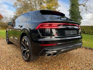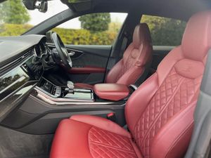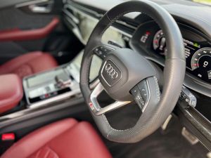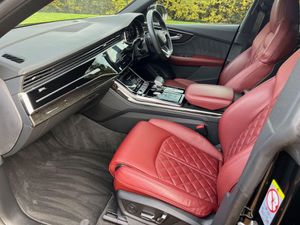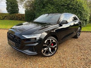 22in Alloy Wheels - 5-Twin-Spoke Design, 4-Way Lumbar Support for Front Seats, AMI - Audi Music Interface, Adaptive Air Suspension, All-Wheel Steering, Aluminium Window Trims, Anti-Theft Alarm with Tow-Away Protection, Anti-Theft Wheel Bolts and Wheel Loosening Warning, Audi Beam, Audi Connect Safety and Service - e-call, Audi Connect with Amazon Alexa Integration, Audi Drive Select with 7 Modes, Audi Pre-Sense Front, Audi Smartphone Interface, Audi Sound System, Audi Virtual Cockpit - 12.3in High Resolution LCD Display, Auto Dimming and Frameless Rear View Mirror, Black Cloth Headlining, Bluetooth Interface, Comfort Front Centre Armrest, Coming-Leaving Home Animations in Front and Rear, Cruise Control with Speed Limiter, DAB Digital Radio, Deluxe 4-Zone Automatic Climate Control, Door Mirrors - Electrically Adjustable - Heated - Folding - Automatically Dimming with Memory Function and Integrated LED Indicators with Kerb View Function for Passenger Side, Driver - Front Passenger - Front Side and Curtain Airbag System, ESC - Electronic Stabilisation Control inc ABS - ASR and EDL, Electric Windows - Front, Electrically Adjustable Front Seats with Driver Memory Function, Electromechanical Parking Brake, Electromechanical Power Steering, First Aid Kit and Warning Triangle, Front Sun Visors with Illuminated Vanity Mirrors, Front and Rear Floor Mats, Gloss Black Finish for the Exterior Audi Rings and Q8 Logos without Engine Badging, HD Matrix LED Headlights and Dynamic Front and Rear Indicators, Headlight Washers, Heated Front Seats, Hill Descent Control, Hill Hold Assist, ISOFIX Child Seat Mounting for Front Passenger, Illuminated Door Sill Trims with S Line Logo, Keyless Go with Remote Central Locking, Lane Departure Warning, Light and Rain Sensor, Luggage Compartment Sill Protection in Stainless Steel, MMI Navigation Plus including MMI Touch, Natural Voice Recognition, Operating Buttons in Black - Glass Look, Parking System Plus - Front and Rear Sensors, Parking System Plus with 360 Degree Display - Front - Rear and Side Sensors, Pedals in Stainless Steel, Platinum Grey Front Spoiler Lip and Diffuser Insert with Honeycomb Grid in Black, Power Operated Tailgate, Privacy Glass - Dark-Tinted Rear and Rear-Side Windows - From B-Pillar Backwards, Quattro with Self-Locking Centre Differential, Rear Bench Seat Plus, Rear-View Camera, S Specific Dual-Branch Chrome Tailpipes on Both the Left and Right, S Specific Radiator Grille Frame in Selenite Silver - Matt, S Specific Side Skirts in Selenite Silver - Matt, Seat Belt Monitoring, Side Air Inlet Grilles in Titanium Black - Matt, Signature LED Daytime-Running Lights, Standard Pedestrian Protection Measures, Steering Wheel - 3-Spoke Leather-Multi-function-Flat Bottomed-Sports-Shift Paddles, Titanium Black Door Mirrors, Tool Kit, Trim and Underbody Protection in Matt Selenite Silver, Tyre Pressure Loss Indicator, Tyre Repair Kit, Upper and Lower Interior Elements in Leather, Windshield with Heat Insulated Glass, Comfort and Sound Package, Mythos Black Metallic, Steering Wheel - 3-Spoke Leather-Multi-Function-Heated-Sports-Shift Paddles, 22in Alloy Wheels - 5-V-Spoke Star Design - Gloss Anthracite Black
