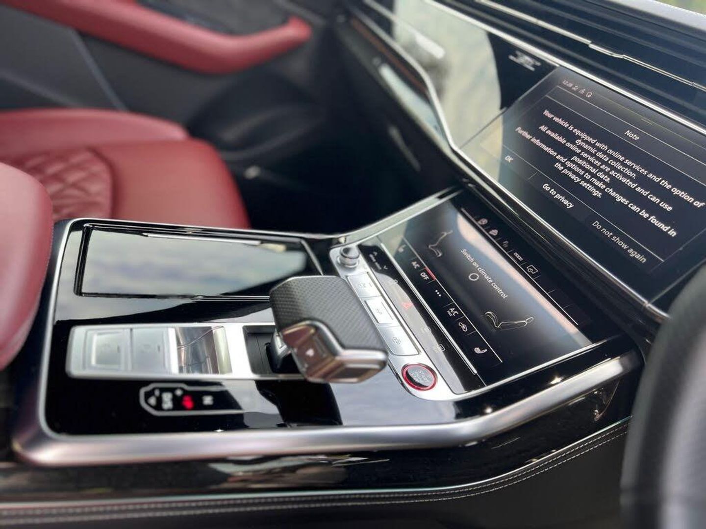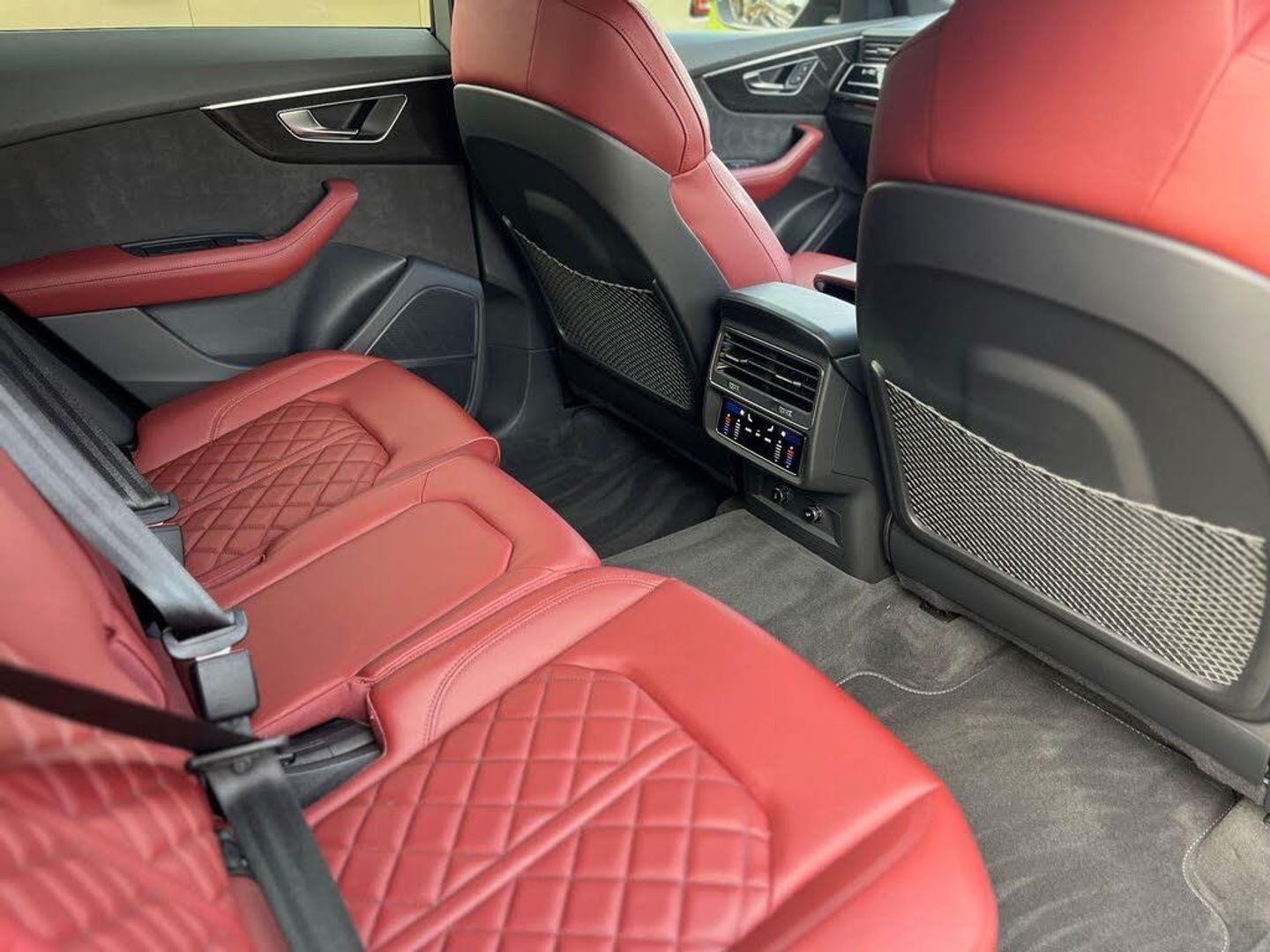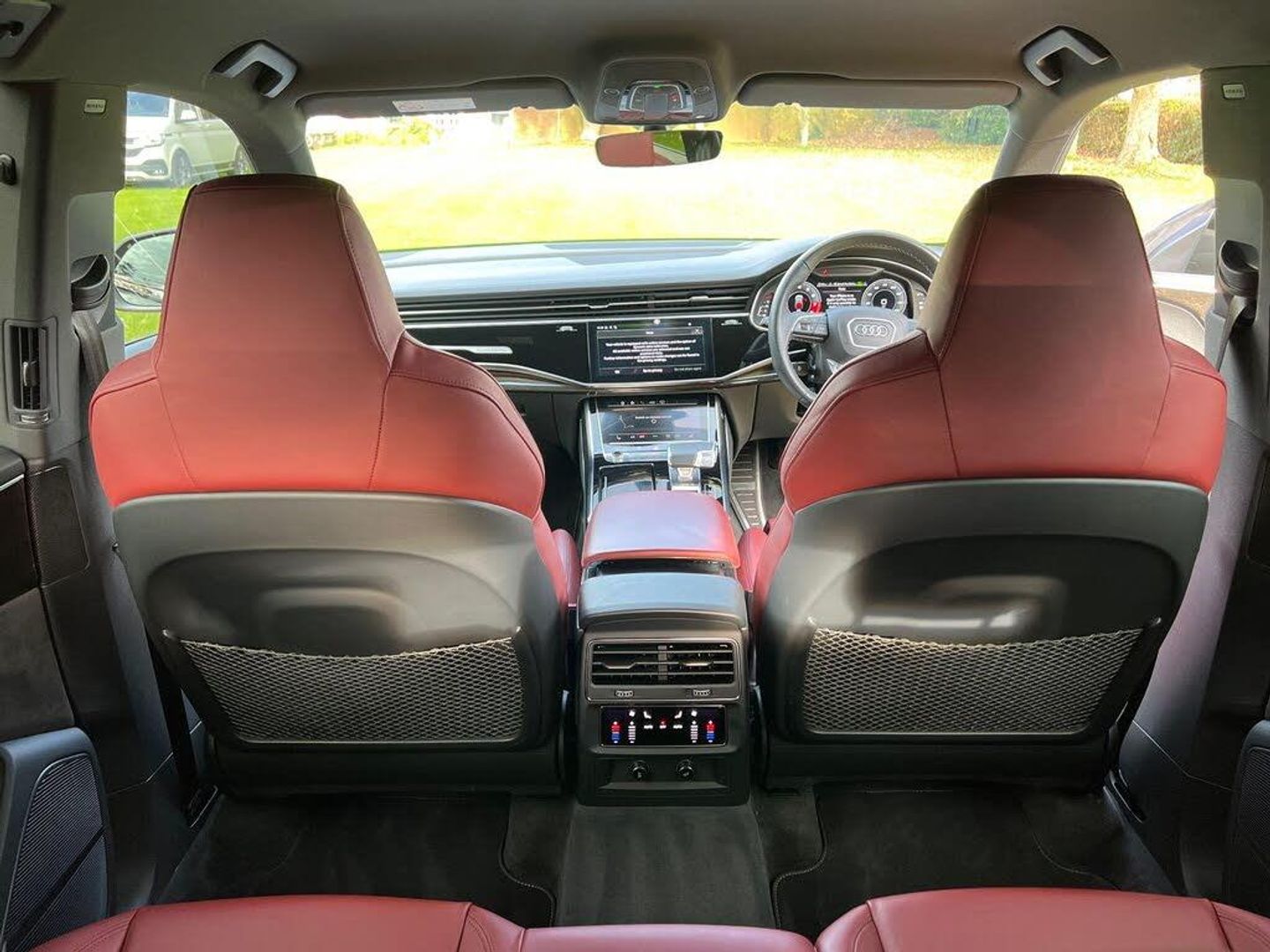 22in Alloy Wheels - 5-Twin-Spoke Design, 4-Way Lumbar Support for Front Seats, AMI - Audi Music Interface, Adaptive Air Suspension, All-Wheel Steering, Aluminium Window Trims, Anti-Theft Alarm with Tow-Away Protection, Anti-Theft Wheel Bolts and Wheel Loosening Warning, Audi Beam, Audi Connect Safety and Service - e-call, Audi Connect with Amazon Alexa Integration, Audi Drive Select with 7 Modes, Audi Pre-Sense Front, Audi Smartphone Interface, Audi Sound System, Audi Virtual Cockpit - 12.3in High Resolution LCD Display, Auto Dimming and Frameless Rear View Mirror, Black Cloth Headlining, Bluetooth Interface, Comfort Front Centre Armrest, Coming-Leaving Home Animations in Front and Rear, Cruise Control with Speed Limiter, DAB Digital Radio, Deluxe 4-Zone Automatic Climate Control, Door Mirrors - Electrically Adjustable - Heated - Folding - Automatically Dimming with Memory Function and Integrated LED Indicators with Kerb View Function for Passenger Side, Driver - Front Passenger - Front Side and Curtain Airbag System, ESC - Electronic Stabilisation Control inc ABS - ASR and EDL, Electric Windows - Front, Electrically Adjustable Front Seats with Driver Memory Function, Electromechanical Parking Brake, Electromechanical Power Steering, First Aid Kit and Warning Triangle, Front Sun Visors with Illuminated Vanity Mirrors, Front and Rear Floor Mats, Gloss Black Finish for the Exterior Audi Rings and Q8 Logos without Engine Badging, HD Matrix LED Headlights and Dynamic Front and Rear Indicators, Headlight Washers, Heated Front Seats, Hill Descent Control, Hill Hold Assist, ISOFIX Child Seat Mounting for Front Passenger, Illuminated Door Sill Trims with S Line Logo, Keyless Go with Remote Central Locking, Lane Departure Warning, Light and Rain Sensor, Luggage Compartment Sill Protection in Stainless Steel, MMI Navigation Plus including MMI Touch, Natural Voice Recognition, Operating Buttons in Black - Glass Look, Parking System Plus - Front and Rear Sensors, Parking System Plus with 360 Degree Display - Front - Rear and Side Sensors, Pedals in Stainless Steel, Platinum Grey Front Spoiler Lip and Diffuser Insert with Honeycomb Grid in Black, Power Operated Tailgate, Privacy Glass - Dark-Tinted Rear and Rear-Side Windows - From B-Pillar Backwards, Quattro with Self-Locking Centre Differential, Rear Bench Seat Plus, Rear-View Camera, S Specific Dual-Branch Chrome Tailpipes on Both the Left and Right, S Specific Radiator Grille Frame in Selenite Silver - Matt, S Specific Side Skirts in Selenite Silver - Matt, Seat Belt Monitoring, Side Air Inlet Grilles in Titanium Black - Matt, Signature LED Daytime-Running Lights, Standard Pedestrian Protection Measures, Steering Wheel - 3-Spoke Leather-Multi-function-Flat Bottomed-Sports-Shift Paddles, Titanium Black Door Mirrors, Tool Kit, Trim and Underbody Protection in Matt Selenite Silver, Tyre Pressure Loss Indicator, Tyre Repair Kit, Upper and Lower Interior Elements in Leather, Windshield with Heat Insulated Glass, Comfort and Sound Package, Mythos Black Metallic, Steering Wheel - 3-Spoke Leather-Multi-Function-Heated-Sports-Shift Paddles, 22in Alloy Wheels - 5-V-Spoke Star Design - Gloss Anthracite Black