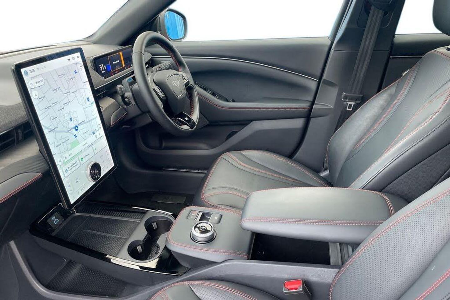 Perforated Sensico - Black with Red Stitching, 10.2in Full Digital Cluster and 15.5in Central Touch Screen, 19in Alloy Wheels - Black Machined, 360 Degree Camera, 8-Way Power Driver and Passenger Seats, ABS - Anti-lock Braking System, Adaptive Cruise Control with Stop and Go and Lane-Centering, Adaptive LED Mustang Signature Headlamps, Air Conditioning - Dual Zone Electronic Automatic Temperature Control, Airbags - Driver and Front Passenger, Applink Remote Control System, BLIS - Blind Spot Information System with Cross Traffic Alert, Black Powerfold Mirrors with Puddle Light Mustang Logo Projection, Blade Front Grille Design, Body Colour Bumpers, E-Latch Keyless Entry System including B-Pillar Keypad Access, Electric Windows - Front, Ford VarioPower Charging Cable, FordPass Connect Embedded Modem, Front Trunk, Front and Rear Parking Sensors, Hands-Free Tailgate, Heated Driver and Passenger Seats, Heated Steering Wheel, High Power Charging Cable, LED Mustang Signature Taillights, Lane Keeping Aid with Lane Departure Warning, Next Generation SYNC with Connected Navigation and Natural Voice Search, One Pedal Drive, Power Steering, Pre-Collision Assist, Privacy Glass, Quickclear Heated Windscreen, Red Brake Calipers, Selectable Drive Modes - Active-Whisper-Untamed, Side Cladding and Wheel Arches Piano Black, Tech Pack Plus, Thatcham Category 1 Alarm, Wireless Device Charging Pad