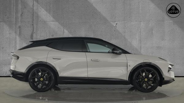 12.6 digital driver display, 5 drive modes (range, tour, sport, individual, off-road), 5G telematics, Adaptive cruise control, Blind spot detection, BLIS (Blind spot information system), Bluetooth, Continuous damping control, Driver monitoring system, e-Call (emergency call), Electric 2 modes power assisted steering, Front cross traffic assist, Front park assist, Heads up display (with semi AR), Keyless entry and exit, Lane keep assist, Lotus App (core package), Power tailgate with hands free open, Rear collision warning, Rear cross traffic alert, Rear park assist, RNC (Road Noise Cancellation), Satellite Navigation, Traffic sign recognition, Visual park assist, Wireless Apple CarPlay/Android Auto, Wireless internet hotspot, Wireless phone charger with NFC, ADB (Adaptive Driving Beam) Function, Aluminium hood, Auto dimming rear view mirror, Automatic lights, Dusk sensor, Electric charging cover, Electric/heated/folding door mirrors with memory, Flush door handles, Frameless Doors, Front air dam, Front tow hook, Heated washer jets, Illuminated door handles, LED 3rd brake light, LED daytime running lights, LED fog lights, LED high beam, LED reverse light, LED side lights, Lotus Active Aero - front grill, floating split roof spoiler, Lidar system, Matrix LED headlights, Metal load space scuff plates, One touch windows with anti-pinch, Puddle lights, Rear LED light strip, Rear privacy glass, Rear side wing doors, Rear wiper, Welcome and goodbye sequences, Welcome home lighting, 12-way electric adjustable front seat with lumbar support, 2-way extension cushion, memory and driver greeting function, 2 cup holders in front centre console, 3 cup holders in rear centre console, 3 seat bench in 2nd row, 4 zone climate control, 40/20/40 split folding rear seat, Air quality system, Automatic air recirculate, Configurable ambient lighting, Electric adjustment of rear seat angle, Electrically adjustable front and rear air vents, Electrically adjustable steering column (4 way) with memory, Front head restraints, Glove box with electric lock, Heat pump, Heated front seats, Heated multi function steering wheel, Illuminated side sills, Illuminated vanity mirror, Parcel shelf, Rear ISOFIX, Second row hanging hook, Side hooks in boot, Single front passenger seat, Touch sensitive light switch, Under boot floor storage, 3 point front seat belts, 3 rear seatbelts, Adjustable regenerative braking, Anti rolling protection, Auto hold function, Autonomous emergency braking system (AEB), Braking override system, Curtain Airbag, Door open warning, Driver and passenger pretensioner with adaptive load limiter, Driver far side airbag, Electrical brake pad wear control, Electronic brake assist (EBA), Electronic parking brake, Electronic Stability Control (ESC), Emergency braking rapid flashing, Escape switch in boot, Front and rear seatbelt reminder, Front motorised pretensioner retractor, Front side airbags, Full size driver and passenger airbags, Height adjustable front seat belts (4 levels), Hill descent control, Hill start assist, Life Detection and Care (LDC), Passenger airbag deactivate switch, Rear outer seatbelts with progressive load limiter, Safety vests, Second row middle seat safety belt, Torque vectoring brake, TPMS (Tyre pressure monitoring system), Traction control system (TCS), Warning triangle