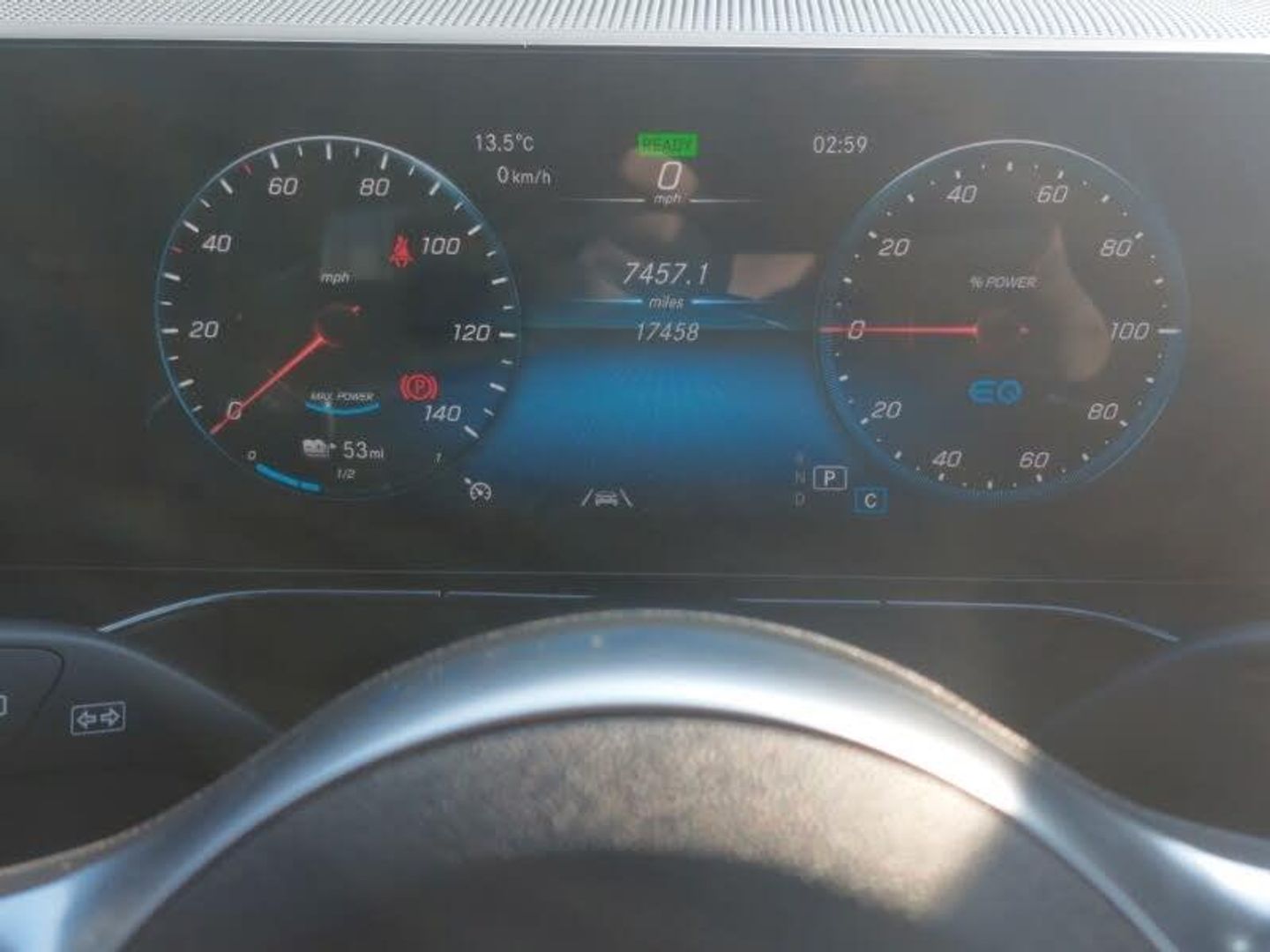 EQ navigation services - map (range display), display charging stations, programming of charging settings and pre entry climate control, Hard-disk navigation, Traffic sign assist, Mercedes me connect, Mercedes Benz emergency call system, Easy-pack tailgate, Mercedes Benz sound system with 4 mid range speakers, 2 tweeters, 2 Frontbass speakers, 1 centre speaker and 225 W amplifier output, MBUX multimedia system with 10.25" instrument and 10.25" media display with touchscreen, DAB Digital radio, Interior lighting - 64 colour Ambient lighting, Heated front seats, Dashboard in ARTICO man-made leather with metallised look finish and rose gold piping, AMG sports seats, AMG brushed stainless steel sports pedals with aluminium rubber studs, 3 spoke AMG multifunction sports steering wheel in nappa leather with chrome control panels and flattened bottom section with perforated grip area, Stowage package - EQC, Seat comfort pack - EQC, Parking package with active park assist with reversing camera - EQC, Mirror package with heated door mirror - EQC, Keyless go comfort package - EQC, Interior light package - EQC