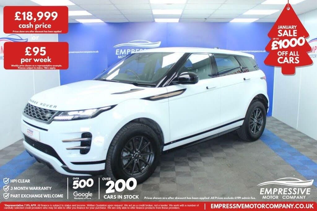 10in Touchscreen, 17in Alloy Wheels - 10 Spoke - Style 1005 - Satin Dark Grey, 40-20-40 Folding Rear Seats, 8-Way Heated Manual Front Seats, ABS - Anti Lock Braking System, Airbags - Front - Driver and Front Passenger, All Season Tyres, Ambient Interior Lighting, Analogue Dials with Central TFT Display, Android Auto, Apple CarPlay, Approach Lights, Auto-Dimming Interior Rear View Mirror, Automatic Headlights, Bluetooth Connectivity, Body Coloured Roof, Brake Pad Wear Indicator, Bright Metal Pedals, Cabin Lighting, Carpet Mats, Chrome Treadplates, Cruise Control and Speed Limiter, Customer Configurable Autolock, DAB - Digital Audio Broadcast, DSC - Dynamic Stability Control, Driver Condition Monitor, EBA - Emergency Brake Assist, EBD - Electronic Brake-Force Distribution, EPAS - Electronic Power Assisted Steering, ETC - Electronic Traction Control, Electric Parking Brake, Electric Windows with One-Touch Open-Close and Anti-Trap, Emergency Braking, Evoque Badge, Flush Deployable Door Handles, Front and Rear Parking Aid, Headlining - Ebony Morzine, Heated Electric Door Mirrors, Hill Launch Assist, Intrusion Sensor, LED Headlights, Lane Keep Assist, Locking Wheel Nuts, Manual Headlight Levelling, Manual Tailgate, Manually Adjustable Steering Column, Overhead Lighting Console, Overhead Stowage for Sunglasses, Passive Front Headrests, Passive Suspension, Perforated Leather Steering Wheel, Pivi, Power Operated Child Locks, Power Socket Pack 1, Push Button Start, R-Dynamic Exterior Pack, RSC - Roll Stability Control, Rain Sensing Windscreen Wipers, Rear Air Vents, Rear Fog Lights, Rear ISOFIX, Rear View Camera, Remote, Seat Belt Reminder, Secure Tracker (12 Month Subscription From New), Sound System, Standard Roof, Sun Visors - Illuminated Vanity Mirrors, TPMS - Tyre Pressure Monitoring System, Tailgate Spoiler, Trim Finish - Gradated Linear Dark Aluminium, Two-Zone Climate Control, Tyre Repair System, Windscreen - Heated, Windscreen Washer Jets - Heated