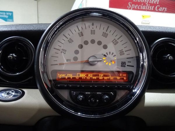 15in Alloy Wheels - Light 5-Star Twin Spoke, 3-Spoke Sport Leather Steering Wheel, 3rd Brake Light, ASC+T - Automatic Stability Control and Traction, Air Conditioning - Manual, Air Scoop Integrated between Bumper and Radiator Grille-Frame in Body Colour, Airbags - Driver, Airbags - Front Passenger, Airbags - Front Passenger with Deactivation Switch, Airbags - Head and Thorax, Alarm - Thatcham CAT1, Anthracite Headlining, Anti-Lock Braking System - ABS, Automatic Door Window Lowering by Approx 6mm When Door Opens, Aux-In Connection, Body Coloured Fuel Filler Cap in Rear Right Side Panel - Linked to Central Locking, Brake Assist, Brake Force Display, CBC - Cornering Brake Control, Car Jack, Central Locking - Remote, Chrome Strip Across Lower Front Apron, Crash Sensor - Fuel Cut-Off, Crash Sensor - Hazard Warning Flashers and Interior Light, Crash Sensor - Unlocking Doors, Cupholders - Two in Front, DAB Tuner, Decorative Rings Surrounding Dashboard Instruments, Door Handles - Chrome Plated, Door Handles - Interior - Chrome Plated, Door Sill Finishers - Metal Look and Model Dependent Lettering, Dynamic Stability Control - DSC, EBD - Electronic Brake-Force Distribution, Electric Windows - Front - One Touch Up and Down, Electronic Power Steering - Speed Related, Embellisher at Bottom Edge of All Windows - Chrome Plated, Gearshift-Selector Lever and Handrake Lever Gaiters in Sensatec, Halogen Lights for Low Beam and High Beam Headlights, Headlight - Beam-Throw Control Electrical with Manual Adjustment, Headlights - Chrome Bezels, Headlights - Follow Me Home, Heated Front Windscreen Washer Jets, Heated Mirrors and Windscreen Washer Jets, Heated Rear Window with Automatic Deactivation, Heater with Mechanical Control and Recirculating-Air Button, Hill Assist, Interior Lighting Integrated into Centre Front Headliner Above Interior Mirror, Interior Mirror - Mechanical Anti-Dazzle, Interior Surface in Fine White Silver and Door Rings in Black, Interior World - Carbon Black, Knee Roll in Hard Plastic on Dashboard - Carbon Black, Lashing Eyes in Luggage Compartment, Luggage Compartment - Light, Luggage Compartment - Partition with Large Through-Loading Door, MINI John Cooper Works - Side Air Inlets Chrome Plated without S Lettering, MINI Mobility System, Microfilter, Mirror Caps in Body Colour, Non Smoker Package, PDC - Park Distance Control - Rear, Passenger Seat Height Adjustable, Personal Profile, Radio BOOST CD, Roll-Bar - Stainless Steel - Polished, Seats - Height Adjustable Drivers, Seats - Height Adjustable Passengers, Second Radio Remote Key, Security Locking Wheel Bolts, Sills-Bumper Edges-Wheel Arches - Black with Model-Specific Bumper Trims, Soft-Top Black, Spoiler - Active Rear (Speed Related), Sport Button, Sport Stripes - Black, Steering Column Height and Length Adjustment, Storage Options in the Trim Panels of Each Front Panel as well as Centre Console, Sun Visors with Integrated Vanity Mirrors on Drivers and Passengers Sides, TPWS - Tyre Pressure Warning System, Tailgate Handle - Chrome Plated, Tool Kit in Luggage Compartment, White Direction Indicators Lights, CHILI Pack, 16in Alloy Wheels - Light 6-Star Twin Spoke - Black, Full Bluetooth Telephone Preparation with USB Audio, Air Conditioning - Automatic, Seats - Sports Front, Multifunction Controls for Steering Wheel, Wind Deflector, Chrome Line Interior, Front Centre Armrest, Front Fog Lights, Colour Line - Polar Beige, Chrome Line Exterior, Interior Light Pack, Rain Sensor and Automatic Headlight Activation, Run-Flat Tyres, Interior Surfaces - Piano Black, Cloth-Leather Ray - Carbon Black, On-Board Computer, Warning Triangle and First Aid Kit, Door Insert - Polar Beige, Floor Mats - Velour, Colour Line - Carbon Black, Storage Compartment Pack