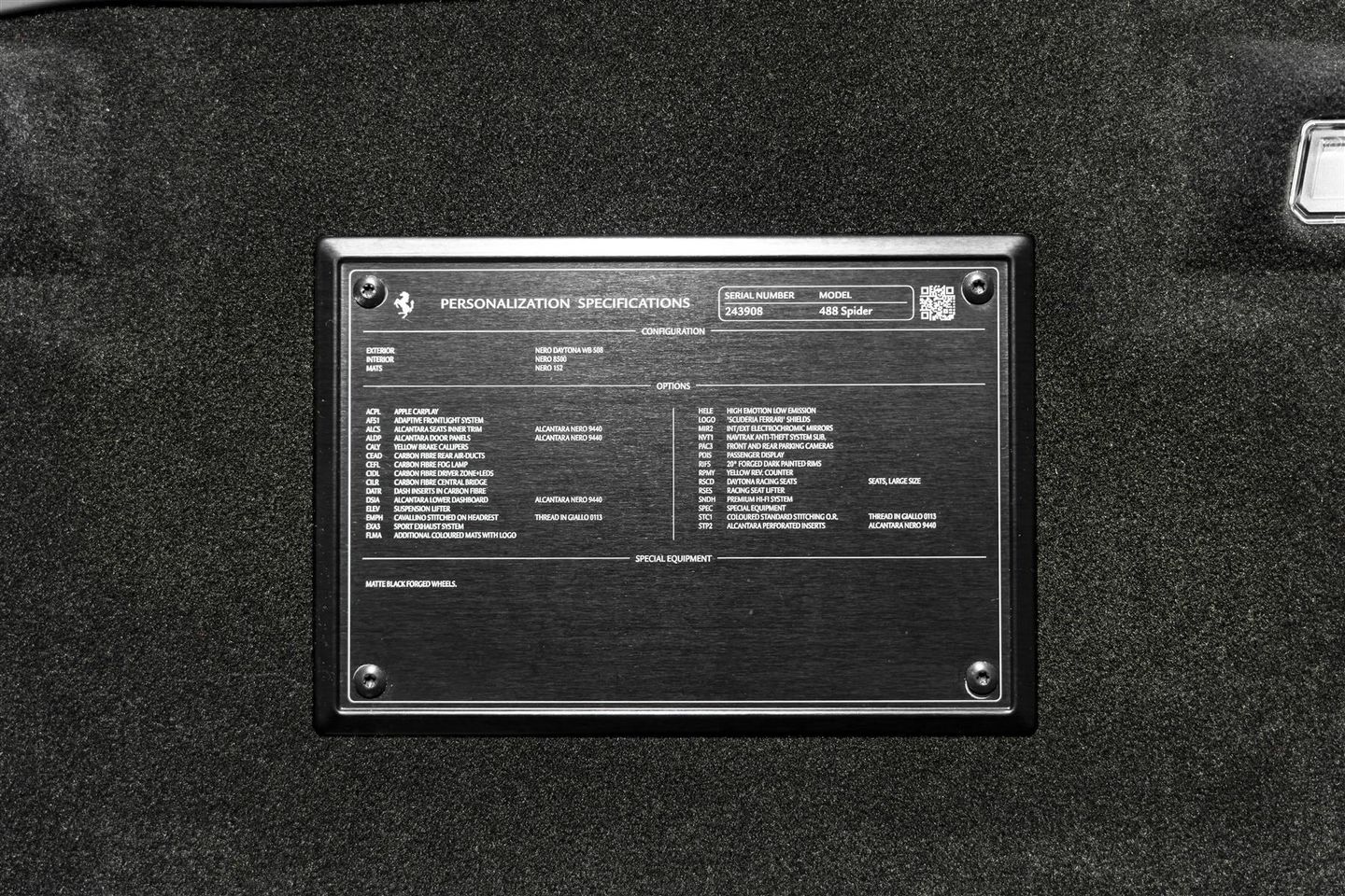FERRARI 488 SPIDER. CARBON INTERIOR. PASSENGER DISPLAY. LIFT. CARPLAY. FRONT END PPF.