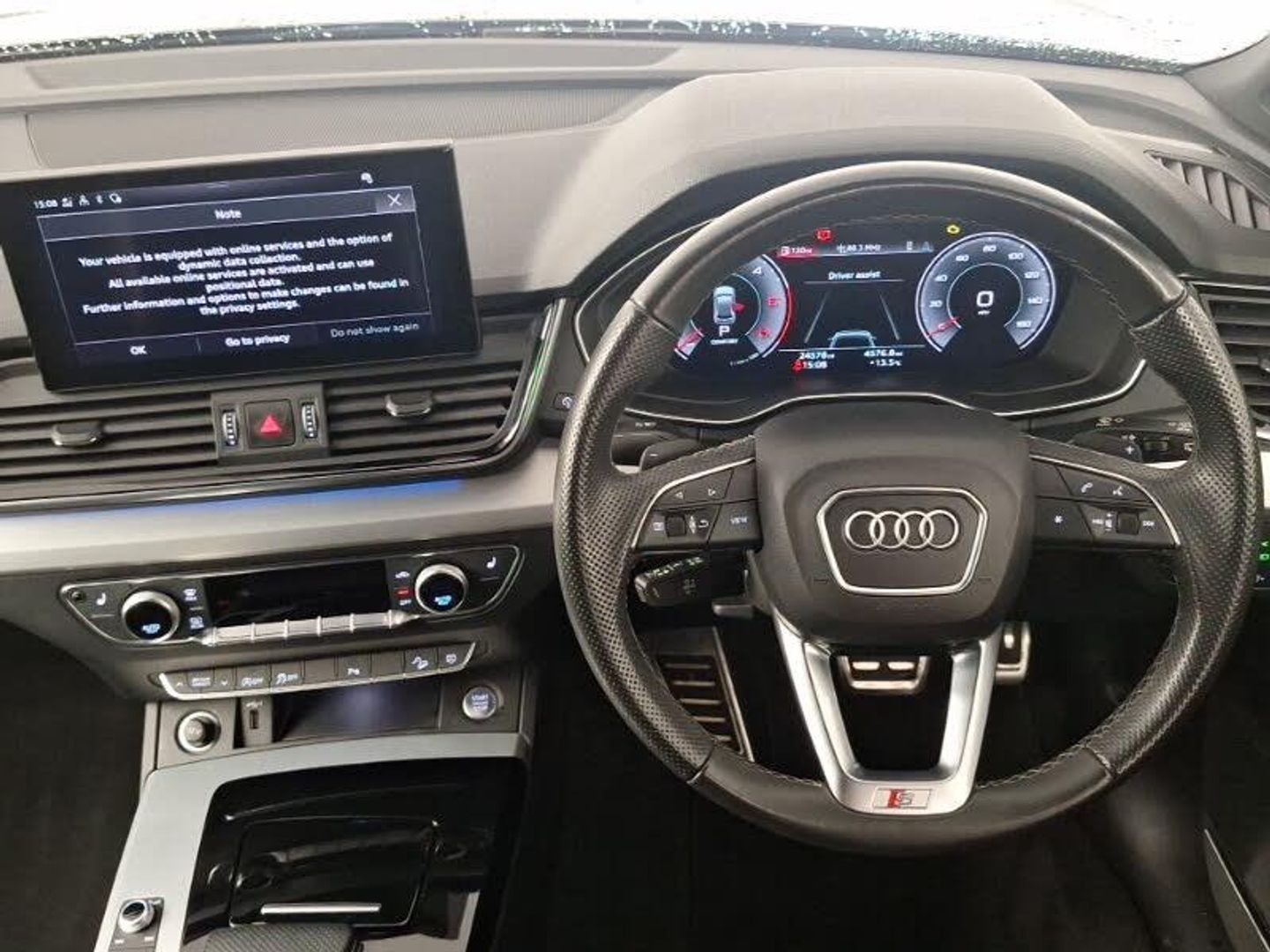 MMI navigation plus with 10.1" touch screen, Audi virtual cockpit plus with 12.3" screen and three different layout designs, Audi connect with Amazon Alexa Integration, Deluxe 3 zone electronic climate control, Audi connect safety and service (e-call), Audi drive select, Audi wireless smartphone interface, Automatic start-stop system with coasting functionality and efficiency programme, Bluetooth interface, Power tailgate, Reversing camera, Voice control system with Audi hotword activation "Hey Audi", DAB Digital radio, Audi matrix LED headlights with dynamic front and rear indicators, Auto dimming rear view mirror, Auto dimming door mirrors, Automatic headlight adjustment, Automatic headlights and windscreen wipers, Headlight washers, Rear privacy glass and rear side windows, ISOFIX child seat mounting and top tether, Heated front seats, High gloss pack - Q5, LED interior light pack - Q5, Hill descent control, Hill hold assist