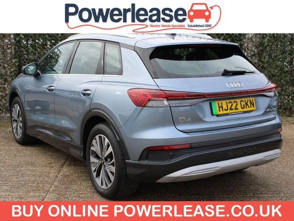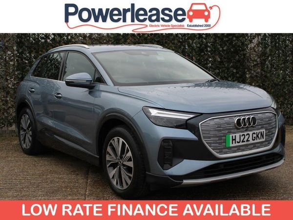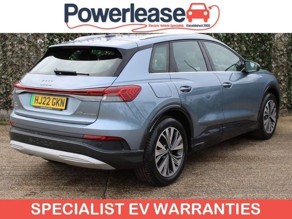 **93.7% BATTERY HEALTH** This 2022 Audi Q4 e-tron Sport is a superb example, having been owned by only one person since new. This electric SUV combines sophisticated Audi design with impressive electric performance. It features a substantial 82 kWh battery, offering a maximum range of 321 miles when new, making it ideal for both daily commutes and longer journeys. Charging is convenient, with a full charge at home using a 7kW charger taking approximately 11 hours and 30 minutes, while rapid public charging can replenish the battery from empty to 80% in as little as 30 minutes. The Q4 e-tron Sport comes equipped with a range of notable features designed to enhance your driving experience. These include a 3 Zone Electronic Climate Control system for personalised comfort, a Bluetooth Interface for seamless phone connectivity, and Rear Parking Sensors to aid manoeuvrability. For enhanced visibility, it boasts LED Headlights with LED Daytime Running Lights, and the Audi Smartphone Interface ensures easy integration with your mobile devices, supporting both Android Auto and Apple CarPlay. The impressive 321 mile range highlights how this vehicle offers excellent usability compared to many other electric cars on the market. BATTERY HEALTH CHECK AVAILABLE ON REQUEST | SPECIALIST EV EXTENDED WARRANTIES | ALL VEHICLES FULLY INSPECTED | ALL VEHICLES SERVICED & MOT'ED | HPI CHECKED AND CERTIFIED | FINANCE AVAILABLE | PART EXCHANGE AVAILABLE | CLICK AND COLLECT AVAILABLE | HOME DELIVERY AVAILABLE | BUY ONLINE VIA OUR WEBSITE WWW.POWERLEASE.CO.UK | IN BUSINESS FOR OVER 20 YEARS EST 2000 |