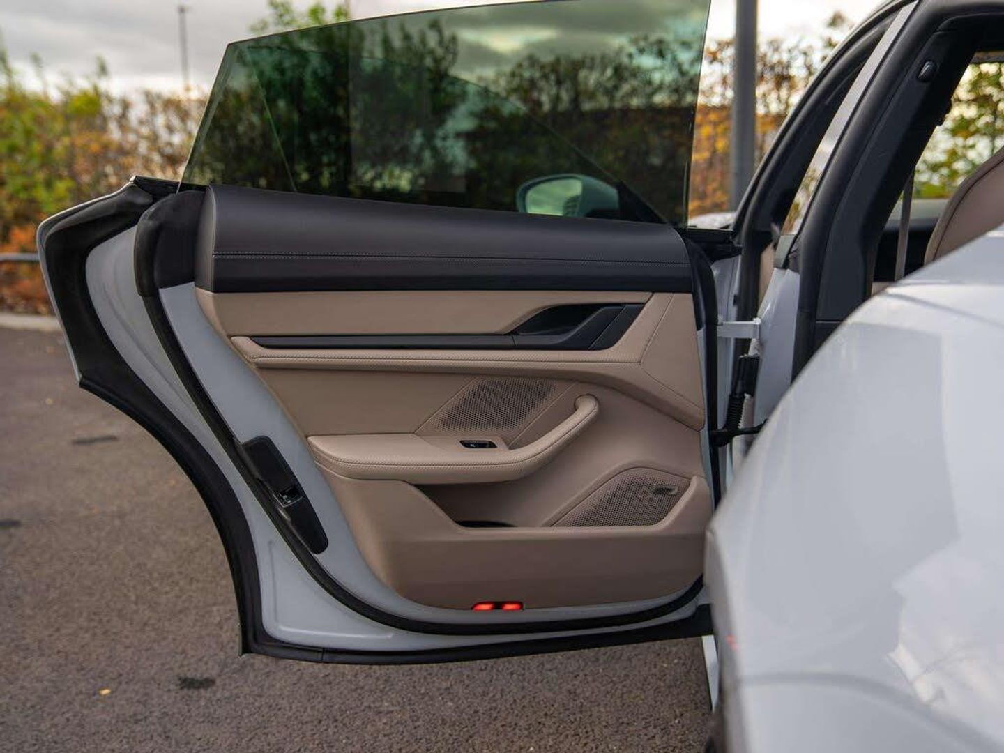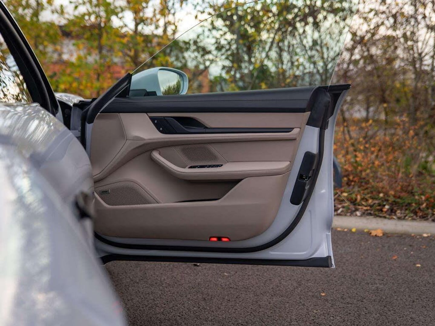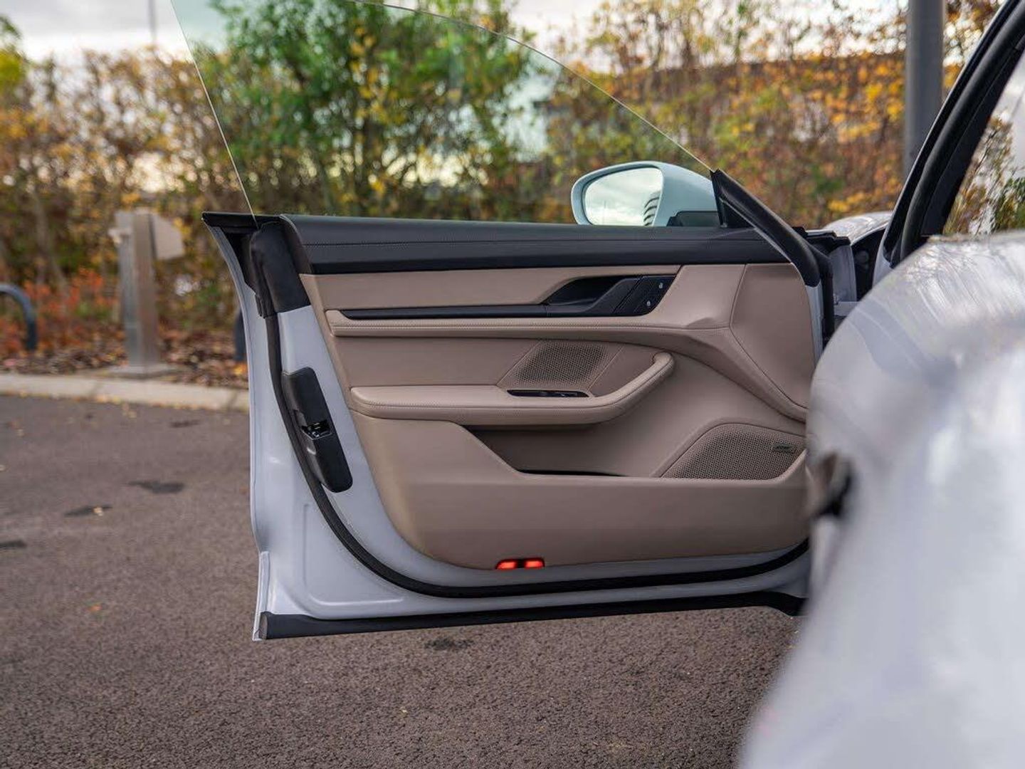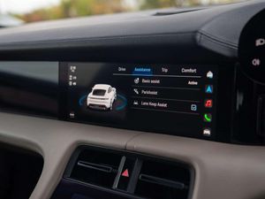 Features:PORSCHE logo LED door courtesy lights (UD1), 21-inch RS Spyder Design wheels (48D), 41 Seats (5KA), 8-way comfort electric seats (front) (Q1G), Accent Package Black (GT0), Ambient lighting (QQ1), Adaptive Air Suspension including Porsche Active Suspension Management (PASM) (1BK), Apple® CarPlay (9WT), Automatically dimming exterior and interior mirrors (4L6), BOSE® Surround Sound System (9VL), Chalk Beige seat belts (FX2), Lane Keep Assist (6I3), Panoramic Roof, fixed (3FG), ParkAssist including Surround View (KA6), Performance Battery Plus (J9K), Porsche Crest on headrests (front) (3J7), Power steering Plus (1N3), Privacy glass (VW1), Seat heating (front) (4A3), Side window trims in black (high-gloss) (QJ4), SportDesign package (2D1), SportDesign Sideskirts (VR4), Storage package (QE1), Windscreen with grey top-tint (4GP), Wheel centres with full-colour Porsche Crest (1NP)
