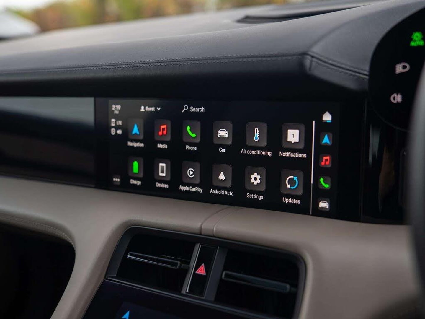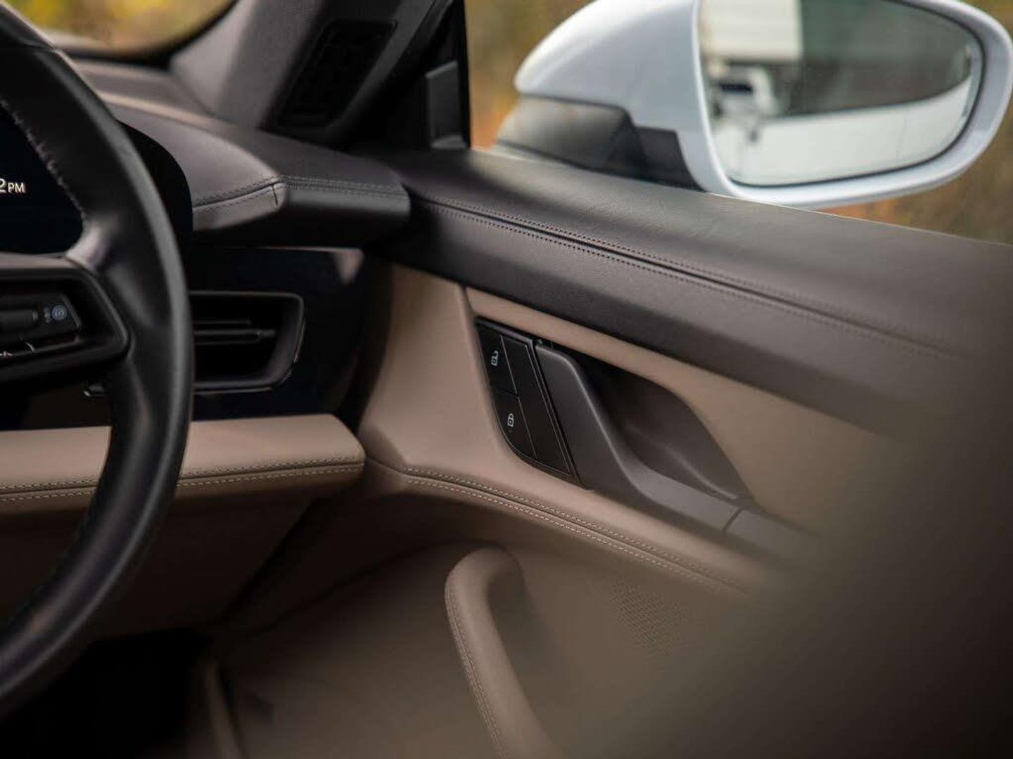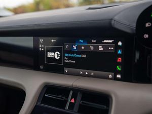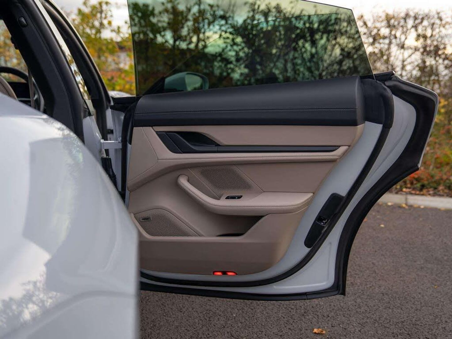 Features:PORSCHE logo LED door courtesy lights (UD1), 21-inch RS Spyder Design wheels (48D), 41 Seats (5KA), 8-way comfort electric seats (front) (Q1G), Accent Package Black (GT0), Ambient lighting (QQ1), Adaptive Air Suspension including Porsche Active Suspension Management (PASM) (1BK), Apple® CarPlay (9WT), Automatically dimming exterior and interior mirrors (4L6), BOSE® Surround Sound System (9VL), Chalk Beige seat belts (FX2), Lane Keep Assist (6I3), Panoramic Roof, fixed (3FG), ParkAssist including Surround View (KA6), Performance Battery Plus (J9K), Porsche Crest on headrests (front) (3J7), Power steering Plus (1N3), Privacy glass (VW1), Seat heating (front) (4A3), Side window trims in black (high-gloss) (QJ4), SportDesign package (2D1), SportDesign Sideskirts (VR4), Storage package (QE1), Windscreen with grey top-tint (4GP), Wheel centres with full-colour Porsche Crest (1NP)