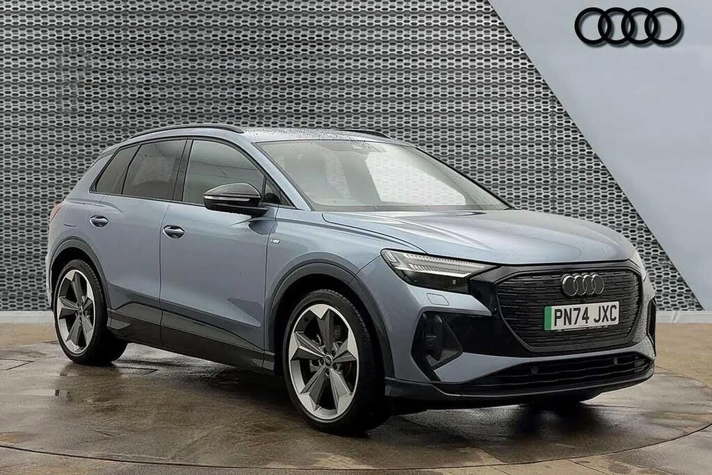 Ambient Lighting, Alloys;Looking to make the switch to electric? Carlisle Audi is pleased to introduce this Audi Q4 e-tron Black Edition. Finished in Geyser blue this Q4 stands out from the crowd with 21" alloy wheels and privacy glass fitted to the rear windows. This Q4 e-tron boasts a substantial 82 kWh battery, providing a maximum range of 339 miles from new. This striking vehicle can go from 0-62mph in just 6.7 seconds, allowing you to easily get from A to B no matter the length of your journey. This vehicle can fully at home using a 7kW charger takes approximately 13 hours, whilst an Ultra Rapid Public Charger allows you to empty to 80% in a swift 28 minutes. This vehicle comes with the Technology Pack, this includes Matrix LED headlights with dynamic indicator and headlight washers, designed to perfectly illuminate the road no matter the driving conditions. Alongside LED rear lights with light strip, allowing you to be easily seen whilst driving at night. This pack also upgrades the sound system to the sublime SONOS premium sound system, providing sublime sound quality for all your favourite music. This vehicle also comes with the Audi phone box light, providing a safe space to store your phone whist driving at night. In front of the driver is the flat top and bottom steering wheel, this allows you to easily control your music, cruise control and Audi Virtual Cockpit. Here you can see information about your car, phone connectivity and navigation system. You'll find the cabin equipped with co...