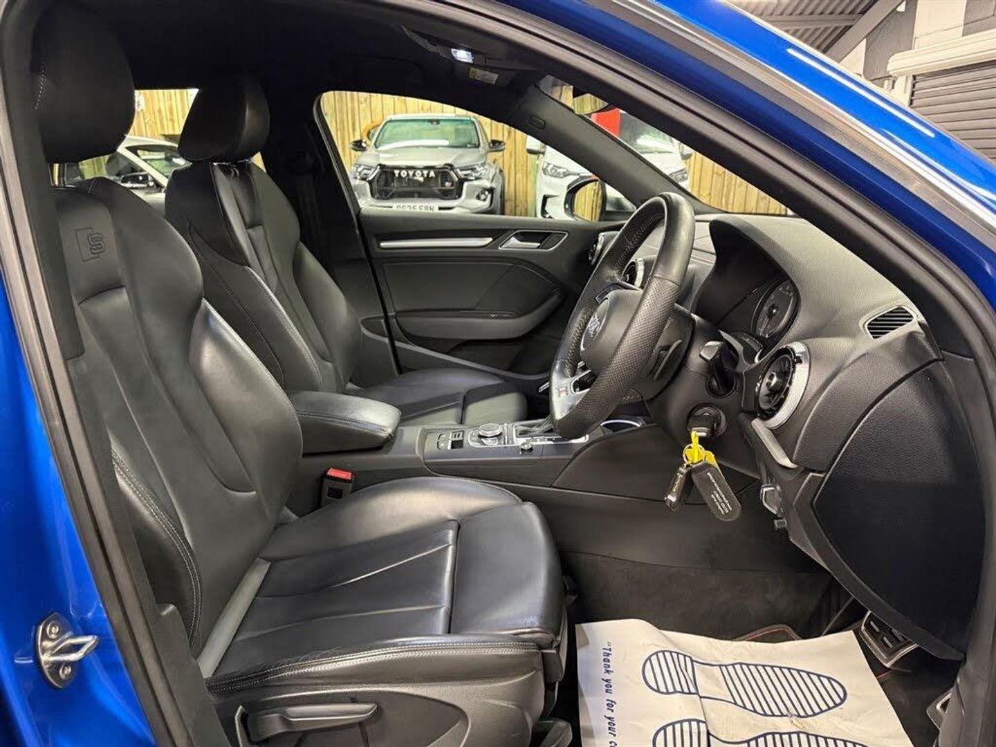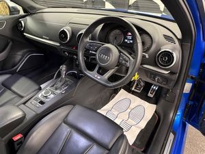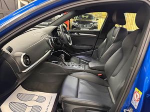 18in Alloy Wheels - 5 Twin Spoke Star Design in Contrast Grey with Diamond Cut Finish,2 x USB Charging Ports and 1 x AUX-IN,6-Airbag System with Knee Airbag for Driver,Aluminium Interior Elements,Aluminium Window Trims,Aluminium-Effect Door Mirror Housings,Anti Theft Locking Wheel Bolts,Anti-Theft Alarm,Audi Beam,Audi Connect,Audi Connect Infotainment Services - 3 Month Trial,Audi Drive Select,Audi Smartphone Interface,Audi Sound System,Auto-Dimming Rear-View Mirror with Light and Rain Sensor,Bluetooth Interface,Brake Calipers Painted in Black with S3 Logo at the Front,CD Drive,Cloth Headlining,Colour Drivers Information System - DIS,Cruise Control,DAB Digital Radio,Door Mirrors - Electrically Adjustable and Heated with Integrated LED Side Indicators,Dual-Zone Electronic Climate Control,ESC - Electronic Stabilisation Control inc ABS - ASR and EDL,Electric Windows - Front and Rear,Electromechanical Parking Brake,Exhaust Tailpipe - Dual-Branch Oval Twin with Chrome Finish,First Aid Kit and Warning Triangle,Front Centre Armrest,Front and Rear Floor Mats,Headlights Washers,Heated Front Seats,Heated Windscreen Washer Jets,Hill Hold Assist,ISOFIX Child Seat Mounting and Top Tether,Illuminated Door Sill Trims with S Logo,Inlays - Matt Brushed Aluminium,Instrument Dials with S3 Logo,LED Headlights with LED Rear Lights and Dynamic Rear Indicators,LED Interior Light Package,Lashing Points in Luggage Compartment,MMI Navigation - SD Card Based,MMI Radio Plus with 7in Electrically Retractable Colour MMI Screen,Manual Seat Adjustment,Non-Smoking Package,Pedals in Stainless Steel,Platinum Grey S Grille with Chrome Plated Dual Struts and S3 Logo,Progressive Steering,Rear Parking Sensors,Remote Central Locking with 2 Fold Away Keys,S Design Body Styling,S Sport Suspension,Seat Belt Monitoring,Split Folding Rear Seat Bench - 60-40 or Fully,Steering Wheel - 3-Spoke Leather-Multifunction-Flat Bottomed-Shift Paddles,Storage Compartments in the Door Side Trims-Centre Console-Under Drivers Seat,Storage Package,Tool Kit,Tyre Pressure Warning Light,Tyre Repair Kit,Comfort and Sound Package,Fine Nappa Leather - S Embossed Sports Seats - Black with Rock Grey Stitching,18in Alloy Wheels - 10-Spoke Design Matt Titanium Look with Diamond Cut Finish