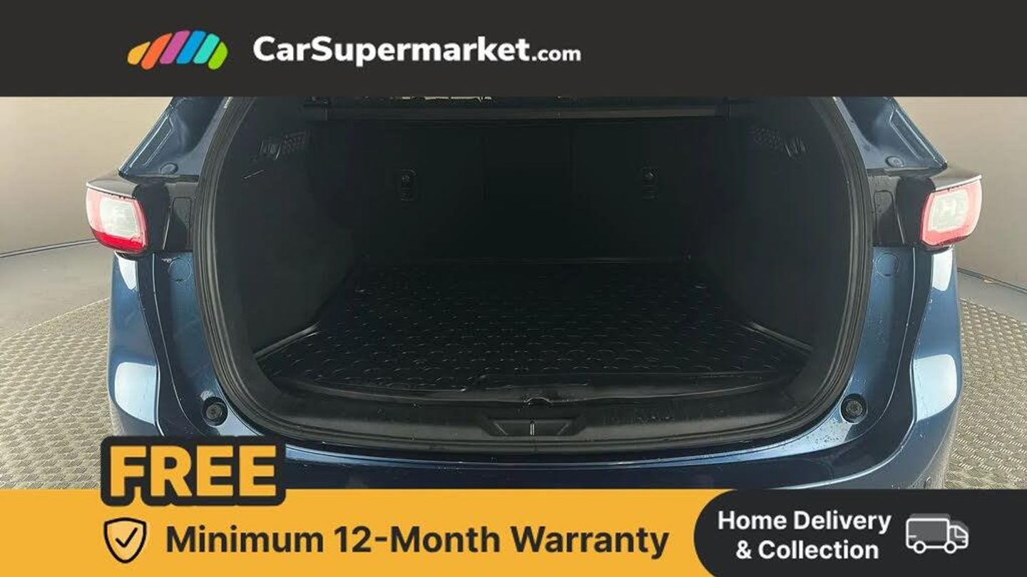 10.25" display with Mazda Connect infotainment,7" colour TFT display,Advanced blind spot monitoring,Apple car play/Android Auto,Bluetooth connectivity with voice control,Collision prevention assist,Connected services,Cruising Traffic Support,Drive mode selector,Electric power steering,Emergency stop signalling system,Engine start/stop button,Forward collision warning,Front and rear parking sensors,Integrated navigation system,Intelligent speed assist,Lane departure warning system,Lane keep assist,Radar cruise control with Stop and Go,Service indicator,Traffic sign recognition (TSR),Trip computer,Windscreen projected colour active driving display (HUD) with memory,i-stop,2 USB sockets in rear,2x USB sockets in front,6 speakers,AM/FM radio,Bluetooth audio streaming,DAB Digital radio,Multimedia Commander including separate volume dial,Steering wheel mounted audio controls,Auto dimming rear view mirror,Automatic headlights,Black inlay dashboard panel,Body colour door mirrors,Body colour roof spoiler,Body coloured front and rear black lower bumper mouldings,Bright finish signature wing,Coming/leaving home lighting function,Door mirror integrated indicators,Dual chrome tailpipes,Dusk sensitive headlamps,Electric front/rear windows with one touch auto up/down,Front grille in gloss black finish,Gloss black B and C pillars garnish,High beam assist,Intermittent rear wash/wipe,LED auto levelling,LED daytime running lights,LED front fog lights,LED third brake light,Power folding and heated door mirrors,Power tilt/slide sunroof,Privacy glass (rear side windows only),Rain sensing front wipers,Rear side wing doors,Satin black side mouldings,Scuff plates,Shark fin antenna,Signature LED rear combination lights,Vinyl with wood grain metal inlay door trim panel,Windscreen wiper de-icer,12v electrical power outlet,3 seat bench in 2nd row,3 stage heated front seats,40:20:40 Karakuri fold-flat seat system,6 way electric adjustable passenger seat,8 way electric driver seat with lumbar support + memory,Cargo room flat floor board with waterproof undertray,Driver seat power slide, recline and height adjustment,Driver, Front passenger and two rear grab handles with coat hooks,Driver/passenger front seatback pockets,Driver/passenger sunvisors + illuminated vanity mirrors (drivers with ticket holder),Dual zone climate control,Folding centre armrest with 2 cup holders,Front and rear door pockets,Front centre storage with two cupholders,Front passenger seat power slide, recline and height adjustment,Heated steering wheel,Humidity sensor,Illuminated glovebox,Interior dome light with integral spotlight,ISOFIX child seat anchorage points attached on outer rear seats,Karakuri tonneau cover,Leather wrapped steering wheel and gear knob,Light roof lining,Luggage compartment LED lighting,Luggage compartment power outlet,Paddle shifts,Rear air vents,Rear headrests,Rear seat recline,Roof mounted sunglasses holder,Single front passenger seat,Three height adjustable head restraints,Tilt/height adjustable steering wheel,White interior LED illumination lighting,3 point front seatbelts with pre-tensioners,3 rear 3 point seatbelts,ABS,Advanced Smart City Brake Support - SCBS,Child locks on rear doors,Driver and front passenger side airbags,DSTC-Dynamic Stability and Traction Control,Dual front airbags,Electronic brake force distribution,Electronic parking brake with auto hold,ESP,Front and rear curtain airbags,Front passenger airbag deactivation,G-Vectoring control,Hill hold assist,Seatbelt reminder front and rear,Single stage passenger airbags,Smart brake support with forward obstruction warning,Tyre pressure monitoring system,Automatic door locking when moving off,Deadlock,Immobiliser,Power door locks,Remote central locking,Smart keyless entry,Thatcham Cat.1 alarm,19" diamond cut black alloy wheels,Tyre repair kit,360 degree surround camera,Driver attention alert system,Adaptive LED Headlights,Rear smart city brake support