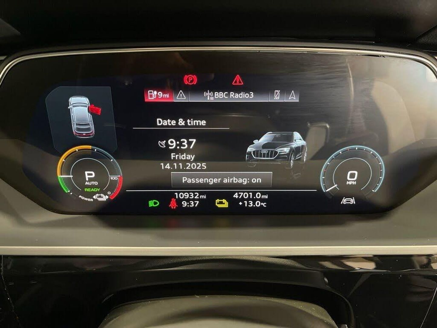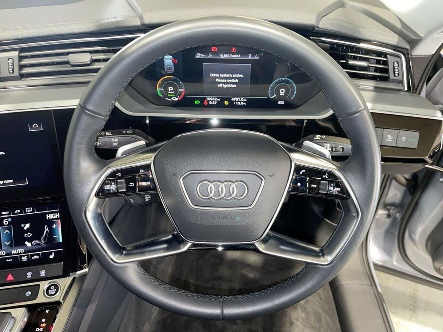 11 kW Onboard Charger, 2-Zone Automatic Air Conditioning, 20in Alloy Wheels - 5-Arm Design, 4-Way Lumbar Support for Front Seats, ABS - Anti-Lock Braking System, AC and DC Charging Access Point on Drivers Side and Second AC Charging Access Point on Passenger Side, Active Vehicle Alerting System - AVAS, Adaptive Air Suspension, Airbags - Driver, AMI - Audi Music Interface - Front, Anti-Theft Alarm, Anti-Theft Wheel Bolts and Wheel Loosening Warning, Audi Connect, Audi Connect Safety and Service - e-call, Audi Drive Select, Audi Pre-Sense Front and Basic, Audi Smartphone Interface Includes Wireless Functionality, Audi Sound System, Audi Virtual Cockpit, Auto Dimming and Frameless Rear View Mirror, Bluetooth Interface, Body Coloured Door Mirrors, Bumpers - Contrasting, Cloth Headlining in Lunar Silver, Compact e-tron Charging System, Cruise Control with Speed Limiter, DAB Digital Radio, Door Mirrors - Electrically Adjustable - Heated - Folding - Automatically Dimming with Memory Function with Kerb View Function for Passenger Side, Door Sills with Aluminium Inlays, Electric Windows - Front and Rear, Electrically Adjustable Front Seats including Memory Function for Drivers Seat, First Aid Kit and Warning Triangle, Four-Spoke Multi-Function Leather Steering Wheel with Paddles, Front and Rear Floor Mats, Front Centre Armrest, Gloss Styling Pack, Heated Front Seats, Household Plug Type G - GB, Industry Plug CEE 32 A-230 V, Inlays in Graphite Grey Paint Finish, ISOFIX Child Seat Mounting for Front Passenger Seat with Front Passenger Airbag Deactivation, ISOFIX Child Seat Mounting for Outer Rear Seats, Keyless Go, Lane Departure Warning, LED Headlights with Function-On-Demand Preparation, LED Interior Light Package, LED Rear Lights, Luggage Compartment Cover, Luggage Compartment Floor, Manual Steering Column Adjustment, MMI Navigation Plus with MMI Touch - Twin Touch Screens with Haptic Feedback, Mode 3 Type 2-AC Charging Cable 22kW, Parking System Plus with 360 Degree Sensors and Function-On-Demand Preparation, Power Operated Tailgate, Progressive Steering, Rear View Camera, Side Airbags - Front and Head Airbag System, Sun Visors with Illuminated Vanity Mirrors, Tool Kit, Tyre Mobility System, Tyre Pressure Warning Light, Vehicle Inlet Combo 2 - EU CCS, Windscreen with Acoustic Glazing