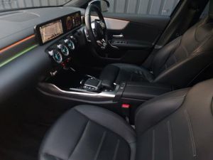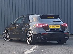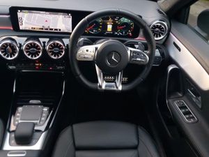 180 degree rear view camera with parking guidelines, 10.25" media display, 10.25" Digital instrument cluster display screen, Active parking assist with visual and audible warning of detected obstacles, Dual bluetooth interfaces, Cruise control + speed limiter, DYNAMIC SELECT with driving programs (Slippery, Comfort, Sport, Sport+ and Individual), ECO start/stop function, Hard-disk navigation, Hey Mercedes Voice activation, Mercedes me connect including emergency call system, accident recovery, breakdown and maintenance management, Mercedes me remote services, Preinstallation for Mercedes Benz link, Pre-installation for private car sharing, Smartphone integration with Apple CarPlay and Android auto, Ultrasonic sensors positioned in the front and rear bumpers, Rear axle multi-link, AMG performance suspension, MBUX multimedia system with DAB digital radio and touchpad including satellite navigation, Mercedes-Benz sound system - 100W, DAB Digital radio, AMG bodystyling - Front apron with splitter in chrome, rear apron with chrome trim and chrome visible trim elements in tailpipe, AMG Front apron with flics as air deflector elements on the outer air intakes, AMG radiator grille with twin blade lamella and AMG Lettering, AMG Rear apron with specific diffuser look with four vertical fins and two round chrome plated tailpipe trim elements with a diameter of 90 mm, AMG spoiler lip on roof, AMG Sports exhaust system with two round tailpipes measuring 90 mm in diameter attached in rear apron, AMG lettering plus ribbing on the inside of the, LED high performance headlamps with integrated LED daytime running lights, AMG Performance steering wheel in nappa leather, Heated front seats, Two zone thermotronic luxury automatic climate control, Seat comfort pack - A Class, Mirror package - A Class, Light and sight pack - A Class, AMG night pack - A Class, Keyless entry lock/unlock, Keyless Go, Urban guard vehicle protection system with immobiliser and interior protection, 19" AMG 5 twin spoke light alloy wheels
