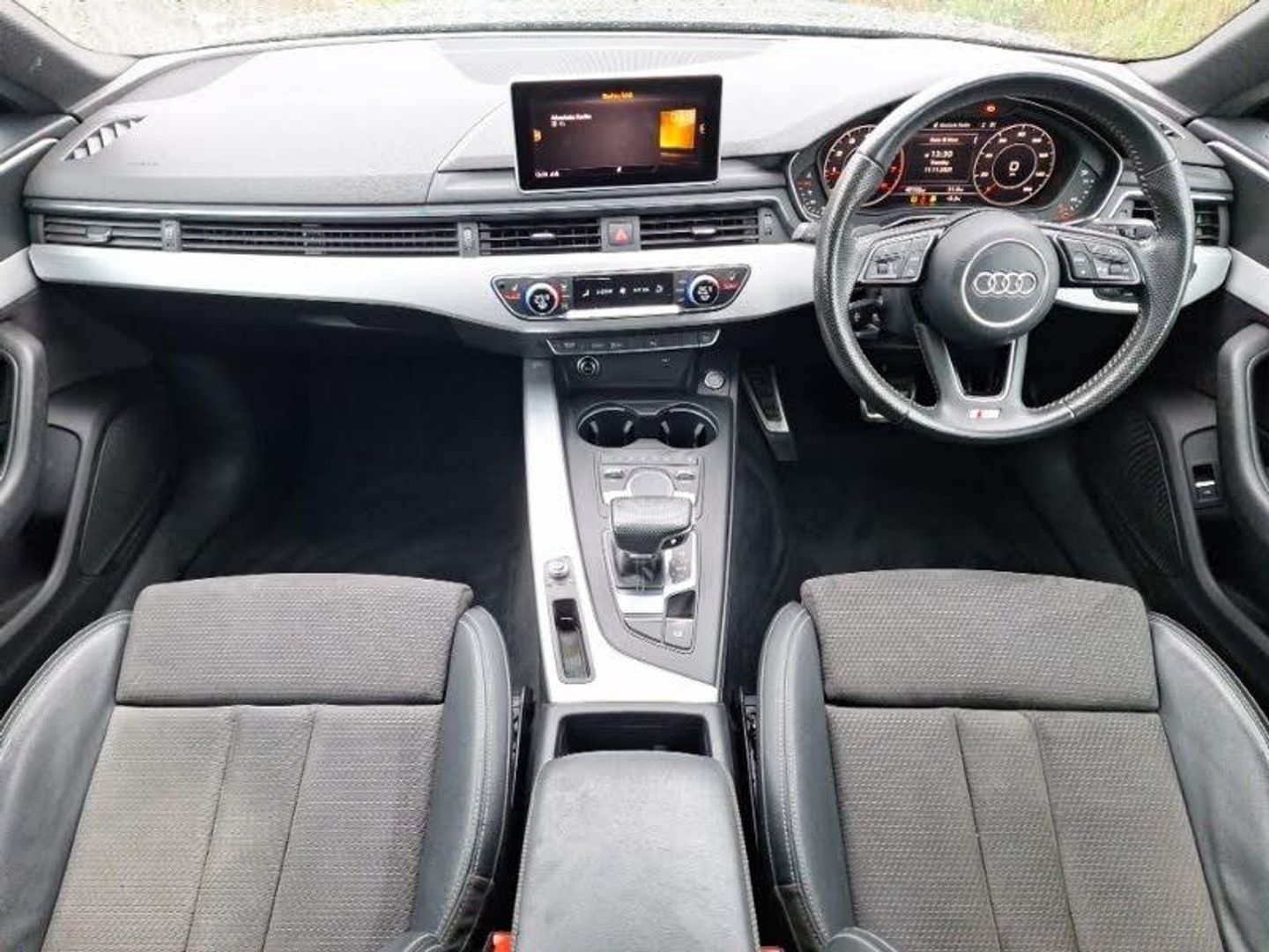 Audi drive select, Audi parking system plus with front and rear sensors, Electric tailgate release, Audi smartphone interface, Electro-mechanical PAS, Mobile telephone preparation - bluetooth interface, Voice control system, 2 x USB charging port with aux input socket, Air inlets in titanium black, Auto dimming rear view mirror with acoustic windscreen, Electric adjustable heated door mirrors, Electric front windows, Front fog lights, Heat insulated glass, Rain and light sensors, S Line body styling, Twilight grey matt radiator grille in matt aluminium inlay, Twilight grey matt rear diffuser, Adjustable steering column, Automatic tri-zone climate control, Black headlining, Boot mat, Front sports seats including electric lumbar support, Perforated leather gearknob, Stainless steel pedals and foot rest, Non Smokers pack, ABS, ASR, ESP + traction control, Electromechanical parking brake, Hill hold function, Multi-Collision braking, Pre-sense city emergency braking system, Tyre pressure monitor, Immobiliser, Anti theft system, Keyless Start, Remote central locking, Contrast stitching, Space saver spare wheel