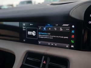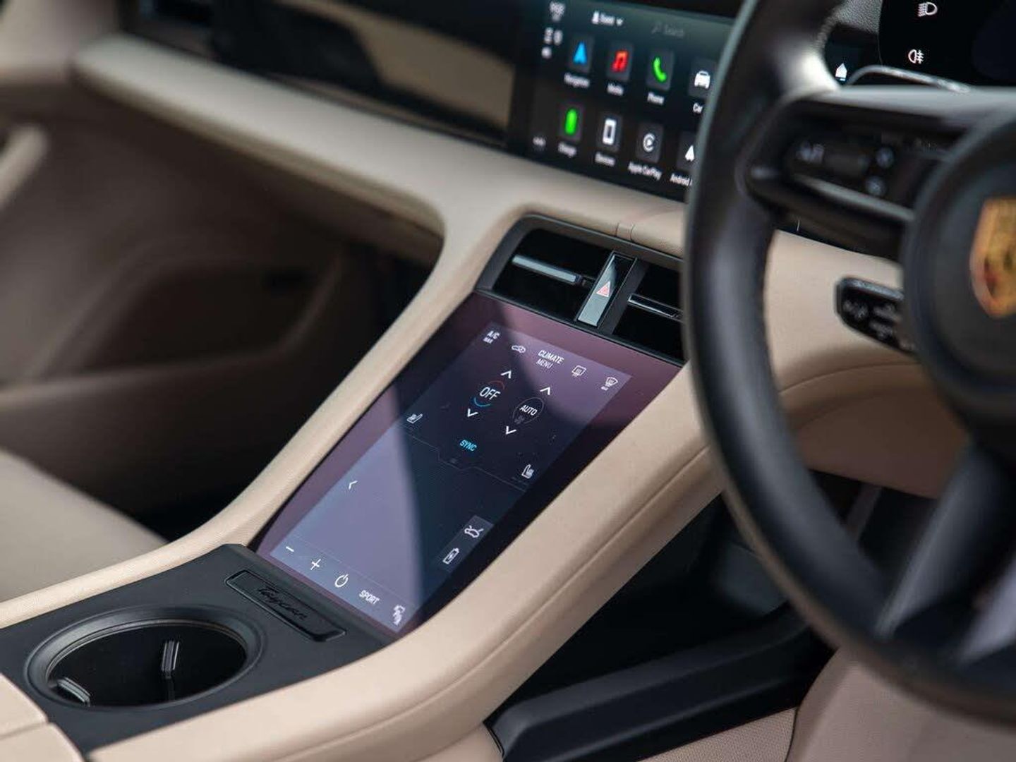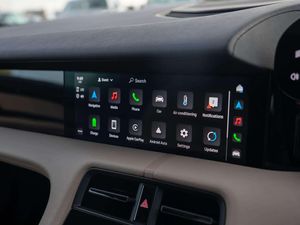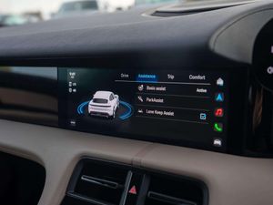 Features:20-Inch Taycan Turbo Aero Wheels (47I), 41 Seats (5KA), 8-way comfort electric seats (front) (Q1G), Accent Package Black (GT0), Ambient lighting (QQ1), Apple® CarPlay (9WT), Automatically dimming exterior and interior mirrors (4L6), BOSE® Surround Sound System (9VL), Heated steering wheel (2ZC), Lane Keep Assist (6I3), Panoramic Roof, fixed (3FG), ParkAssist including reversing camera (KA2), Porsche Active Suspension Management (PASM) (1BH), Porsche Electric Sport Sound (GM3), Power steering Plus (1N3), Privacy glass (VW1), Seat heating (front) (4A3), Storage package (QE1)
