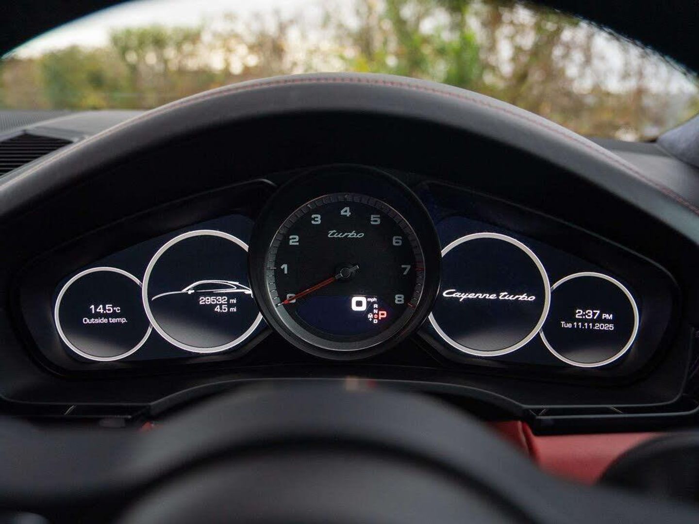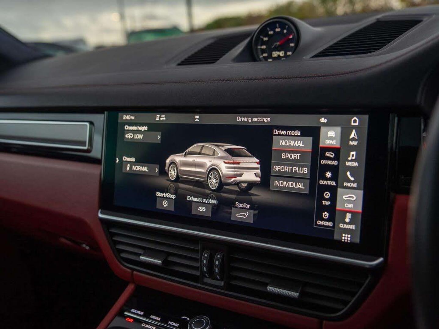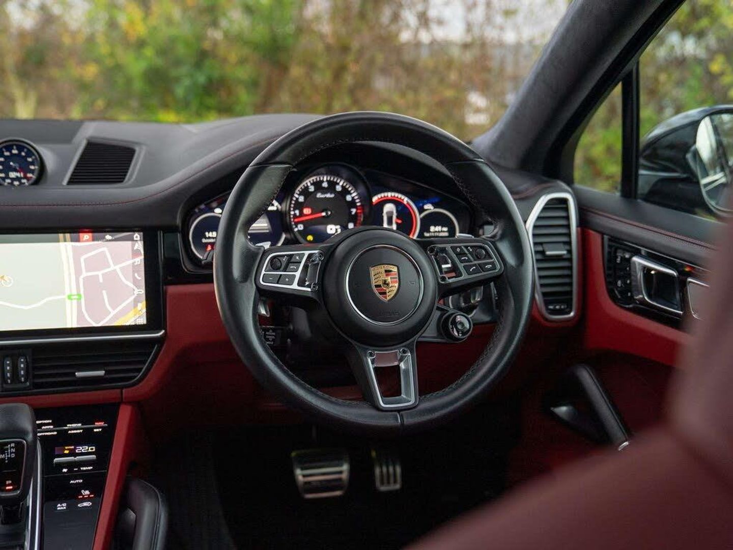 Features:22-inch Cayenne Sport Classic wheels in Jet Black Metallic incl. wheel arch extensions in exterior colour (49B), Adaptive air suspension with levelling system and height adjustment incl. Porsche Active Suspension Management (PASM) (1BK), Adaptive cruise control (8T8), Adaptive Cruise Control incl. Emergency Stop Function (PW5), Adaptive Sports Seats in Front (18-Way, electric) (Q1J), Ambient lighting (QQ1), Apple® CarPlay (9WT), BOSE® Surround Sound System (9VL), Door sill guards in aluminium with model designation (7M9), Exterior Mirrors painted in Exterior Colour (6FU), Head-Up Display (KS1), Heated steering wheel (2ZH), Heated windscreen (4GR), Panoramic Roof, fixed (3FG), ParkAssist including reversing camera (KA2), Porsche Surface Coated Brake (PSCB) (1ZI), Power steering Plus (QZ7), Privacy glass (VW1), Preparation for towbar system (1D7), Roof lining in Alcantara® (6NN), Seat heating (front and rear) (4A4), Smoking package (9JB), Soft-close doors (GZ2), Sport Chrono Package incl. mode switch (8LH), Sports exhaust system including sports tailpipes in Black (0P9), Tinted LED main headlights including Porsche Dynamic Light System (PDLS) (8JT), Tinted LED taillights including light strip (8SB), Wheel centre set with full-colour Porsche Crest (1NP)