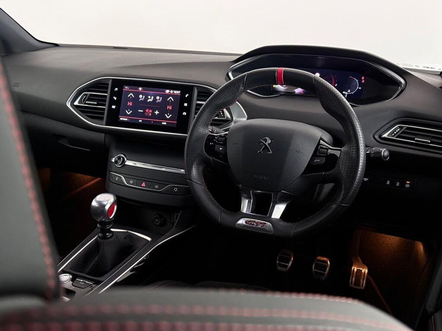 1-3 - 2-3 Folding Rear Seat, 12V Power Socket, 19in Alloy Wheels - Carbone Two Tone Finish Diamond Cut, 3.5in GTi Instrument Panel Display, 3D Connected Navigation, 6-Speaker Radio - MP3 Compatible, Airbags - Adaptive Driver and Front Passenger, Airbags - Driver and Front Passenger Side, Airbags - Front and Rear Curtain, Alarm - Thatcham Category 1, Aluminium GTI Door Sill Finishers, Aluminium Style Pedals and Door Sills, Anti-Lock Braking - ABS - Electronic Brake Force Distribution - EBFD - Emergency Braking Assistance - EBA, Automatic Door Locking When Moving Off, Automatic Dual Zone Climate Control, Automatic Hazard Light Activation Upon Heavy Brake Application, Bluetooth Telephone Facility, Central Front Armrest with Height and Longitudinal Adjustment, Child Locking Functionality on Rear Doors, DAB Digital Radio, Dark Tinted Rear Side and Tailgate Windows, Dashboard Trim - Satin Chrome, Deadlocking, Door Armrests and Facia Panels Trimmed in Mistral Leather Effect Trim with Red Stitch Detail, Door Mirror Shells - Nera Black, Driver Sport Pack, ESP - Electronic Stability Programme, Electric Parking Brake includes Hill Assist, Electric Power Steering with Reach and Rake Adjustable Steering Column, Electronic Code Immobiliser, Exterior Door Handles - Body-Colour, Exterior Temperature Indicator with Ice Warning, Fixing Rings - x4 in Load Area, Front Armrest and Gear Lever Gaiter with Red Contrast Stitching, Front Central Console with Cup-Holder, Front Interior Light with Reading Spotlights x2 and Rear Interior Light with Timer, Front Optimised Safety Headrests and Rear Retractable Headrests - x3 - Height-Adjustable, Front Three-Point Retractable Seatbelts with Force Limiters, Front Windscreen Wipers with Multi-Speed Setting, Front and Rear Parking Sensors, Full LED Headlights, GTi Emblems - Front Wings and Tailgate, Gear Lever in Satin Chrome, Gear Shift Indicator, Grab Handles x4 - Retractable - Damped, Headlights Left On Audible Warning, Heated Rear Windscreen, ISOFIX Child Seat Fittings -x2- in the Outer Rear Seats, Illuminated Vanity Mirrors, Interior Door Handles - Satin Chrome, LED Daytime Running Lights Built into the Headlight Unit, LED Sequential Scrolling Front Indicators, Large Twin Exhaust and Black Rear Diffuser, Lowered Ride Height - 11mm, Map Pockets on Front Seat Backs, Mirror Screen, Mistral Floor Mats with Red Contrast Stitching, Mistral Full-Grain Leather Steering Wheel with Red Stitch Detail - GTi Emblem and Red Centering Mark, Multifunction Trip Computer, One-Touch Electric Front and Rear Windows with Pinch Protection, PEUGEOT Open and Go System, Peugeot Connect SOS and Assistance, Peugeot i-Cockpit, Peugeot i-Cockpit - 9.7in Capacitive Touchscreen, Peugeot i-Cockpit - Compact Multi-Function Steering Wheel, Peugeot i-Cockpit - Head-Up Instrument Panel, Power Folding Door Mirrors - Includes Courtesy Approach Lights, Programmable Cruise Control and Speed Limiter, Radiator Grille - Gloss Black Chequered with Gloss Black Edge Trim and Red Peugeot Lettering, Rear Central Armrest with Ski Flap and Two Cup-Holders, Rear Coat Hooks x2, Rear LED Peugeot Signature Claw Effect Lights - With Daylight Function, Rear Number Plate Lights x2, Rear Three-Point Retractable Seatbelts x3 with Force Limiters in the Outer Rear Seats, Rear Windscreen Wiper Triggered Automatically in Reverse Gear, Red Painted Peugeot Sport Brake Calipers with 380mm Front Discs, Remote Central Locking - Two Remotes, Roof Lining - Tramontane Black, Roof Mounted Antenna, Seatbelt Unfastened Warning Display, Seatbelt Unfastened on the Move Audible and Visual Alert for Front and Rear Seats, Seatbelt not Fastened Audible and Visual Alert for Front Seats, Seating - Driver Seat Lumbar Adjustment, Seating - Driver and Front Passenger Seat Height Adjustment, Seating - Driver and Front Passenger Seat Manual Adjustment - Longitudinal and Back Rest Angle, Seating - Driver and Front Passenger Seat Massage Function with Two Intensity Settings, Seating - Front Pa