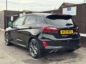 RESERVEDHere we have a factory original & very low mileage 2023 (23) Ford Fiesta 1.5T EcoBoost ST-3 in stock. ULEZ compliant & comes with road tax that costs just £195 per year while averaging 42.2 MPG. Recently serviced at Buckingham Ford in May 2025, it will also be supplied with a FREE 6 month warranty & breakdown cover.DETAILS- Finished in Agate Black with Black Half Leather/Suede Upholstery & recently refurbished Grey 18'' Alloy Wheels. Owned by a friend of ours who's just bought a BMW M2, he's asked us to sell the car on his behalf. It comes with 2 remote keys & drives superbly with its 6 speed manual gearbox & incredibly fun 197 BHP petrol engine.SPEC- This ST3 model comes with a Touch Screen Interface, Sat Nav, Apple Car Play/Android Auto, Heated Steering Wheel, Heated Front Seats, DAB Radio, Rear Parking Camera, Bluetooth with Voice Control, Rear Parking Sensors, Auto Air Con, Cruise Control, Auto Head Lights, Ford Performance Seat Logos, Quick Clear Front & Rear Screen, Rear Tinted Windows, Lane Assist & ISOFIX.HISTORY- Last serviced at 2,220 miles in May 2025 by Buckingham Ford which is our local Ford main dealer. It included a new oil filter, oil, carbon filter & spark plugs which cost 416.12. The car has 4 matching Michelin tyres, all at 6mm of tread.MILES- This car has covered 4,618 miles from new. It was first registered on 29th April 2023.CONDITION- The car is in near like new condition & was recently ceramic coated as well. It even still has the new car smell! A detailed walk around video can be found on our Youtube channel.ABOUT US- TMR Prestige Services Ltd are a father & son family run business based in Stoke Mandeville, Aylesbury. 2025 is our 11th year of trading in low mileage, high specification cars. We operate by appointment only & are open 7 days a week. We pride ourselves on giving a five star service. Please take a moment to view our reviews on Auto Trader and Google we are very proud of them. Part Exchange, Extended Warranties & Nationwide Delivery Available (fees apply).-RESERVED-FINANCE & DELIVERY AVAILABLE, PART EXCHANGE WELCOME, FAMILY RUN BUSINESS