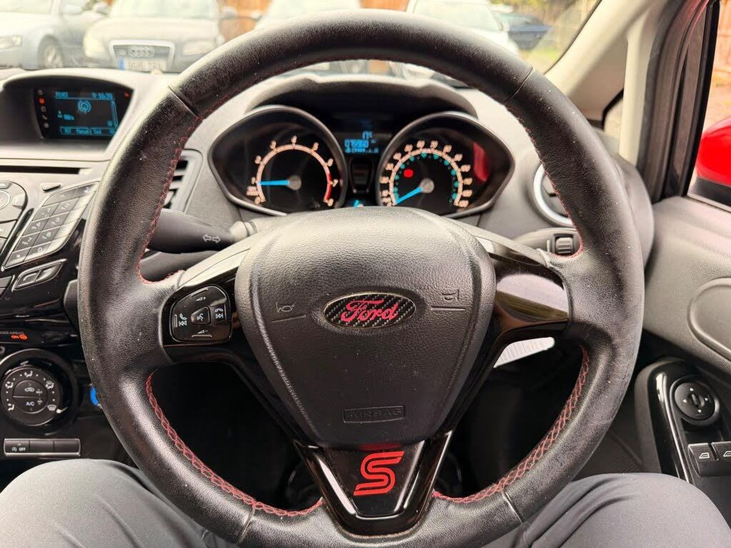 12V Power Socket - Front, 17in Alloy Wheels - 8-Spoke, ABS - Anti-lock Braking System, AUX Connection, Air Conditioning - Manual, Airbags - Curtain, Airbags - Driver Side Knee, Airbags - Front Passenger, Airbags - Head and Thorax, Airbags - Passenger Deactivation, Armrest - Centre Console, Bluetooth Hands-free Phone, Body Colour Exterior Mirrors, Brake Warning Lights - Automatic Flashing of Brake Lights Under Heavy Braking, Bumpers - Front and Rear - Body Colour, Bumpers - Sport Front and Rear, Centre Console - with Trinket Tray - 2x Cup Holders - Illuminated, Courtesy Light - Overhead with Theatre-Style Dimming, Courtesy Lights with Map Reading Lights, DDS - Deflation Detection System, Door Handles - Body Colour, Door Mirrors - Electrically Operated and Heated, Dress Up Kit - Full, Drivers Airbag, EBA - Emergency Brake Assist, EBD - Electronic Brakeforce Distribution, ECOmode, EPAS - Electric Power Assisted Steering, ESP - Electronic Stability Programme, Electric Windows - Front with One Touch Lowering Drivers, Emergency Assistance, Emergency Brake Warning - Automatic Hazard Warning Lights, Engine Immobiliser, Ford AM-FM CD Audio System, Ford Easy Fuel Capless Refuelling System with Misfuel Inhibitor, Ford SYNC, Front Fog Lights - Black Bezel Rings, Front Lower Grille Insert and Surround - Black, Front Seatback Map Pockets - Driver and Passenger, Front Upper Grille Insert - Black Mesh, Full Body Styling Kit, Gear Knob - Leather, Gearshift Indicator Light, Gearshift Knob - Leather-Trimmed with Chrome Finish Bezel, Glovebox - Illuminated, Head Restraints - 2-way Adjustment, Head Restraints - Rear 2-Way Adjustment, Headlights - Halogen Projector with Silver Bezel, Headliner - Woven, Heated Front Windscreen, High-Mounted Rear Brake Light, Hill Start Assist, IPS - Intelligent Protection System, Interior Door Lever - Chrome Finish, LED Daytime Running Lights, Large Rear Spoiler, Loadspace Compartment Light, Loadspace Floor Carpet, Locking Wheel Nuts, Matrix Display, MyKey, Pedals - Sports, Perimeter Anti Theft Alarm, Pollen Filter, Rake and Reach Steering Adjustable, Rear Courtesy Lights, Remote Central Locking, Removable Package Tray, Seats - 60-40 Split Folding Back and Fixed Cushion, Seats - Drivers 4-Way Adjustment, Seats - Drivers Lumbar Support, Seats - Front Sports, Seats - ISOFIX Mounting Brackets for Child Seats, Side Skirts, Speakers - x6, Sports Suspension, Steering Wheel - 3-Spoke - Leather Trimmed with Bezel, Steering Wheel - Multifunction, Stowage Pockets - Driver and Front Passenger Seatbacks, Tailgate Handle - Body Colour, Tinted Glass, Traction Control - TC, Trip Computer, Tyre Inflator Kit, Tyre Pressure Monitoring System, USB Connection, Voice Control - Audio