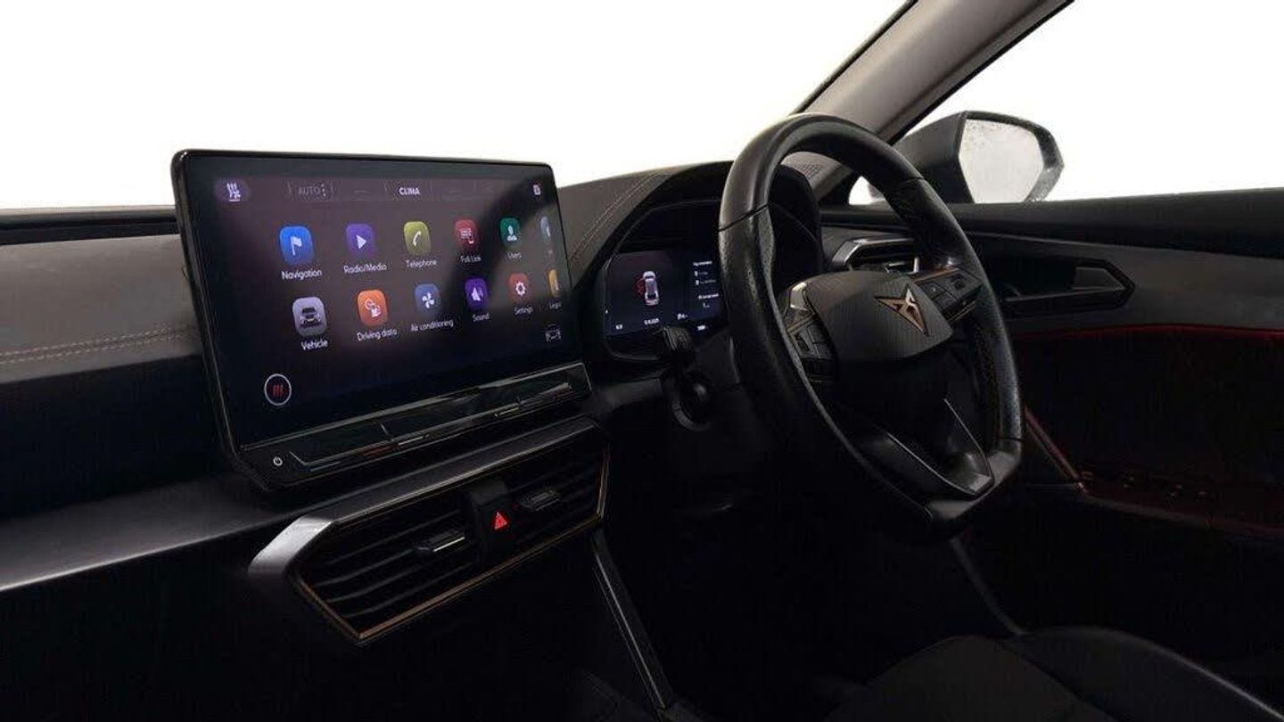 12V Socket in Front, 18in Alloy Wheels - Performance Machined Sport - Black and Silver, 60-40 Rear Seats with Central Armrest and Mechanical Seat Release, ABS - Anti-Lock Braking System, Airbag on Driver and Front Passenger Side with Front Passenger Airbag Deactivation, Anti-Theft Alarm, Auto Dimming Rear View Mirror, Black Sports Seats with Copper Stitching, Breakdown Kit, CUPRA Connect - Safety - Service - Remote and Online, Charging Cable - Mode 2 - 10amp, Charging Cable - Mode 3 - 16amp, Copper and Aluminium Interior Detailing, Daytime Running Lights with Automatic Headlight Control and Coming-Leaving Home Lights, Digital Cockpit and Configurable Dashboard, Door Mirrors Electrically Adjustable - Folding and Heated, Driver Alert System, Driving Profile Selection, Dynamic Headlight Range Control, Electric Window - Front, Electronic Locking Differential with Dynamic Traction Support, Electronic Parking Brake, Forward Collision Warning with Automatic Braking, Front Centre Armrest, Front Fog Lights with Cornering Function, Front Side Curtain Airbag, Front and Rear Head Restraints, Gloss Black Roof Rails and Window Surrounds, Headlining - Grey, ISOFIX, Illuminated Interior Front Door Sills, Illuminated Sunvisor with Mirror, Interior Ambient Lighting, Kessy - Keyless Entry and Start, LED Headlight, LED Taillights with Dynamic Indicator, Lane Assist, Leather Multi-function Steering Wheel - Heated with Gear Shift Paddles, Leather Multifunction Steering Wheel, Locking Wheel Bolts, Manually Adjustable Height and Lumbar Support for Front Seats, Navigation System, Power Steering, Predictive Adaptive Cruise Control with Speed Limiter, Rain Sensing Wipers, Reading Lights - 2x Front - 2x Rear, Rear Diffuser with Black Simulated Exhaust Pipes, Rear Parking Sensors, Safety and Driving Pack M, Seat Belt Reminder, Three Zone Climate Control with Control Panel in the Rear, Tinted Rear Windows, Tyre Pressure Monitoring System, USB Type C x4 - x2 Front and x2 Rear, Welcome Lights, Wireless Phone Charger