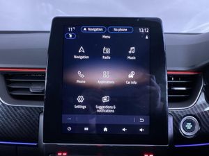 18in Alloy Wheels - Silverstone Diamond with Red Inserts, 7in TFT Driver Information Display, ABS with EBA - Emergency Brake Assist, Active Emergency Braking System - AEBS, Adaptive Cruise Control with Speed Limiter, Airbags - Deactivation - Front and Side - Driver and Passenger, Anti Drill Door Locks and Locking Fuel Cap, Auto Dimming Rear View Mirror, Automatic Climate Control with Combined Filter - Humidity Sensor - Air Quality Sensor, Automatic Headlights, Automatic Windscreen Wipers with Rain Sensors, B Brake Mode - One-Pedal Driving with Increased Regenerative Braking, Black Interior Roof Lining, Black Side Door Protection with Gun Metal Insert, Blind Spot Warning, Bluetooth - DAB Radio and USB Ports, C-Shaped LED Front Signature Lighting, Carbon Style Soft Touch Dashboard, Central Console with Storage, Central Door Locking, Chrome Decopart on Wing - Fender Molding - with RS Line Badge, Deadlocking, Distance Warning Alert, Door Mirrors - Electrically Adjustable and Foldable with Defrosting and Temperature Sensor, Double Chromed Exhaust Tailpipes Elements, Driver Seat Belt Height Adjustable, Driver and Passenger Front - Side - Head and Curtain Airbags, EBD - Electronic Brake Distribution, ECO Mode Function, ESC - Electronic Stability Control, EV Button to activate PURE mode -100% Electric Drive, Easy Link 9.3in Portrait Touchscreen with Navigation - Google Search - Traffic Information, Electric Windows - Front and Rear, Electronic Parking Brake with Auto-Hold Function, Extra Tinted Windows - Rear and Tailgate, Frameless Rear-View Mirror, Front Bumper with F1 Blade and Honeycomb Front Grille, Front Driver Window with One Touch Facility and Anti-Pinch Function, Front Grille with Chrome on Upper Part, Front and Rear No Seatbelt Warning Sound, Full LED Headlights, Gear Change Indicator, Gun Metal Front and Rear Skid Plates, HSA - Hill Start Assist, Hands Free Parking, Handsfree Keycard - Keyless Access and Start, Headlights - Automatic High-Low Beam, Heated Steering Wheel, ISOFIX Child Seat Fixing Points on Rear Outermost Seats, LDW - Lane Departure Warning, LED Front and Rear Rooflights, LKA - Lane Keep Assist, MULTI-SENSE - 3 Driving Modes and 8 Ambient Lighting, Parking Pack, Parking Sensors - Front and Rear, Pedals - Aluminium, RAID - Renault Anti Intruder Device - Automatic Door Locking, Rear Air Vents, Rear Door and Window Child Locking Function - Front Driver Door Control Panel for Rear Door, Rear Seats - 60-40 Split and Fixed Base, Rear Wiper, Rear-Cross Traffic Alert, Rear-View Camera, Renault Automatic Emergency Assist, Seats - Drivers Height Adjustment, Seats - Passenger Height Adjustment, Shiny Black Shark Fin Antenna, Smartphone Integration with Apple CarPlay and Android Auto, Steering Wheel - Height and Reach Adjustable, Steering Wheel - RS Line Perforated Leather with Red-Black Harmony and RS Line Badge, Traffic Sign Recognition with Overspeed Prevention, Trip Computer, Tyre Inflation Kit, Tyre Pressure Warning Light, Variable Power Assisted Steering - Electrical, Winter Pack, Wireless Charging for Smartphone