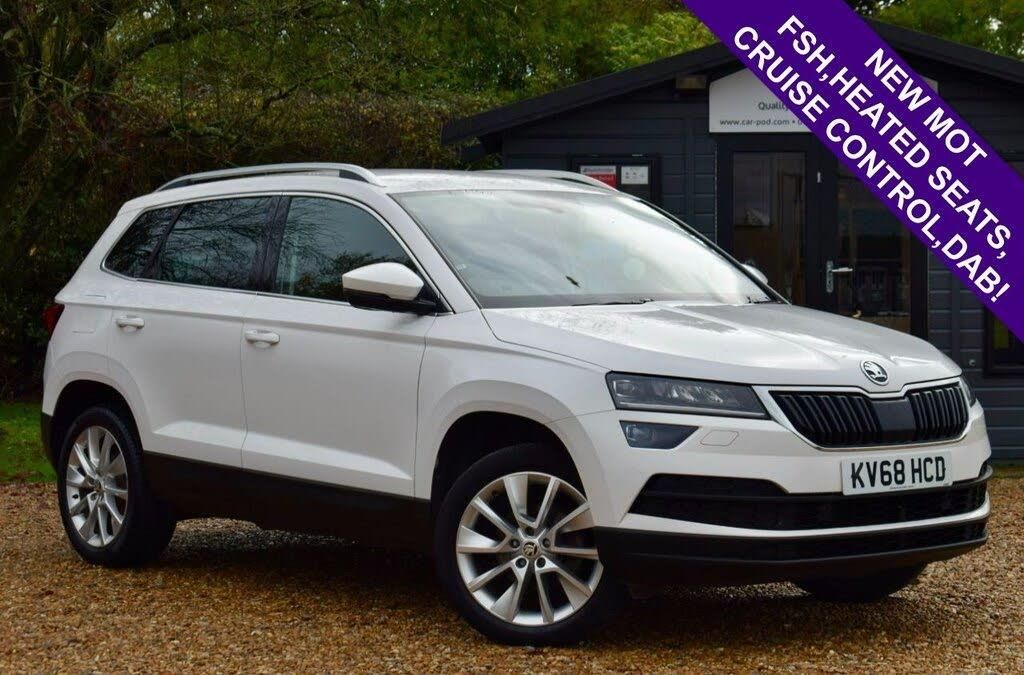 Welcome to Car-Pod and our advert for this white Skoda Karoq 1.5 TSI SE L SUV which joins us with 7 service Records (15k, 37k, 46k, 58k, 60k, 68k, 76k miles ) and a fresh MOT showing No Advisories until 14th November 2026! Loaded with features such as Sat Nav, Front and Rear sensors, Rear Camera, DAB Radio, Cruise Control, Bluetooth, Heated Seats, CarPlay + AndroidAuto and 2 Remote Keys! Call now to book your personal viewing, alternatively scan the QR code for a walk-around video! Highly competitive finance available with £0 deposit, call us for an instant quote. Credit & Debit Cards Accepted. Maximum £250 Credit Card Payment accepted. We deliver nationwide upon request. For more info, photos, video's or to arrange a viewing, please call us on 07703 581764 or visit www.car-pod.com. We are proud winners of the 'Highly Commended' Award for 'Car Retailer Customer Service Excellence', presented to us at the Auto Industry Excellence Awards 2020.