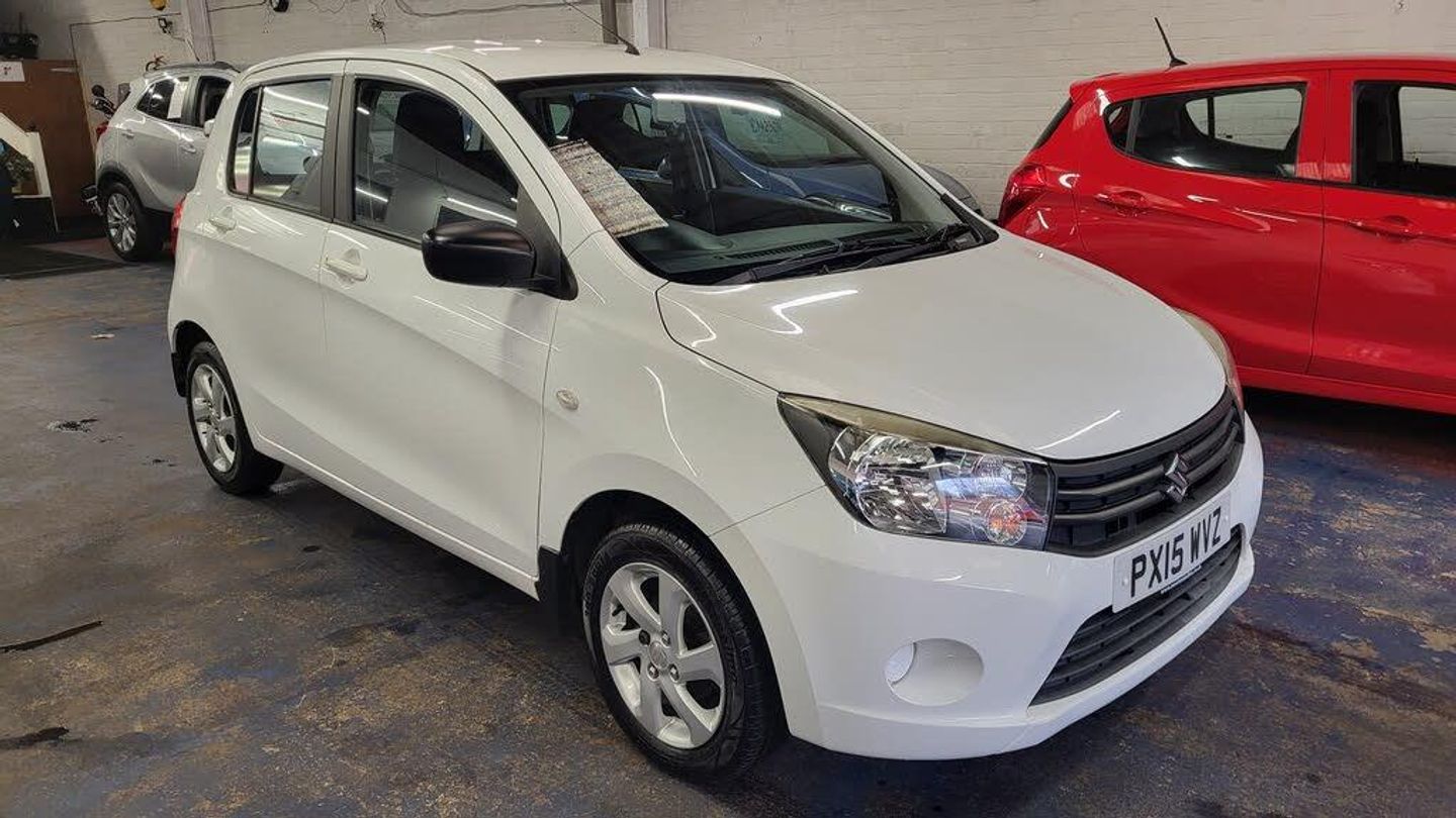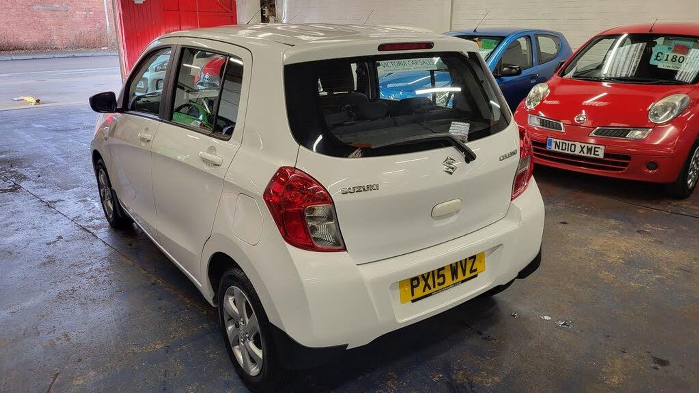 Here I have for sale a LOW Mileage Suzuki Celerio in White, Only 20 Year Tax , Alloy Wheels and Bluetooth FSH with only 56000 miles. Audio and Communications Drivers Assistance Digital Clock Door Ajar Warning Light Fuel Consumption and Range Display Gear Shift Indicator Lights-On and Key-In Reminder Low Fuel Warning Light Outside Temperature Display TPMS - Tyre Pressure Monitoring System Tachometer Exterior 14in Alloy Wheels Body Coloured Exterior Door Handles Electric Front Windows Flat Tyre Repair Kit Front Grille - Black Manually Adjustable Door Mirrors Rear Window Demister White exterior colour Illumination Daytime Running Lights Halogen Multi-Reflector Headlights Headlamp Levelling Switch Interior 2 x Front Cup Holders 3 x Rear Cup Holders Centre Cabin Light Driver Seat Height Adjuster Front Wiper with Adjustable Intermittent Luggage Area Cover Luggage Area Hook Manual Air Conditioning Pollen Filter Rear Seat with 60-40 Split Folding Steering Wheel - Tilt-Adjustable Storage Pockets in Front and Rear Doors Ticket Holder - On Drivers Sun Visor Vanity Mirror - On Drivers Sun Visor Performance Power Steering Safety and Security ABS with EBD and Brake Assist Function Airbag - Driver and Front Passenger Child Seat Tether Anchorages Childproof Rear Door Locks Curtain Airbags Driver and Passengers Seatbelt Warning ESP - Electronic Stability Program Front 3-Point ELR Seatbelts with Pretensioner-Force Limiter ISOFIX Child Seat Anchorages Immobiliser Pedal Release Mechanism Rear 3-Point ELR Seatbelts Rear Wiper Remote Central Door Locking Side Airbags Spec/Performance 0-62mph 13.5 seconds Top speed 96mph Cylinders 3 Valves 12 Engine power 67 BHP Engine torque 89NM Miles per gallon 65.7mpg Size and dimensions Height1,540mm Length3,600mm Width1,600mm Ground clearance 145mm Wheelbase 2,425mm Seats 5 Fuel tank capacity 35L Boot space (seats down) 726L Boot space (seats up)254L Minimum kerb weight 835kg Tax per year 20 CO2 emissions 99g/km . FUEL Urban 55.3mpg Driving around towns and cities Extra urban 76.3mpg Driving in towns and on faster A-roads Average 65.7 mpg Urban and extra urban combined . FOR ANY MORE HELP OR TO RESERVE THIS CAR PLEASE CALL VICTORIA CAR SALES (NUMBER DISPLAYED ON CAR WINDSCREENS) .