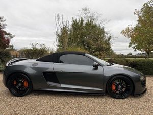 Whytehall have great pleasure in offering this superv high specification AUDI R8 5.2 FSI V10 Spyder 2dr Petrol R Tronic quattro Euro 5 (525 ps) Factory extras include Daytona grey pearl metallic, silver grey alcantara and leather interior package, carbon interior exterior package. Maxton spoilers and side skirts, apple car play, B&O Sound package,6 CD, reverse camera, 19' gloss black alloy wheels, Miltek super cup exhaust system. Dynamic mag ride, full service history with invoices. clutch replacement October 2024 at 47371. Good looking R8. Same day drive away finance. Part exchange welcome, 2 sets of keys. Please click onto our website to build your own finance package and to watch video. Appointment only.
