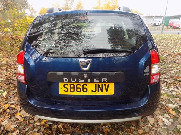 16in Alloy Wheels - Tyrol, 4 x 20W Radio with MP3 CD Player Reader, ABS - Anti-lock Braking System, ASR - Traction Control, AUX Input, Air Recirculation - 4-speed Heating and Ventilation, Air Vents - Chrome Surrounds, Airbags - Driver, Airbags - Front Passenger, Airbags - Front Passenger Deactivation, Airbags - Front Side, Black Number Plate Surround with Satin Chrome Duster Inscription, Bluetooth Connectivity, Boot Light, Bumpers - Front and Rear Lower Section in Black, Bumpers - Front and Rear Upper Section - Body Coloured, Central Locking - Remote, Centre Console Fascia - Matt Black, Centre Console Surround - Piano Black, Centre Differential Lock with Selectable Modes - 2WD - Auto - Lock, Child Locks in Rear Doors, Chrome Front Grille, Cruise Control and Speed Limiter, Decorative Inserts on Front and Rear Door Panels - Piano Black, Door Handles - Body Coloured, Door Mirrors - Grey - Dark Metal, Door Mirrors - Heated and Electrically Adjustable, Door Open - Visual and Audible Warning, Driver and Front Passenger Seat Belt Unfastened - Visual and Audible Warning, EBA - Emergency Brake Assist, EBD - Electronic Brakeforce Distribution, ECO Mode, ESC - Electronic Stability Control, Electric Windows - Front and Rear, Emergency Spare Wheel, Front Door Sill Protection Strip, Front Fog Lights, Front Seatbelt Pretensioners, Front and Rear Passenger Reading Light, Gear Lever Cap Insert - Chrome, Gear Shift Indicator, Glovebox Light, Headlights - Double Optic, Headrests - Rear Height Adjustable x3, Heated Rear Window, Height-Adjustable Drivers Seat, Height-Adjustable Front Headrests, Height-Adjustable Front Seatbelts, Height-Adjustable Steering Wheel, High Level Third Brake Light, ISOFIX Points for Child Seats in Both Outer Rear Seats, Instrument Dial Surrounds - Chrome, Interior Door Handles - Piano Black, Manual Air Conditioning, Map Pockets on Front Seatbacks, Outside Temperature Gauge, Pollen Filter, Power Assisted Steering, Roof Bars - Longitudinal with Duster Inscription - Satin Chrome, Scuff Plates - Front and Rear - Satin Chrome, Seats - 60-40 Split Folding Rear, Side Sills - Satin Chrome, Steering Column Mounted Fingertip Controls, Steering Wheel - Leather, Steering Wheel - Piano Black Lower Insert, Steering Wheel - Satin Chrome Logo Surround, Sunvisor with Vanity Mirror - Passenger, Tailgate Trim with Duster Inscription - Black-Satin Chrome, Thatcham Approved Engine Immobiliser, Tinted Windows, Trip Computer - 7 Function, Tyre Pressure Monitor, USB Connection for MP3 Players, MediaNav 7in Touchscreen Multimedia System