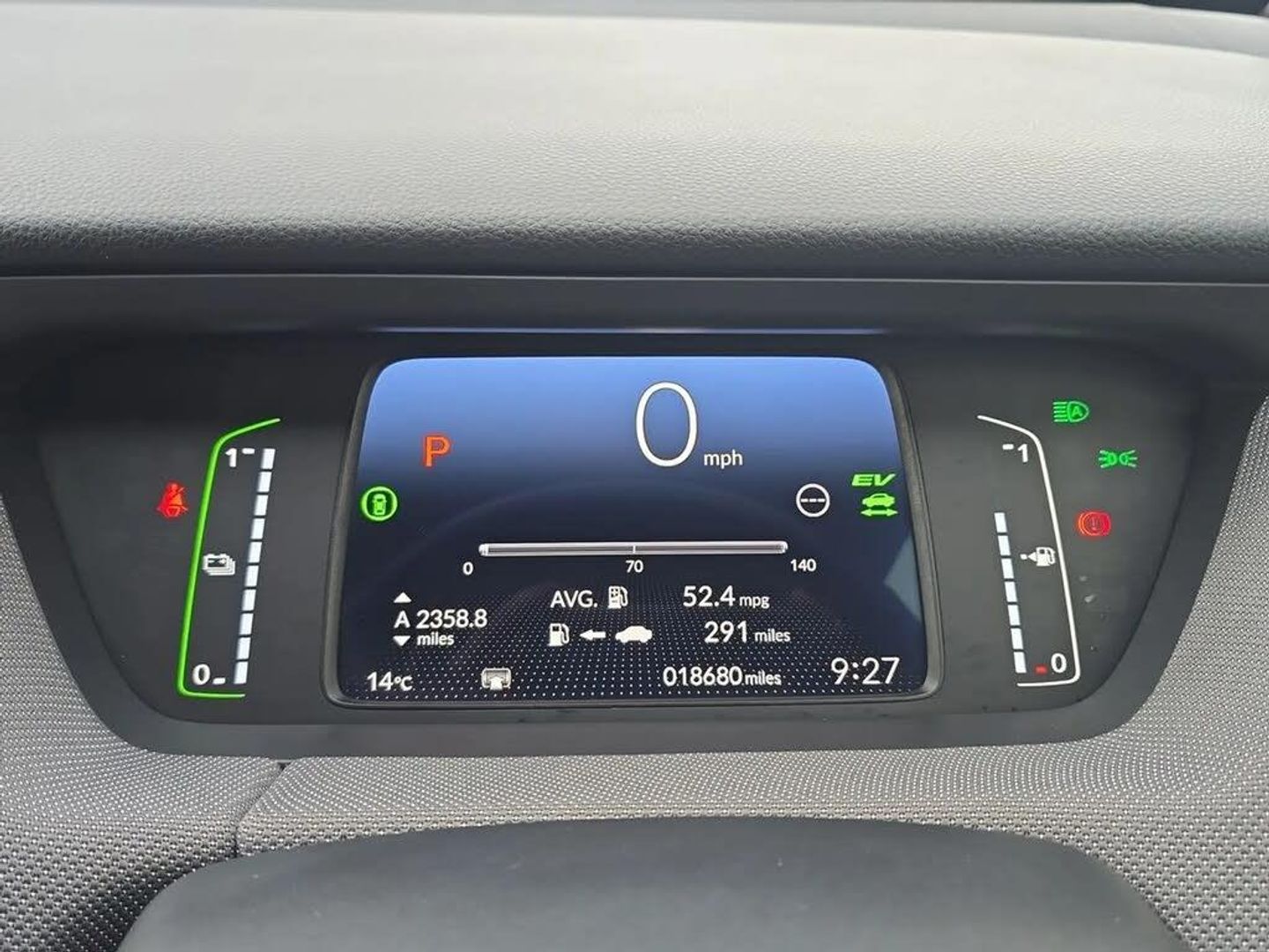 Adaptive cruise control,Adjustable speed limiter,Agile handling assist,Bluetooth hands free telephone connection,eCall emergency call system,Econ mode,Electric power steering wheel with variable gear ratio steering,Emergency stop signalling system,Forward collision warning,Front and rear parking sensors,Honda CONNECT with HERE Navigation + 9" touchscreen, AM/FM/DAB/Apple Carplay and android auto,Idle stop,Intelligent speed limiter,Lane departure warning system,Lane keep assist system,Low speed following,Multi-information display,Rear view camera,Road departure mitigation,Traffic sign recognition,Vehicle stability assist,'Shark fin' mobile antenna,2 USB sockets in rear,2x USB Front socket (1 data & 1 charge),Premium audio with 8 speakers, front tweeter, centre speaker,Remote audio controls on steering wheel,Subwoofer,Aspheric door mirrors,Auto wipers,Automatic headlights with on/off timer, Coming/leaving home function,Body colour door handles,eHEV emblem,Electric adjustable door mirrors,Electrically folding door mirrors,Exclusive styling includes Front and rear bumper, Front fog garnish, Black fender, side sill garnish,Front and rear electric windows,Heated door mirrors,High beam assist,LED daytime running lights,LED front fog lights,LED Headlights,LED rear lights,Privacy glass,Rear side wing doors,Rear wiper,Roof rails,Single exhaust tailpipe,Third brake light,3 seat bench in 2nd row,60/40 split rear bench seat,Cargo net hooks,Climate control air conditioning,Driver and front passenger seat armrests,Driver and passenger front seat pockets,Driver's seat height adjustment,Fabric/Water repellent upholstery,Front accessory power socket,Front head restraints,Front map lights,Front/rear courtesy lights,Heated front seats,Isofix child seat restraint mechanism,Isofix points,Leather gearshift knob,Leather steering wheel,Magic seat flexibility system,Paddle shift controls,Plating interior door handles,Rear head restraints,Rear parcel shelf,Single front passenger seat,Sunvisors with vanity mirrors,Tilt/telescopic adjustable steering wheel,Tonneau cover,Trunk light,3x3 point rear seatbelts,Anti-lock braking system (ABS),Brake assist function,Brake hold function,Child locks on rear doors,Collision mitigation braking system,Deflation warning system,Driver knee airbag,Driver SRS airbag (single stage inflation),Driver/Front Passenger airbags,Electric parking brake,Front and rear side curtain airbag,Front side airbags,Hill start assist,Passenger SRS airbag cut-off device,Rear side airbags,Whiplash lessening front headrests,Front seat belt with emergency locking retractor,Honda super locks,Immobiliser,Mirrors and windows key fob operation,Remote central locking with 2 remote folding keys,Security alarm,Smart entry + Smart start,Soft pad mesh interior panels,16" AL Crosstar alloy wheels in mat berlina black,Tyre repair kit