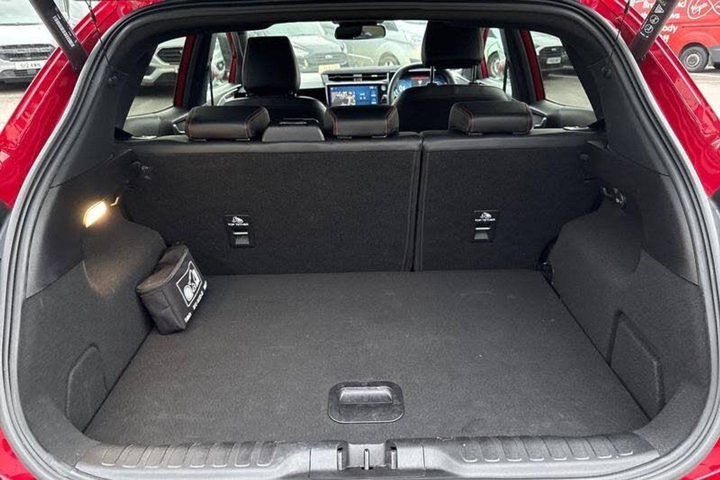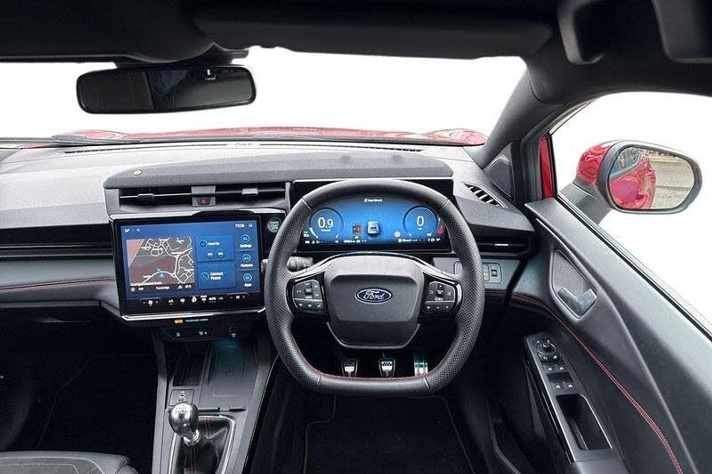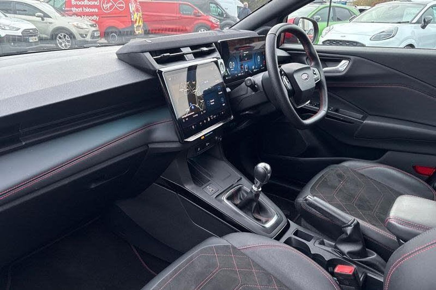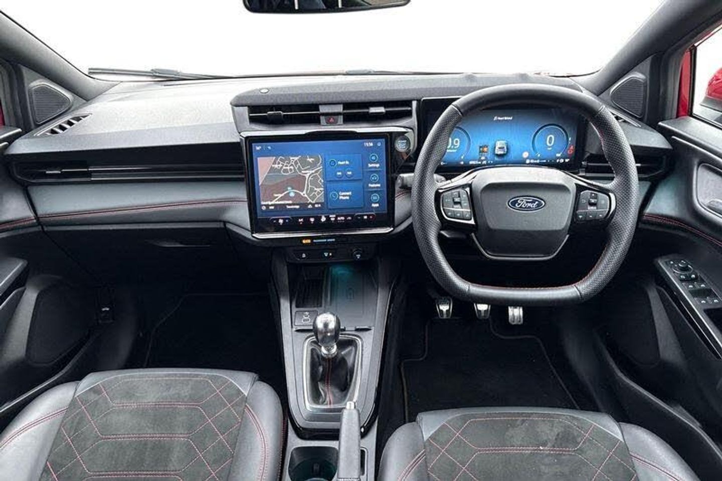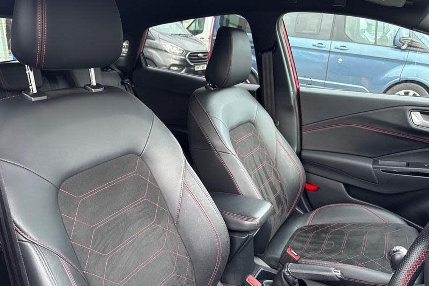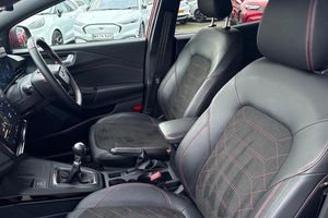 Driver impairment monitor, Emergency call service, Ford easy fuel, Full digital 12.8 instrument cluster, Lane keeping aid with lane departure warning, Power assist steering, Selectable drive modes(Normal, sport, Eco, trail, slippery), Speed sign recognition, Automatic headlights with rain sensing wipers and auto high beam, Front fog lamps, LED daytime running lights, LED rear lamps, LED third brake light, Power foldable heated door mirrors with puddle lamps and puma logo protection, Quickclear heated windscreen, Rear privacy glass, Rear side wing doors, Rear wiper, ST-Line body styling kit with unique grille, 3 seat bench in 2nd row, 4 way lumbar support for passenger seat, Centre console with armrest and stowage, Electronic automatic temperature control (EATC), Ford megabox extended bootspace, Front and rear head restraints, Front floor mats, Manual 4 way driver seat adjust with lumbar adjustment, Single front passenger seat, ST-Line X Premium synthetic leather upholstery, 3 rear seatbelts, Child safety lock, Electronic stability control (ESC) and hill start assist, Pre-collision assist with autonomous emergency braking, pedestrian/cyclist detection & post-collision braking, Tyre pressure monitoring system (TPMS)