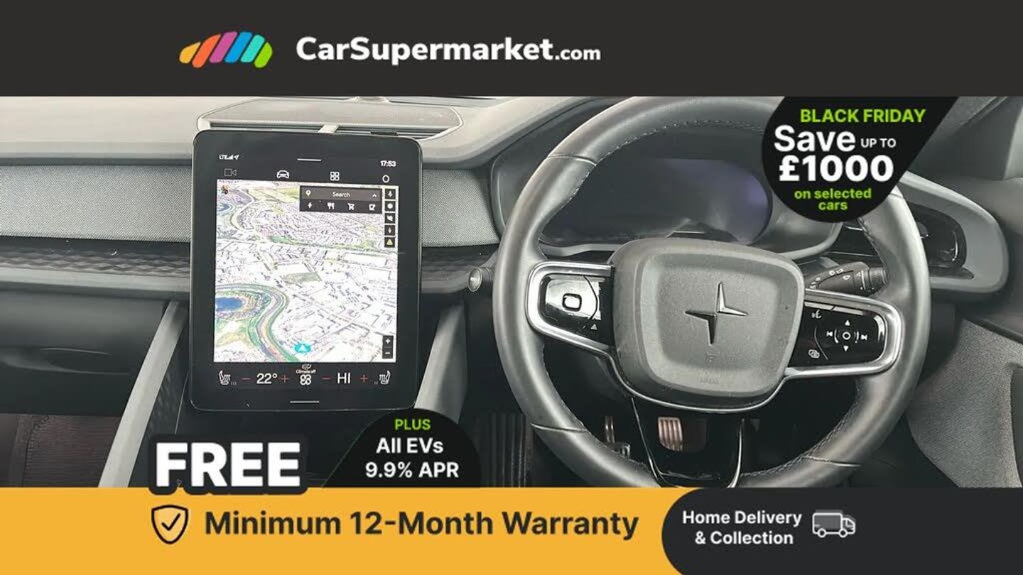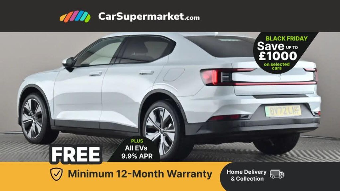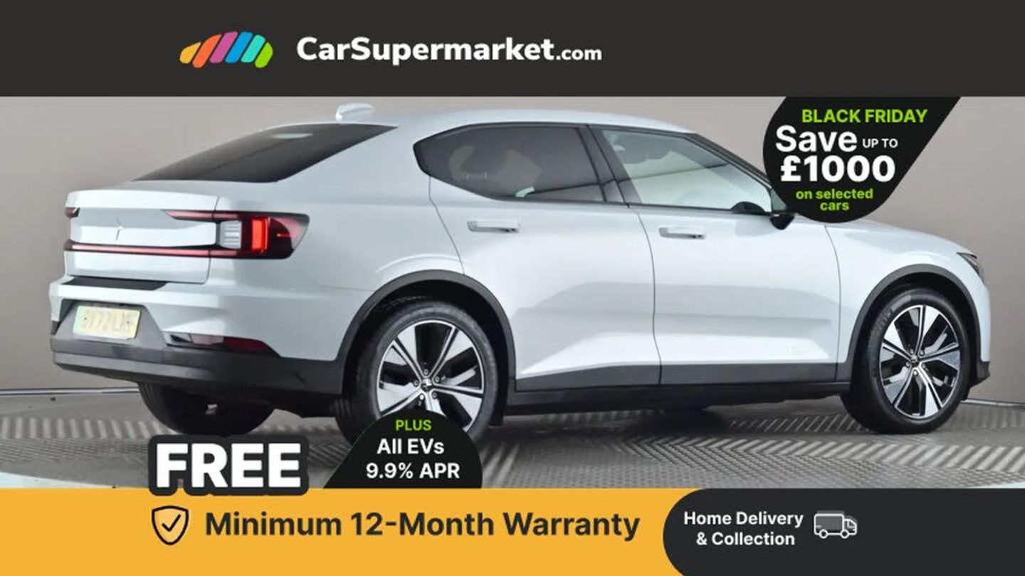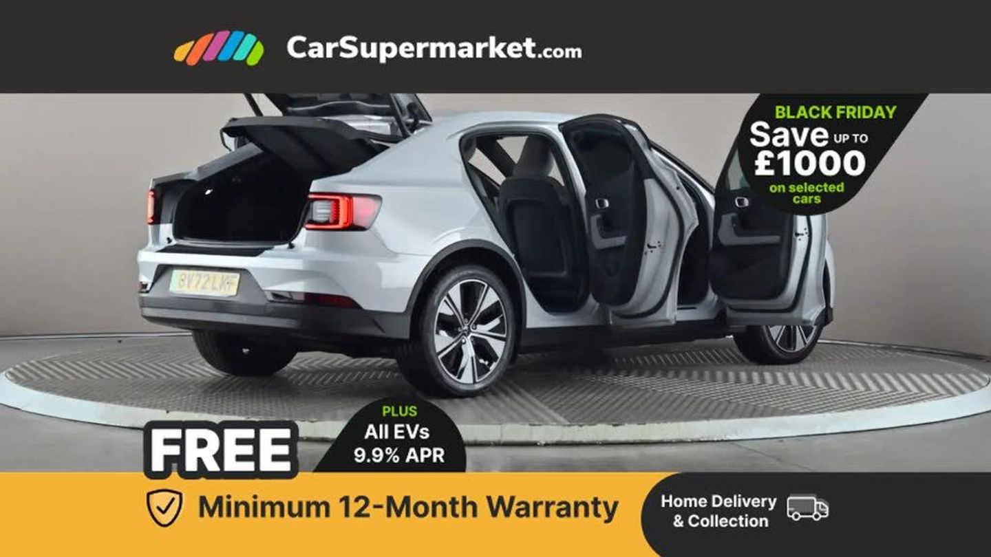 Apple CarPlay, Bluetooth, Cruise Control, Digital Radio, Android Auto, Heated Front Seats, Keyless Entry;This 2022 Polestar 2 Long Range boasts a clear vehicle history and has had only one owner since new, with its MOT valid until September 2026. This electric, four wheel drive saloon offers a substantial 78 kWh battery, providing a maximum range of 301 miles when new. It was last serviced on 4th September 2025 at 37,681 miles. Notable features include adaptive LED headlights, heated front seats for comfort, a rear view camera for easier parking, and keyless entry with handsfree boot lid opening for added convenience.