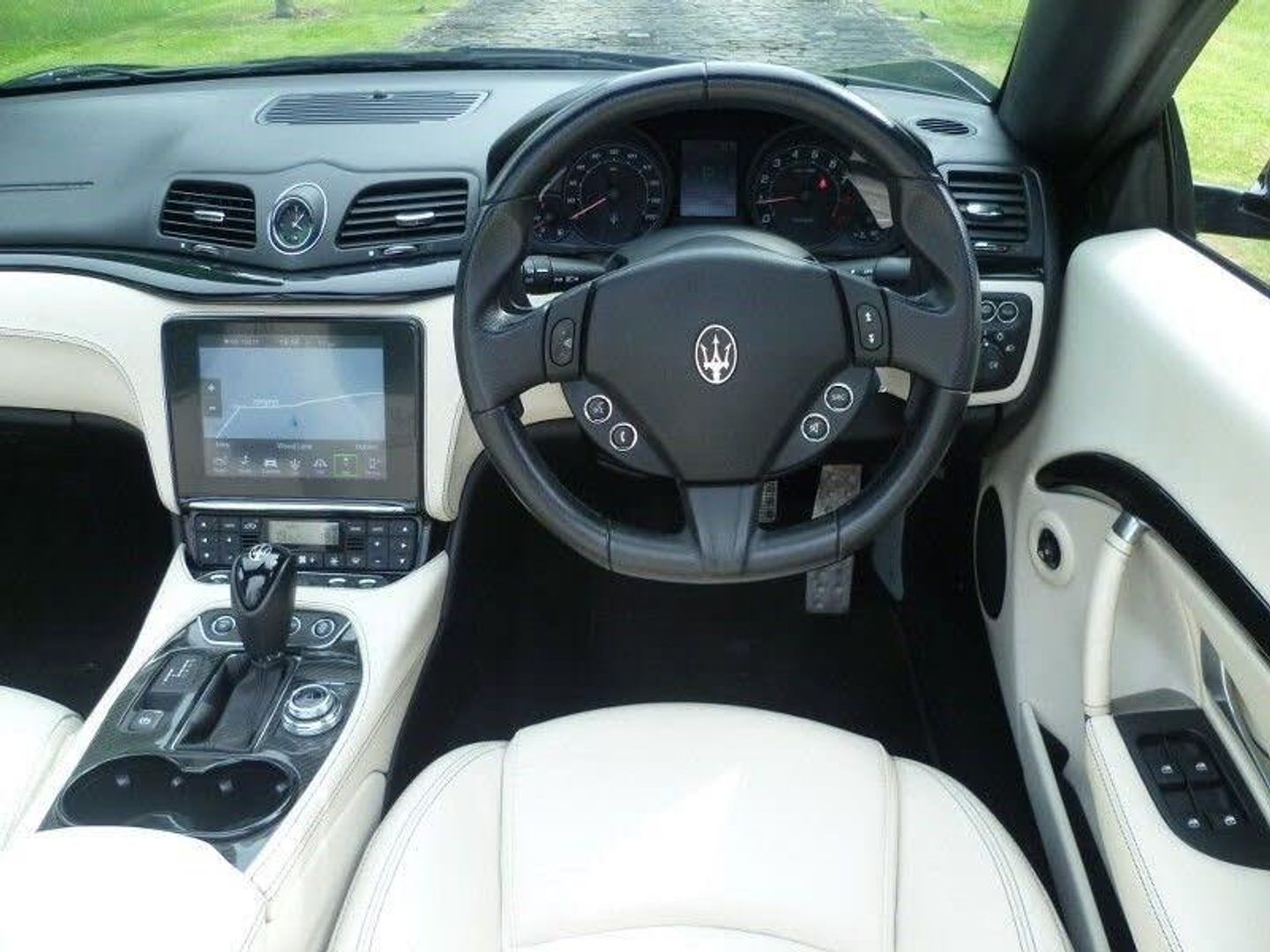 Full White Hide with Contrasting Nero Stitching Maserati Trident Logo Embroidered into Headrests Carbon Fibre Centre Console Multi Function Steering Wheel Cruise Control Voice Command Electric Memory Heated Seats Radio with Aux In, USB & SD Memory Card Slot Harman Kardon Sound Navigation Bluetooth Telephone Electric Folding Wing Mirrors Reversing Camera Front & Rear Parking Distance Control Yellow Brake Calipers 20" Matt Black Alloy Wheels Full Service History