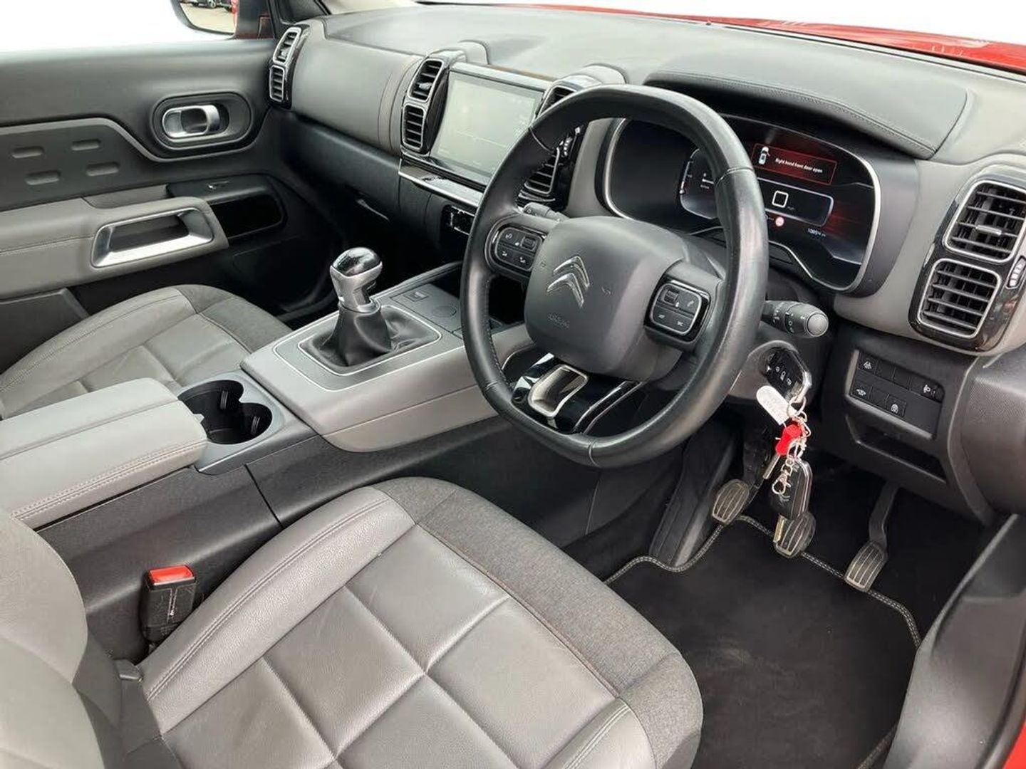 12.3" customisable TFT instrument display,Active blind spot monitoring system,Active lane departure warning system,Bluetooth telephone facility,Central 8" capacitive touch screen,Citroen connect box emergency assist system,Citroen connect Nav with connect box,Coffee Break Alert,Eco+ mode,Electric power steering,Exterior temperature indicator with ice warning,Gear efficiency indicator,Mirror screen with Apple CarPlay and Android auto,Multi function trip computer,Programmable cruise control and speed limiter,Rear parking sensors,Speed limit recognition and recommendation,Traffic sign recognition and recommendation,Suspension with Progressive Hydraulic Cushions,2 USB sockets,Auxiliary input socket,DAB (Digital Audio Broadcasting), AM/FM and MP3 compatible radio with two tweeters and four speakers,Voice recognition for radio, navigation and telephony features,3D effect LED rear lights,Acoustic laminated windscreen with rain and brightness sensors,Airbump panels with colour insert on lower portion of the doors,Auto dimming electrochrome rear view mirror,Automatic hazard light activation upon heavy brake application,Automatic headlight activation via windscreen mounted sensors,Automatic triggered rear windscreen wiper in reverse gear,Automatic windscreen wipers,Body colour door handles,C5 Aircross monogram on boot rear,Citroen logo and monogram on rear,Dark tinted rear windows and rear windscreen,Electric, heated and folding door mirrors with integrated LED indicator and kerb puddle light,Front fog lights with cornering function,Front windscreen wiper with magic wash cleaning system,Gloss black finish on A and B pillar and aerodynamic trim,Guide me home headlight function,Halogen headlights,Halogen rear fog lights,Halogen rear number plate lights,Headlights left on audible warning,Heated rear windscreen with integrated antenna,High level LED centre brake light,LED daytime running lights,LED front indicators,Longitudinal roof bars,Matte black lower rear skirt,Matte black rear bumper facia,Matte black side sill with anodised silver colour touch,Matte black upper and lower grille,Matte black wheel arch extensions,One touch electric front/rear windows with pinch protection,Painted front bumper,Painted rear bumper,Roof coloured rear spoiler,Satin chrome C signature,Satin chrome window surround,Twin exhaust effect trim,12V socket in boot,12V socket in cabin,2 cup holders in the front and rear centre console,2 Position boot floor,2 way lumbar adjustment for driver,2x Rear coat hooks,3 Independent full size rear seats with adjustable recline angle,3x Grab handles retractable with damping,Advanced comfort front and rear seats,Air recirculation when reverse gear is engaged,Anti odour and pollen filter,Central front armrest with butterfly wing opening and illuminated storage compartment,Dashboard closed glove box with lid and illumination,Dimmable white mood lighting,Dual zone automatic climate control,Fixing rings 4 in load compartment,Front and rear LED welcome/LED rear reading lights,Front door pockets store up to 1.5L bottle and A4 note pad,Front interior light with 2 reading spotlights and rear interior light with timer,Front seat back map pockets,Height and reach adjustable leather steering wheel with 2 control zones,Hinged rear parcel shelf,Isofix child seat preparation for front passenger seat,Leather effect interior door handles,Leather steering wheel with satin chrome inserts and radio controls,Manual driver seat adjustment (height, fore/aft and backrest angle),Manual passenger seat adjustment (height, fore/aft and backrest angle),Multi function steering wheel,Open central storage area below touch screen,Open central storage compartment,Rear centre console ventilation system,Rear door pockets store up to 0.5L bottle,Rear passenger air vents,Satin chrome digital instrument panel and touchscreen trim,Satin chrome gear lever,Satin chrome interior door handles,Seatbelt not fastened audible and visual alert for front seats,Seatbelt unfastened on the move audible and visual alert for front and rear seats,Smooth opening flocked glove box with lighting,City camera pack with front parking sensors - C5 Aircross,Safety plus pack - C5 Aircross,2x Isofix child seat fitting on outer rear seats,3x Rear three point retractable seatbelts with pretensioners and force limiters in the outer rear seats,ABS/EBD,Adaptive driver and front passenger airbags with passenger airbag deactivation function,Collision risk alert,Driver and front passenger side airbags,DSC (Dynamic Stability Control) and ASR (Electronic Anti-skid System),Electric child locking functionality on rear windows and doors,Electronic parking brake,ESP including traction control and stability programme,Front and rear curtain airbags,Front optimised safety headrests and 3 x rear retractable headrests with height adjustable,Front three point retractable seatbelts height adjustable with pre tensioners and force limiters