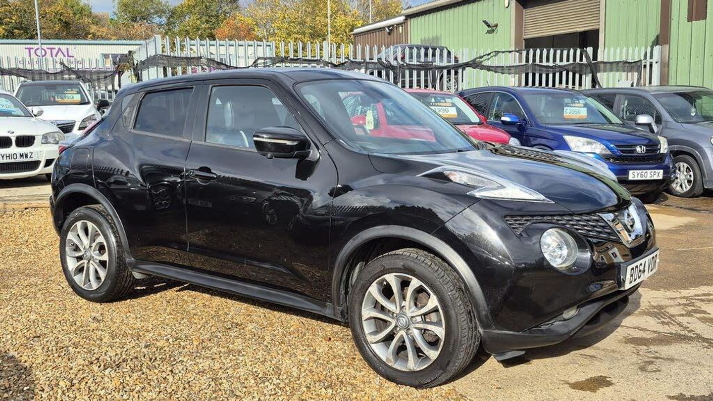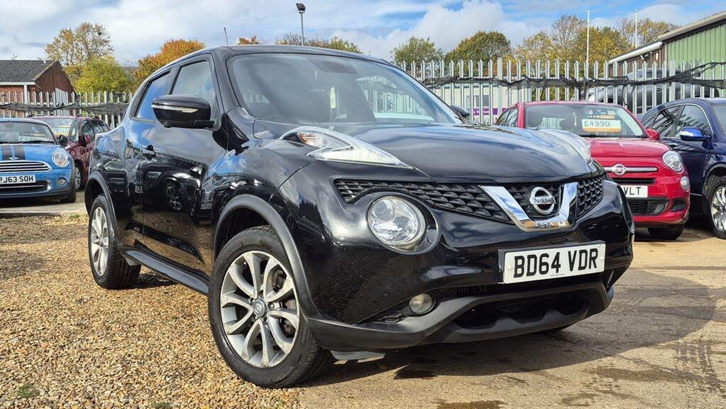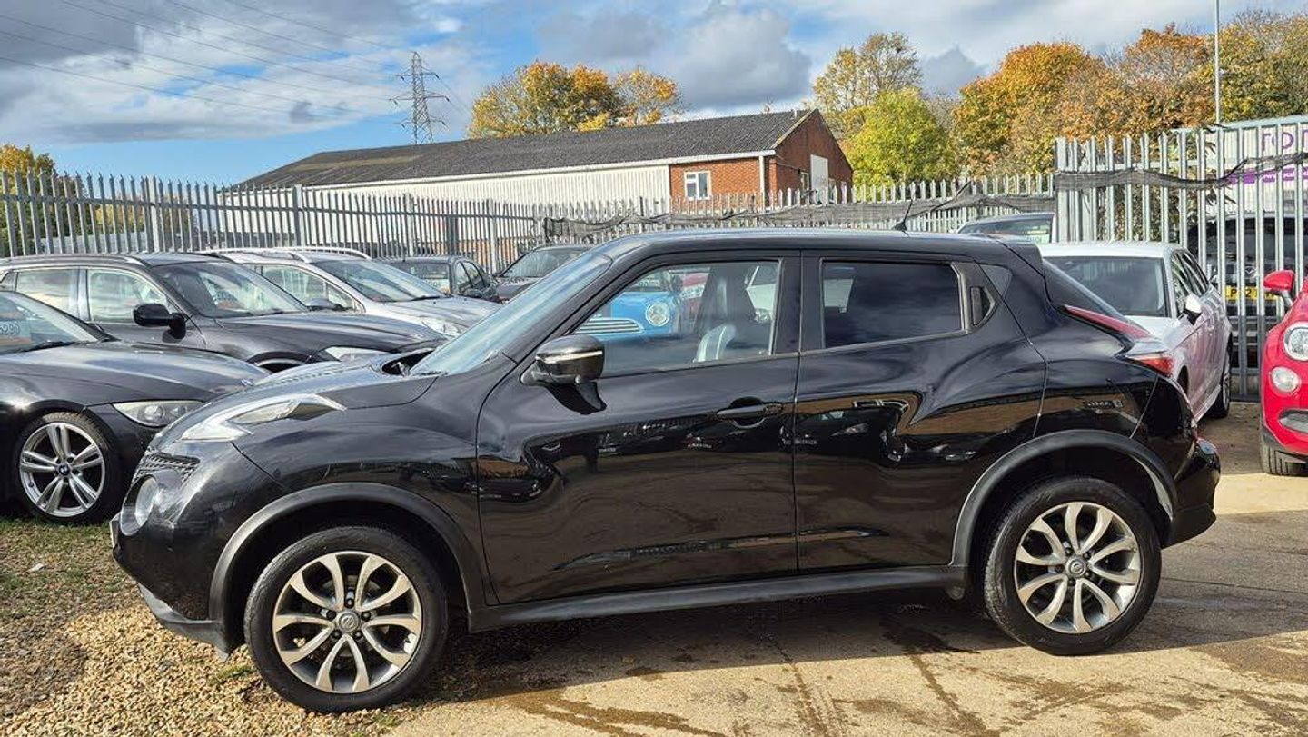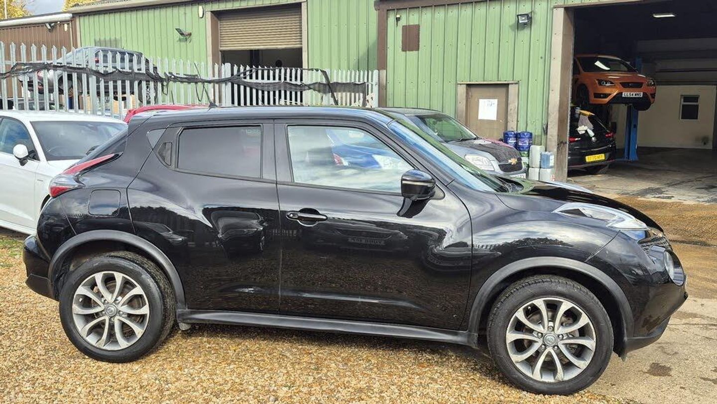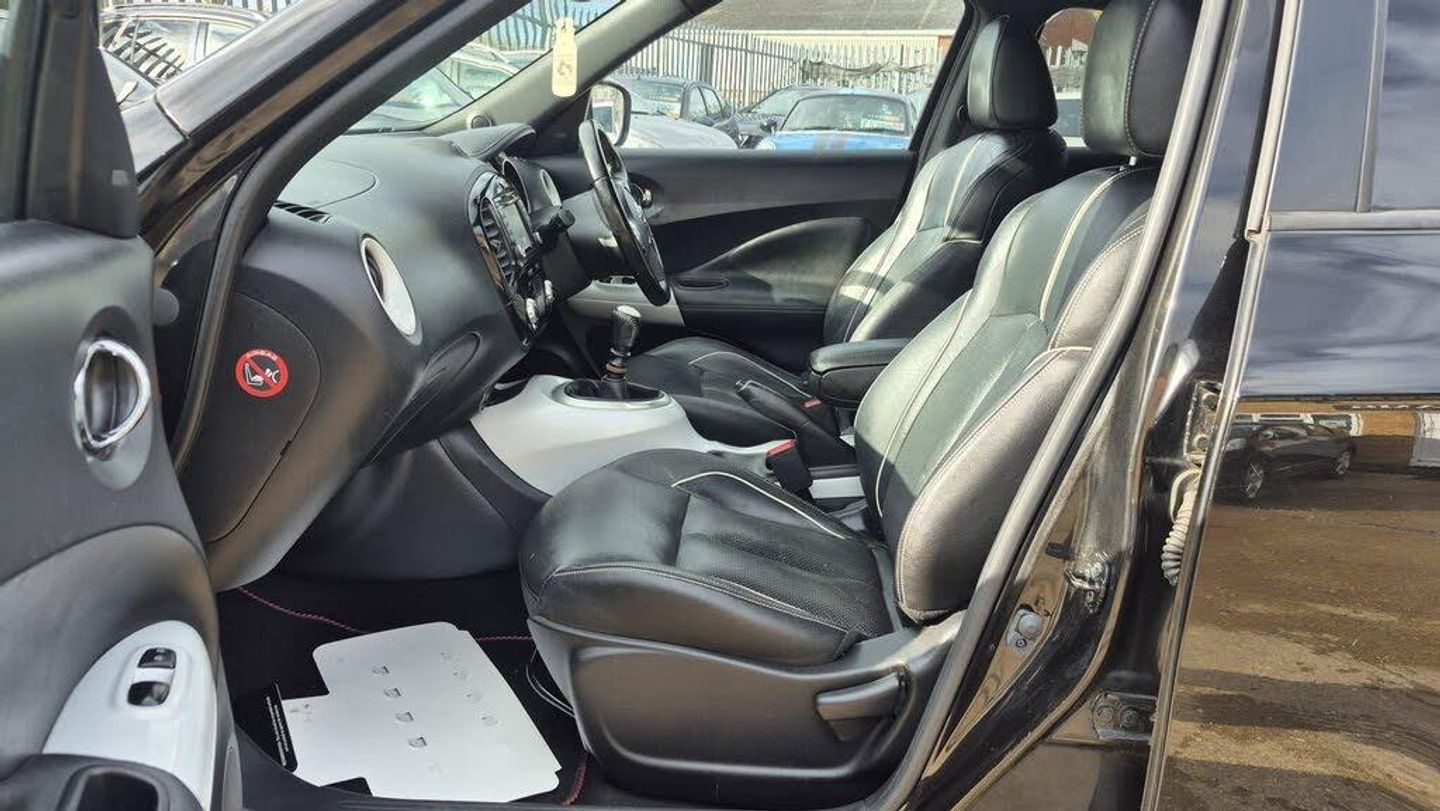 HERE AT AMG MOTOR VEHICLES WE HAVE THIS NICE LOOKING NISSAN JUKE 1.2 DIG T- TEKNA,COMES WITH NISSAN MAIN DEALER SERVICE HISTORY,HAS HAD NEW CHAIN REPLACED 34000 MILES AT NISSAN MAIN DEALERS, FULL BLACK LEATHER HEATED SEATS,KEY-LESS ENTRY AND START,3 DIFFERENT DRIVE MODES,CLIMATE CONTROL,LANE DEPTURE,REVERCE CAMERA ,AND MUCH MORE,PLEASE SEE SPEC LISTED,ALL AMG MOTOR VEHICLES COME WITH 6 MONTHS WARRANTY THAT IS COVERED NATIONWIDE,WEAR AND TEAR COVER TO 125K PLUS,BREAK DOWN,RECOVERY,HOME START,AND EVEN YOUR CAR BATTERY IS COVERED FOR 6 MONTHS..-NISSAN HISTORY+HTD LEATHER+NAV