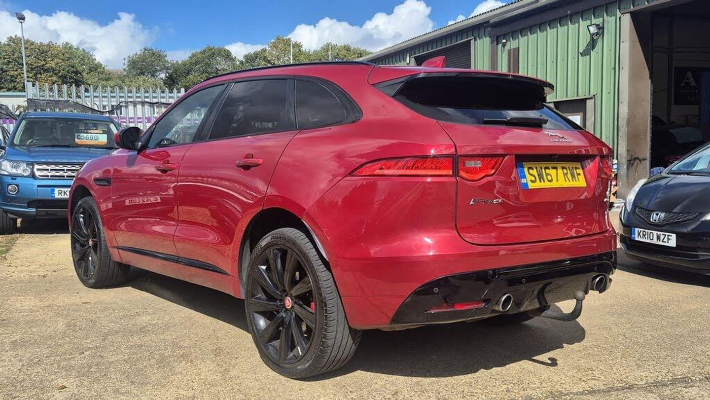 12V Power Socket - Front, 12V Power Socket - Rear - Luggage Compartment, 12V Power Socket - Row Two, 2-Zone Climate Control, 20in Alloy Wheels - Blade 5-Spoke - Grey Diamond Turned Finsih, 3 Month Trial Data Plan, 3-Flash Lane Change Indicators, 350mm Brakes with Red Brake Calipers, 380 Watts, 40-20-40 Split Fold Rear Seat, ABS - Anti-locking Braking System, AEB - Autonomous Emergency Braking, AM-FM Radio, ASPC - All Surface Progress Control, Adaptive Dynamics with Configurable Dynamic Mode, Airbags - Driver, Airbags - Front Side, Airbags - Full Length Side Curtain, Airbags - Passenger, Analogue Dials with 5in Full Colour TFT Display, Approach Illumination - Automatic via Remote, Auto-Dimming Interior Rear View Mirror, Automatic Headlight On, Aux-In - 3.5mm, Bluetooth Audio Streaming, Bluetooth Telephone Connectivity, Body Coloured S Door Claddings with Satin Chrome Finishers, Bootlid - Badging - S AWD, Bootlid Jaguar Leaper and Wordmarque, Bootlid Nameplate Badge, Brake Pad Wear Indicator, Bright Metallic Sports Pedals, Bumper Outer Grille Bezel - Satin Chrome, Bumper Outer Grille Mesh - Grained Black, Capacitive Touchscreen, Carpet Mats - Premium - Jet, Centre Console - Side Stowage, Centre Console - Storage Surround Finishers - Satin Chrome, Centre Lower Valence - Satin Silver, Configurable Dynamics, Cruise Control with Adaptive Speed Limiter, DAB Radio + and DMB, Dark Hex Aluminium Instrument Panel Finisher, Daytime Running Lights - LED, Diffuser - Satin Silver, Door Mirrors - Body Coloured, Door Mirrors - Power Folding with Auto-dimming-Signature Approach Lamps and Blacked Side Repeaters, Door Trim - Luxtec, Dual Tailpipes with 84mm Finishers, Dynamic Route Guidance, Dynamic Stability Control - DSC, Dynamic Volume Control, EBA - Emergency Brake Assist, ECO Data, EPB - Electric Parking Brake, Electric Windows - Front and Rear with One-Touch Open-Close and Anti-Trap, Fold Flat 6 Degrees - Row 2 Seats, Follow Me Home Lighting, Front Armrest with Storage Compartment, Front Fog Lights, Front Grille Badge - S, Front Headrests - S Branded Embossing, Front Parking Aid, Gloss Black Rear Valance, Glove Compartment Lockable, Glovebox Finisher with Jaguar Wordmark, Hazard Lights Under Heavy Braking, Head Restraint - Rear Centre, Headlight Power Wash, Headlights - Self Leveling, Headlights - Xenon, Headlining - Morzine - Jet, Headrest - Manual Adjustable, Heat Insulating Glass - Green All-round, Heated Front Seats, Heated Front Windscreen, Heated Washer Jets, Hill Launch Assist, ISOFIX Rear, InControl - Remote Esstentials, InControl Apps, InControl Protect, InControl Remote Premium, InControl Touch Navigation - SD, InControl WiFi, Instrument Panel Topper - Cuir Grain Wrapped, Instrument Panel Upper Fascia - Jet, Interior Front Door Handles with Separate Locking Switches, Interior Mood Lighting, Jaguar Performance Braking System, Jaguar Sequential Shift, Jaguar Smart Key System with Keyless Entry, Jaguar Smart Key System with Keyless Start, Jaguar Tyre Repair System, JaguarDrive Control with Dynamic - Normal - ECO and Winter, JaguarSense - Overhead Light Console, JaguarVoice, LED Tail Lights, Lane Departure Warning, Loadbay - Premium Luggage Tie Downs, Meridian Sound System - 380W, Meshed Aluminium Trim Finisher, Metal Treadplates with S Branding, Optimised Assistance Call, Outside Temperature Gauge, Passive Front Head Restraints - Whiplash Protection, Perimeter Alarm, Power Operated Child Locks, Power Steering - Speed Sensitive, Powered Tailgate, Radiator Grille - Gloss Black Insert with Satin Chrome Surround, Rain Sensing Windscreen Wipers, Rear Armrest with Cupholder, Rear Bumpers with Corners - Body Coloured - S, Rear Cup Holders in Armrest, Rear Parking Aid, Rear View Camera, Red Brake Calipers, Reversible Boot Floor - Carpet-Rubber, Roof Rails - Gloss Black, Row 2 Air Vents, S Front Bumper, SOS Emergency Call with Automatic Collision Detection, Satin Chrome Frame - Touchscreen, Seat - Cushion Height - Electric, Seat - Cushion Til