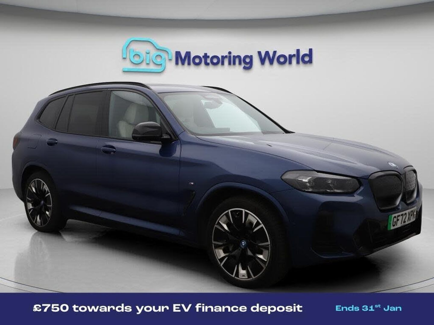 £750 towards your finance depo-Our BMW iX3 is finished in Blue. Specification includes a range of fantastic features including £750 towards your finance deposit, Sun Protection Pack, Head up Display, 20'' Alloy Wheels, Leather Seats, Apple CarPlay, Adaptive Cruise Control, Electric Seats, Harman Kardon Speakers, Electric Panoramic Roof Specification information is supplied by CAPHPI and may vary to the actual car. This data does not form any part of a buying contact. Please check specification prior to purchase in-store. The MOT is valid until November 2026, visit bigmotoringworld.co.uk for more photos, a 360 tour, service history and a free HPI report.Were BIG on peace of mind and this Blue BMW iX3 has completed our comprehensive 200 point inspection and passed all checks. Its ready for you to drive away with immediate collection in-store. We include a 90-day warranty as standard plus an option to extend for up to 3 years.Reserve this car exclusively for you, safely and securely at bigmotoringworld.co.uk, with a fully refundable £99 deposit. Test drive before you buy, with no commitment, no hassle and a completely haggle free experience. Still searching and want to see thousands more cars? We are BIG on choice with over 8000 cars to choose from.Visit our award winning web site bigmotoringworld.co.uk.Were Big Motoring World and were BIG on what matters to you.