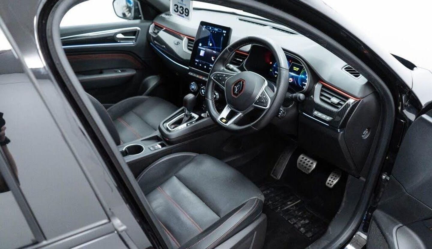 18in Alloy Wheels - Silverstone Diamond with Red Inserts, 7in TFT Driver Information Display, ABS with EBA - Emergency Brake Assist, Active Emergency Braking System - AEBS, Adaptive Cruise Control with Speed Limiter, Airbags - Deactivation - Front and Side - Driver and Passenger, Anti Drill Door Locks and Locking Fuel Cap, Auto Dimming Rear View Mirror, Automatic Climate Control with Combined Filter - Humidity Sensor - Air Quality Sensor, Automatic Headlights, Automatic Windscreen Wipers with Rain Sensors, B Brake Mode - One-Pedal Driving with Increased Regenerative Braking, Black, Black Interior Roof Lining, Black Side Door Protection with Gun Metal Insert, Blind Spot Warning, Bluetooth - DAB Radio and USB Ports, C-Shaped LED Front Signature Lighting, Carbon Style Soft Touch Dashboard, Central Console with Storage, Central Door Locking, Chrome Decopart on Wing - Fender Molding - with RS Line Badge, Deadlocking, Distance Warning Alert, Door Mirrors - Electrically Adjustable and Foldable with Defrosting and Temperature Sensor, Double Chromed Exhaust Tailpipes Elements, Driver and Passenger Front - Side - Head and Curtain Airbags, Driver Seat Belt Height Adjustable, Easy Link 9.3in Portrait Touchscreen with Navigation - Google Search - Traffic Information, EBD - Electronic Brake Distribution, ECO Mode Function, Electric Windows - Front and Rear, Electronic Parking Brake with Auto-Hold Function, ESC - Electronic Stability Control, EV Button to activate PURE mode -100% Electric Drive, Extra Tinted Windows - Rear and Tailgate, Frameless Rear-View Mirror, Front and Rear No Seatbelt Warning Sound, Front Bumper with F1 Blade and Honeycomb Front Grille, Front Driver Window with One Touch Facility and Anti-Pinch Function, Front Grille with Chrome on Upper Part, Full LED Headlights, Gear Change Indicator, Gun Metal Front and Rear Skid Plates, Hands Free Parking, Handsfree Keycard - Keyless Access and Start, Headlights - Automatic High-Low Beam, Heated Steering Wheel, HSA - Hill Start Assist, ISOFIX Child Seat Fixing Points on Rear Outermost Seats, LDW - Lane Departure Warning, LED Front and Rear Rooflights, LKA - Lane Keep Assist, MULTI-SENSE - 3 Driving Modes and 8 Ambient Lighting, Parking Pack, Parking Sensors - Front and Rear, Pedals - Aluminium, RAID - Renault Anti Intruder Device - Automatic Door Locking, Rear Air Vents, Rear Door and Window Child Locking Function - Front Driver Door Control Panel for Rear Door, Rear Seats - 60-40 Split and Fixed Base, Rear Wiper, Rear-Cross Traffic Alert, Rear-View Camera, Renault Automatic Emergency Assist, RS Line Suede-Leather - Black with Red-Grey Stitching, Seats - Drivers Height Adjustment, Seats - Passenger Height Adjustment, Shiny Black Shark Fin Antenna, Smartphone Integration with Apple CarPlay and Android Auto, Steering Wheel - Height and Reach Adjustable, Steering Wheel - RS Line Perforated Leather with Red-Black Harmony and RS Line Badge, Traffic Sign Recognition with Overspeed Prevention, Trip Computer, Tyre Inflation Kit, Tyre Pressure Warning Light, Variable Power Assisted Steering - Electrical, Winter Pack, Wireless Charging for Smartphone