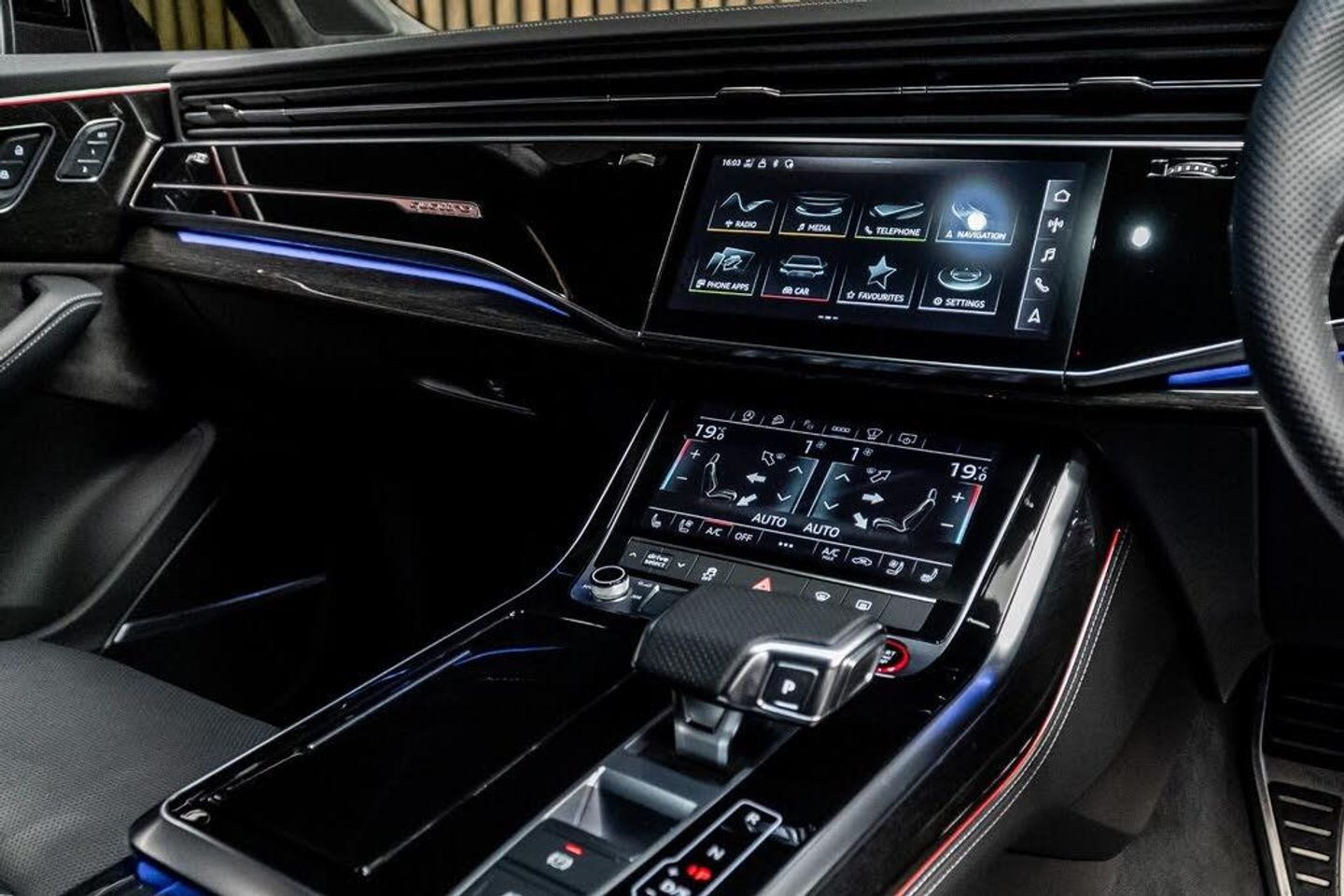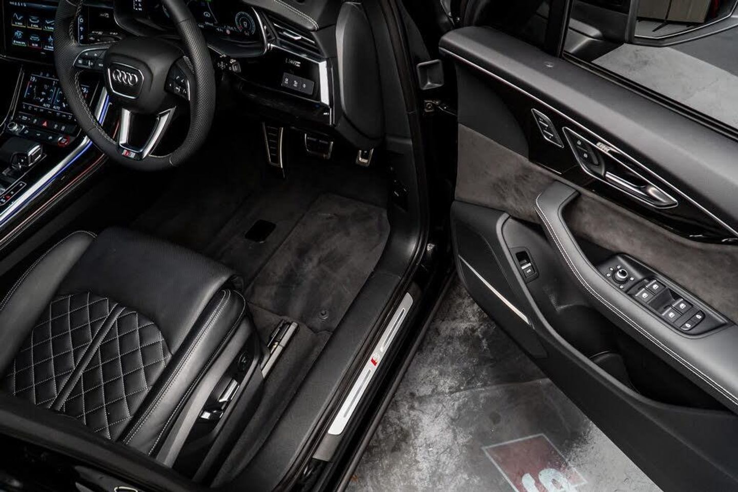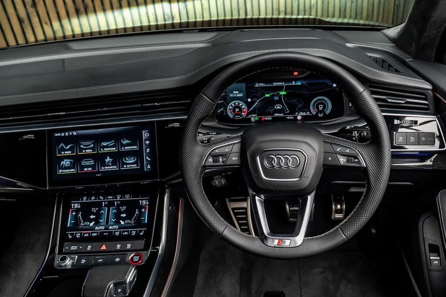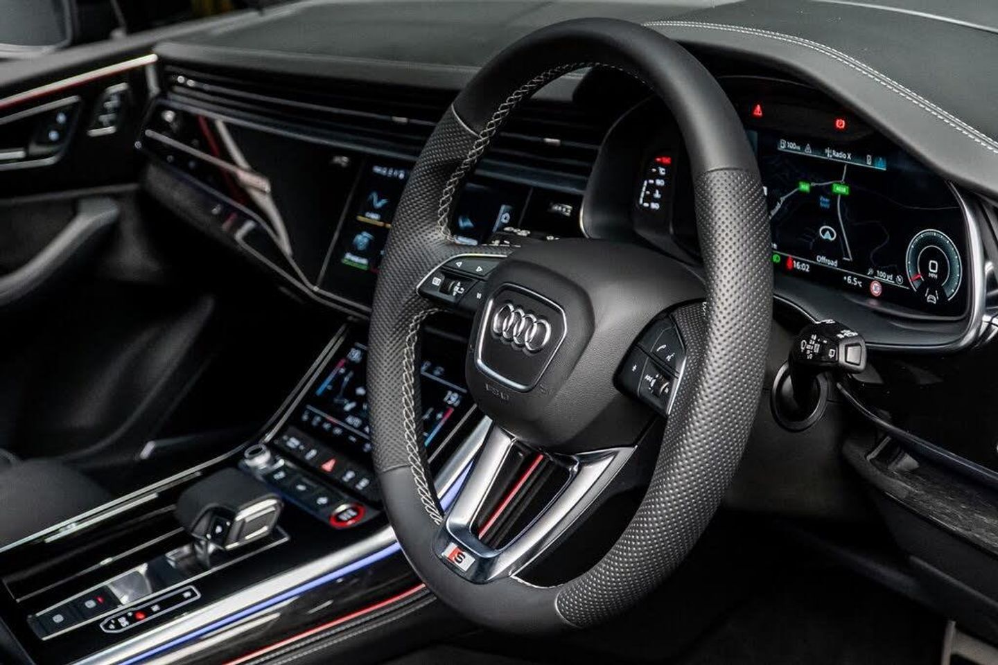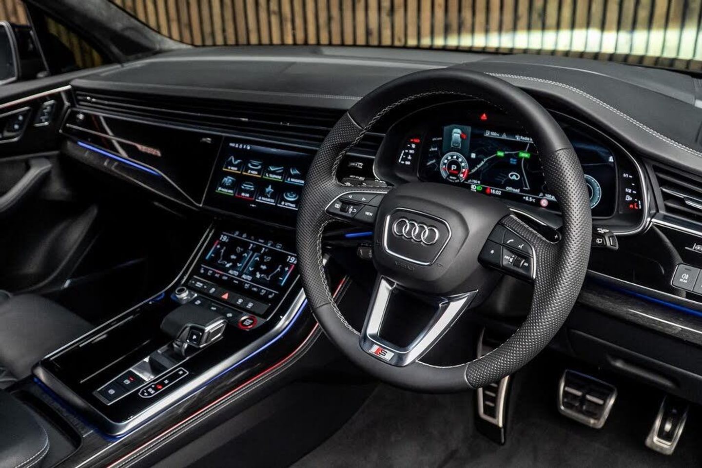 22in Alloy Wheels - 10.0J 5-V-Spoke - Star Design - Aluminium in Matt Titanium with Gloss Turned Finish - Audi Sport, 7 Seats, AMI - Audi Music Interface, Airbags - Driver - Front Passenger - Front Side - Curtain, All-Wheel Steering, Anti-Theft Alarm, Anti-Theft Wheel Bolts and Wheel Loosening Warning, Audi Beam, Audi Connect (3 Year Subscription From New), Audi Connect Safety and Service - e-call, Audi Drive Select, Audi HD Matrix LED Headlights with Audi Laser Light and Dynamic Front and Rear Indicators, Audi Hill Hold Assist, Audi Music Interface in the Rear, Audi Parking System Plus, Audi Phone Box with Wireless Charging, Audi Pre-Sense Front, Audi Smartphone Interface, Audi Virtual Cockpit, Auto Dimming and Frameless Rear View Mirror, Black Roof Rails, Camera-Based Traffic Sign Recognition, City Assist Pack, Comfort Front Centre Armrest, Comfort and Sound Package, DAB Digital Radio, Deluxe Four-Zone Automatic Climate Control, Door Mirrors - Heated - Electrically Adjustable - Folding and Auto Dimming with Memory Function, ESC - Electronic Stabilisation Control inc ABS - ASR and EDL, Electric Windows - Front and Rear, Electrically Adjustable Steering Column, Electromechanical Parking Brake, Electromechanical Power Steering, Extended Pedestrian Protection Measures, First Aid Kit and Warning Triangle, Front and Rear Floor Mats, Fuel Tank 85L, Head-Up Display, Headlight Washers, Heated Front and Outer Rear Seats for The Second Row, Illuminated Door Sill Trims with S Logo, Inlays - Polished Oak with Grey Finish, Keyless Go with Remote Central Locking, LED Daytime Running Lights, LED Rear Lights, Luggage Compartment Sill Protection in Stainless Steel, MMI Navigation Plus with MMI Touch, Natural Voice Recognition, Panoramic Glass Sunroof, Pedals in Stainless Steel, Power Door Closure, Power Operated Tailgate, Privacy Glass, S Front and Rear Bumpers, S Line Roof Spoiler, S Specific Adaptive Air Sport Suspension, S Specific Rear Bumper with 4 Exhaust Pipes, Seat Belt Monitoring, Seat Ventilation and Massage Function for Front Seats, Steering Wheel - 3-Spoke Leather-Multi-Function-Heated-Sports-Shift Paddles, Titanium Black Door Mirrors, Titanium Black Styling Pack, Tool Kit, Tour Pack, Tyre Pressure Loss Indicator, Tyre Repair Kit, Windshield with Heat Insulated Glass, Red Painted Brake Calipers with S Logo, Rear Entertainment