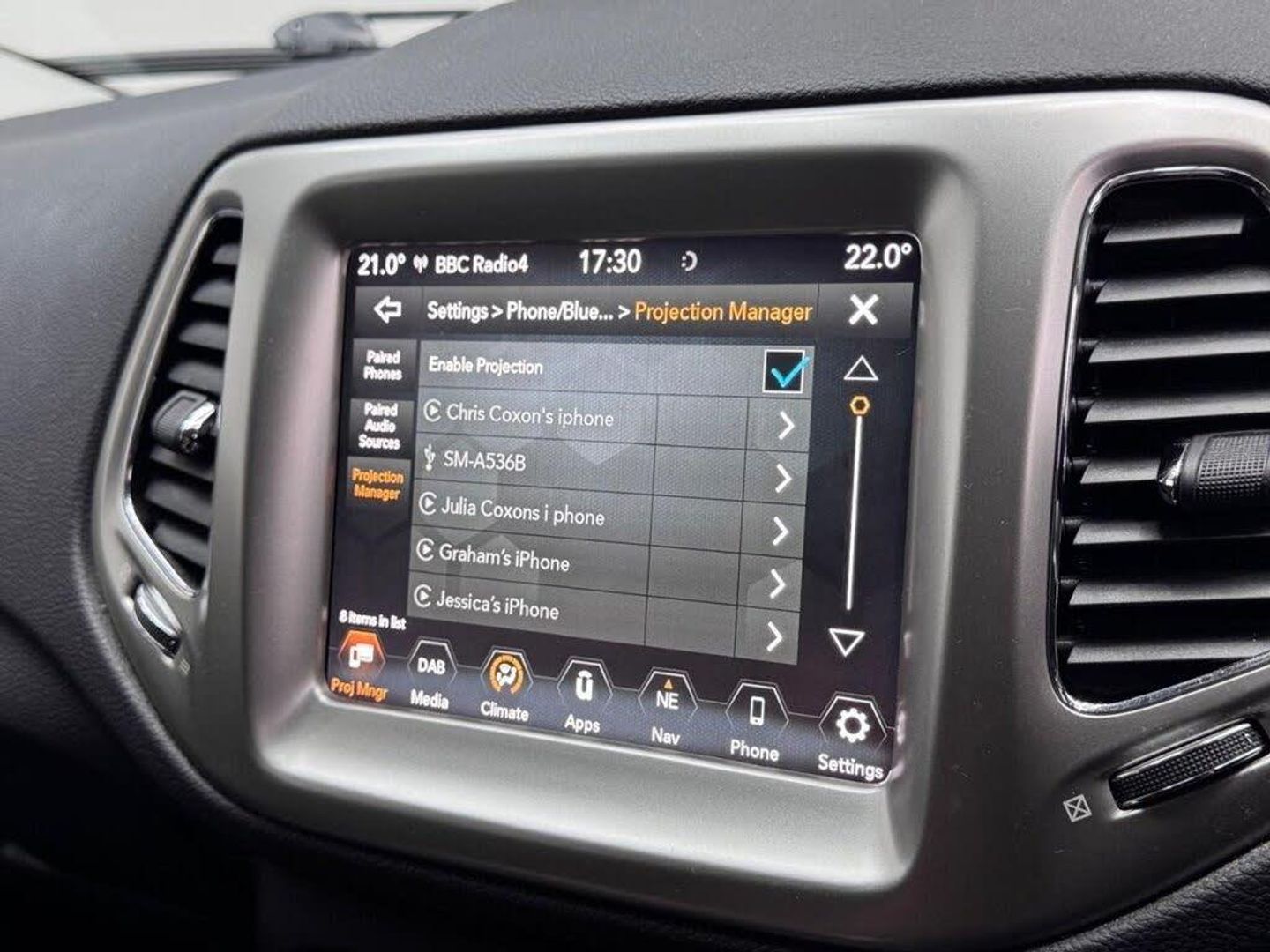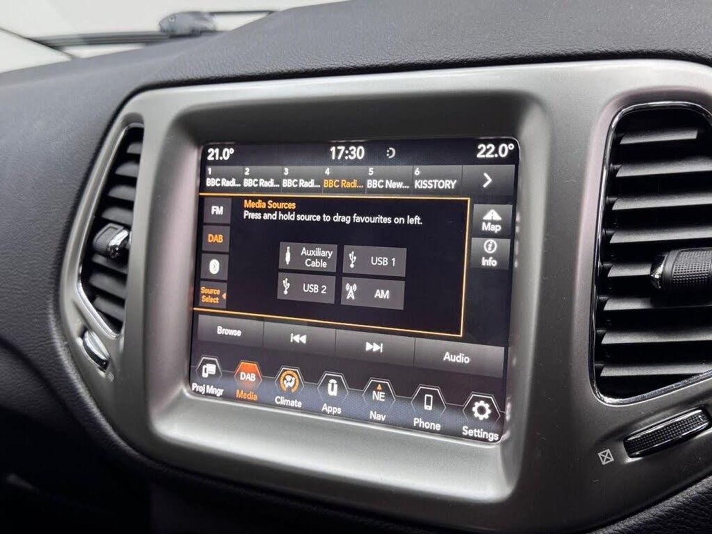 Winter Pack, Smokers Pack, Floor Mats - Front and Rear, 12V Auxiliary Power Outlet - Front, 17in Alloy Wheels - Tech Silver, 230v Auxiliary Power Outlet, Active Speed Limiting Device, Advanced Brake Assist, Airbags - Advanced Multistage Front - Front Side and Side Curtain Front and Rear, Alarm - Premium, All Speed Traction Control, Ambient LED Interior Lighting, Anti Lock 4 Wheels Disc Brake - ABS, Apple CarPlay and Android Auto Integration, Auto Dimming Rear View Mirror, Autonomous Emergency Braking, Auxiliary 12v Power Outlet In Cargo Area, Black and Chrome Front Grille, Body Colour Exterior Mirrors, Body Coloured Door Handles, Child Seat Anchor System, Chrome Window Surrounds, Cruise Control, Daytime Running Lights, Door Mirrors - Power Folding, Drivers Manual Height Adjustable Seat, Dual Zone Climate Control, ERM - Electronic Roll Mitigation, ESC - Electronic Stability Control, Electric Power Steering, Electronic Park Brake, Fog Lamp Bezels - Black, Forward Collision Warning Plus, Front Fog Lights with Cornering Lights, Front Height-Adjust Seatbelts, Front Passenger Forward Fold-Flat Seat and Storage Under Passenger Seat, Halogen Reflector Headlamps, Hill Start Assist, Immobiliser, Instrument Cluster - 3.5in Monochrome TFT Display, Keyless Enter-N-Go, LED Tail Lamps, Lane Departure Warning Plus, Leather Wrapped Steering Wheel, ParkView Rear Back Up Camera, Power Windows - Driver and Passenger Express Up and Down, Pretensioning Seatbelts, Rear 60-40 Split Folding, Rear Air-Conditioning and Heater Vents, Rear Door Child Protection Locks, Roof Rails - Black, Seats with Electric Lumbar Adjustment, Shift Indicator Warning Lamp, Speakers x6, Steering Wheel - Mounted Audio Controls, Trailer Sway Damping - Control, Tyre Service Kit, Uconnect 8.4in DAB Radio with Touchscreen USB AUX Satellite Navigation and Bluetooth, Uconnect Live, Bronze, Fabric and Faux Leather - Black, Full Size Temporary Use Spare Tyre