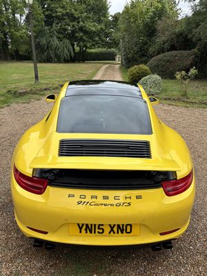 Porsche 991.1 GTS first registered by Porsche Sheffield March 2015 in unusual Racing Yellow with GTS interior pack and silver stitching.