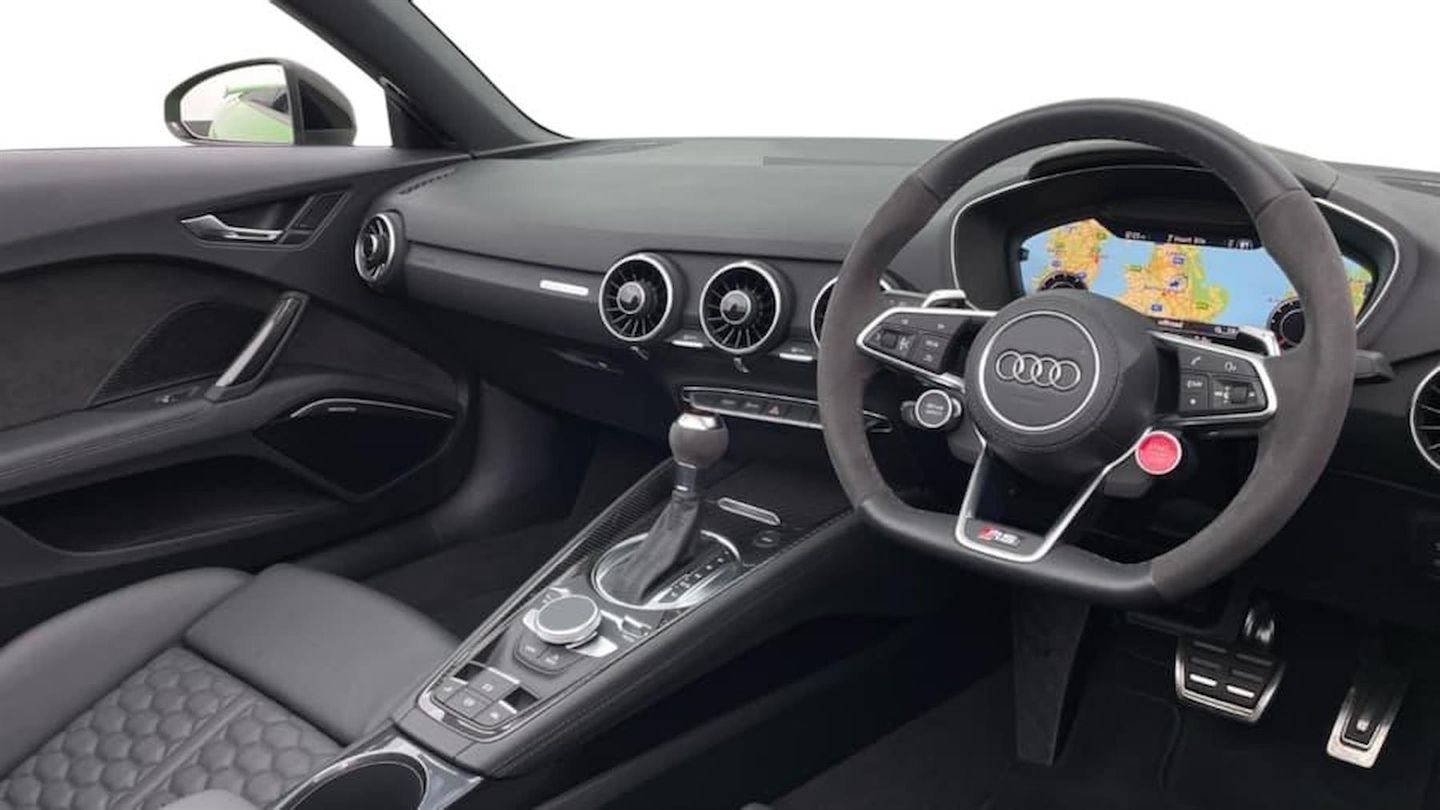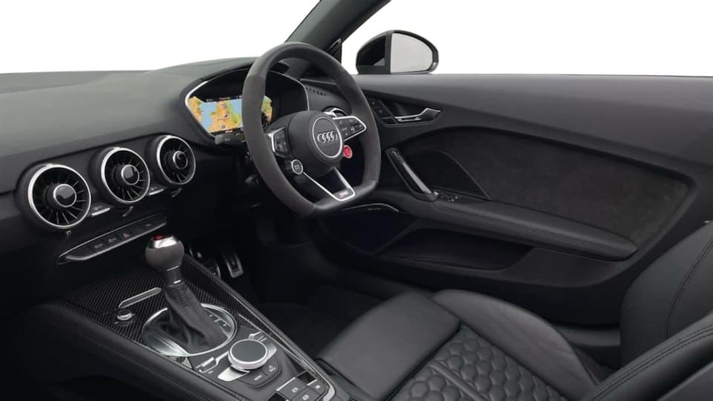 Reserve Online,Comfort and Sound Pack,Bang & Olufsen Sound System,Reversing camera,Technology pack without Audi phone box - TT,Audi smartphone interface,Audi Phone Box with wireless charging - Qi enabled compatible phone and additional bluetooth interface,Seat belt microphone,Audi virtual cockpit with RS specific with 12.3" full colour digital cluster 3D navi,Cruise control + speed limiter,RS brake system,Audi parking system plus with front and rear sensors,TT RS specification sports suspension,RS sport exhaust system,TTRS exhaust sound button in centre console,TTRS fixed rear wing,Deluxe auto air conditioning with integrated digital display,Heated front seats,LED interior light pack - TT/TT RS roadster